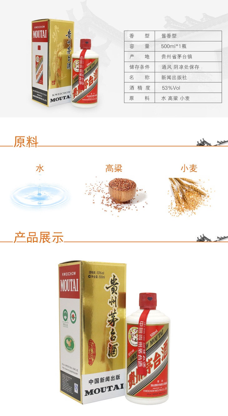 贵州茅台酒 盈典佳酿茅台酒酱香型白酒53度500ml