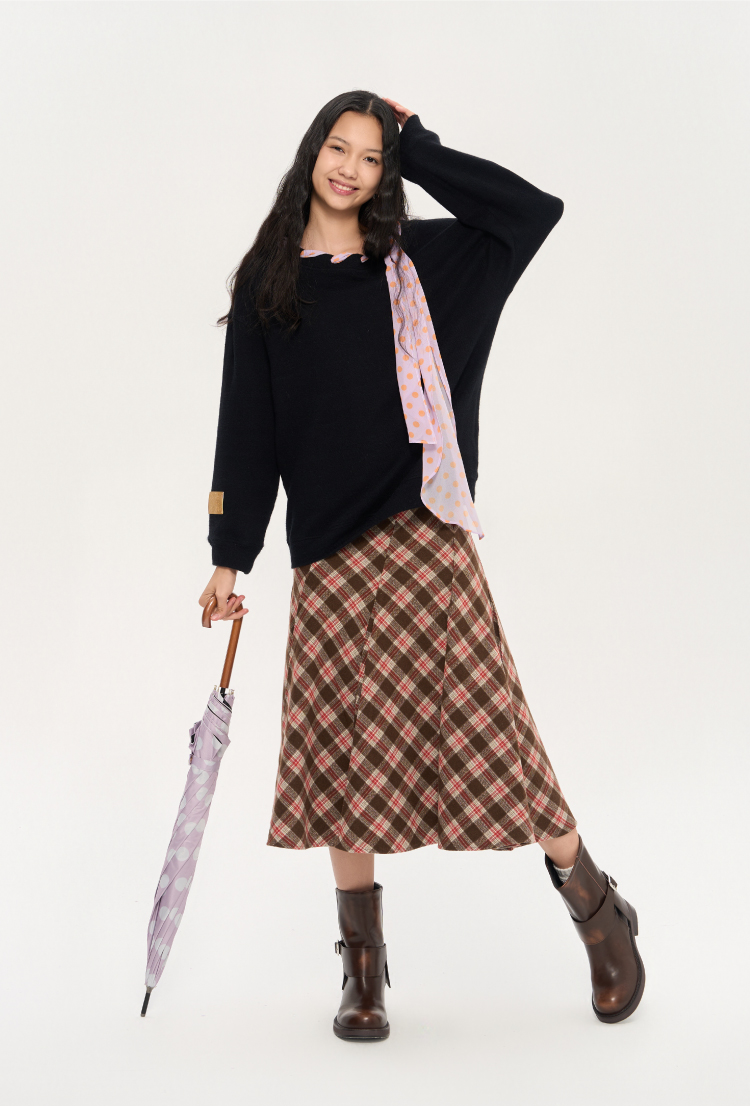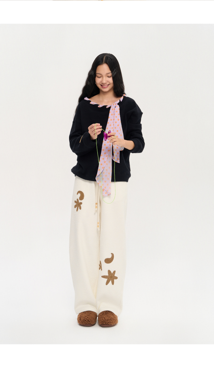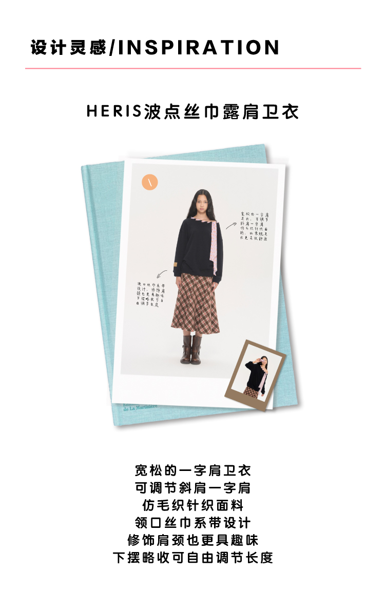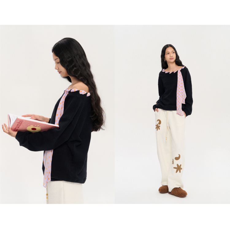 heris/H53122/彩色波点丝巾系带 一字肩/露肩两穿 慵懒氛围感针织卫衣