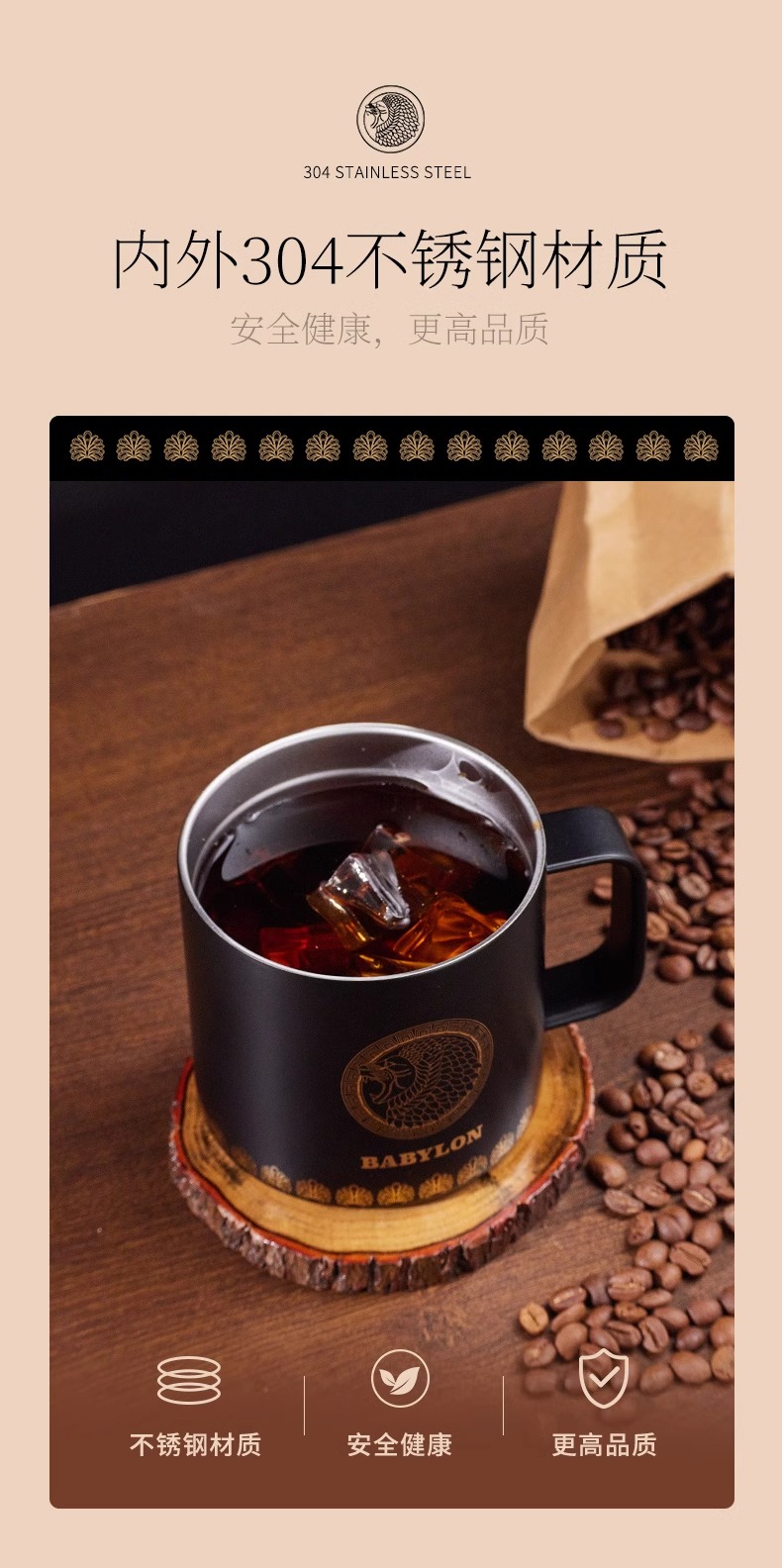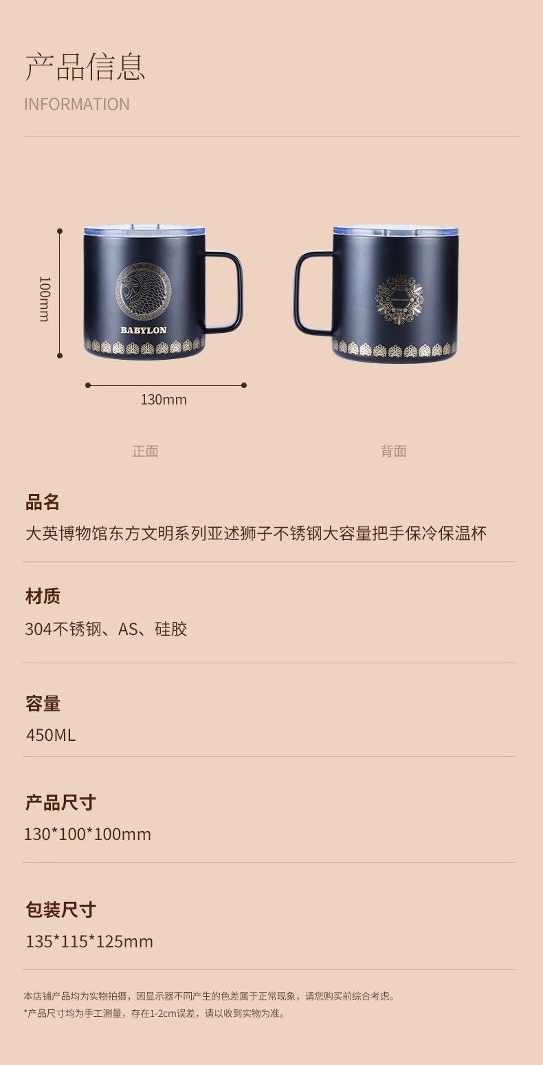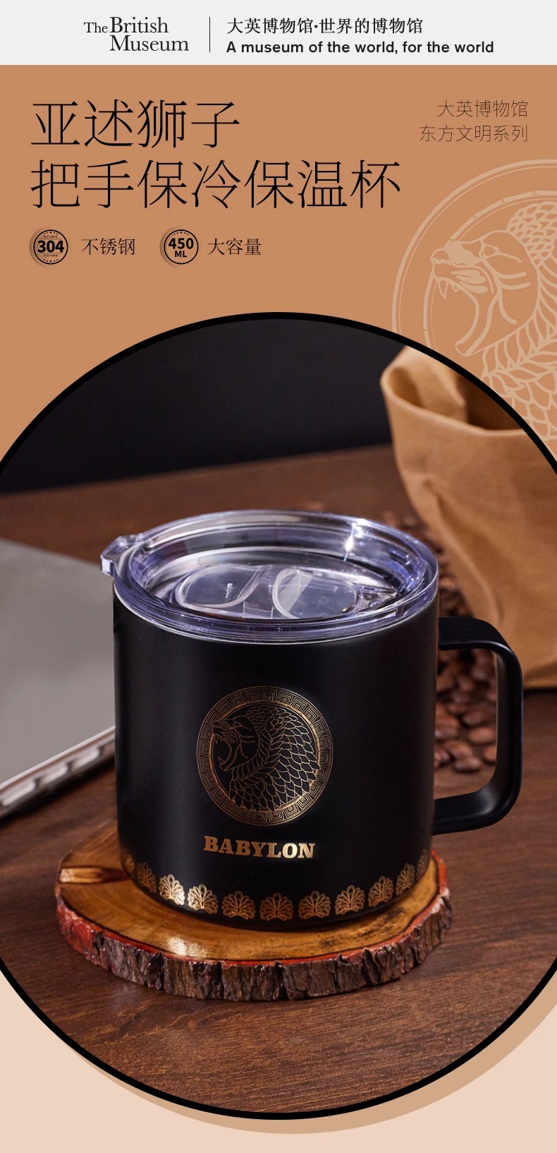 大英博物馆东方文明系列 亚述狮子不锈钢大容量把手保冷保温杯450ml
