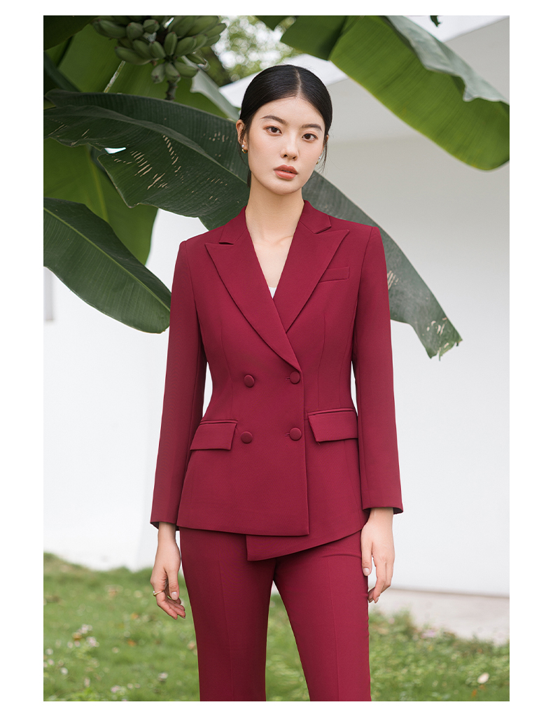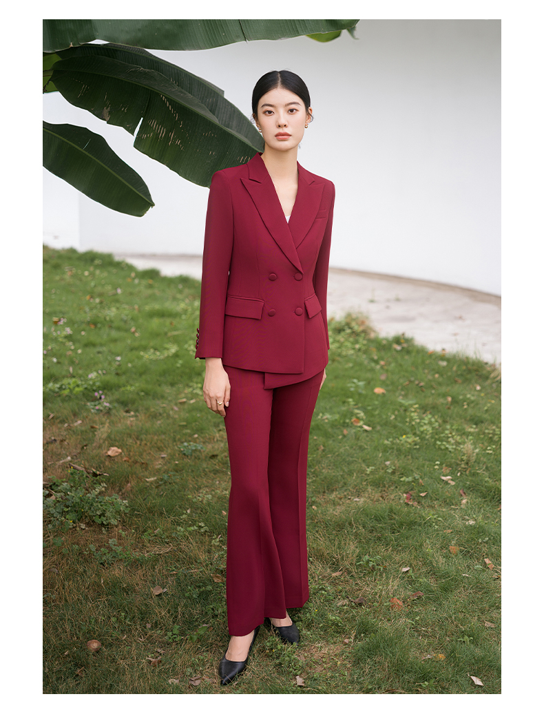IWY/秋冬款酒红色职业西装套装女正式场合商务接待通勤干练两件套C11358+P31358