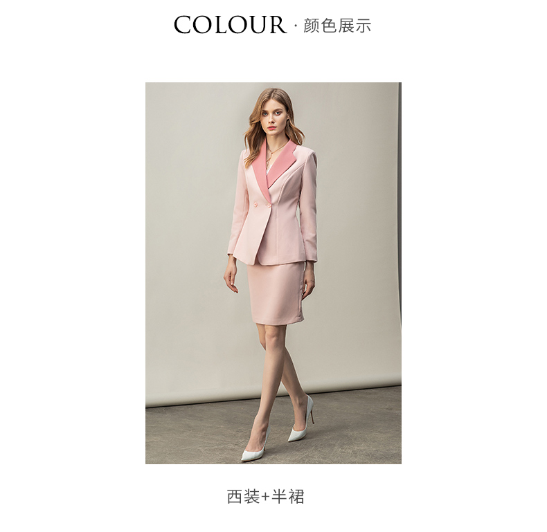 IWY/粉色播音艺考服装女正装时尚气质名媛OL主持人工作服高端职业 CS11120卡其