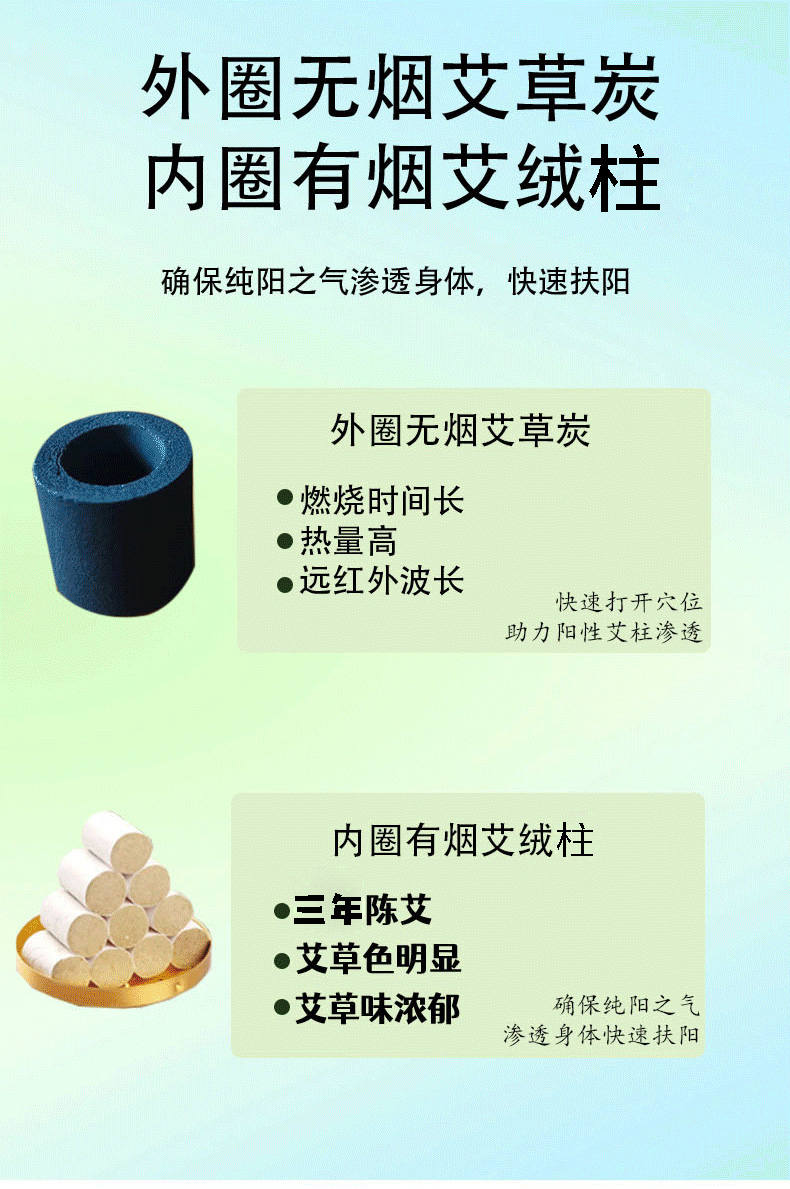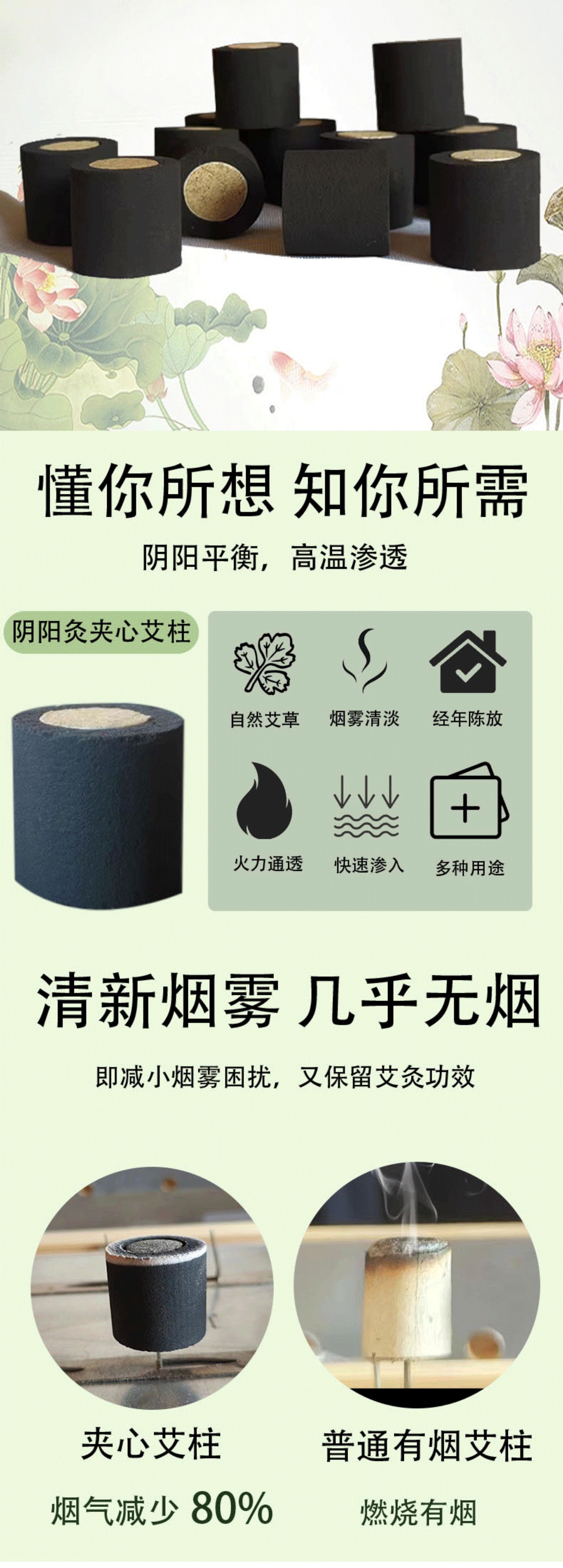 【阴阳艾柱】3cm*2.8cm无烟艾碳艾柱新品阴阳灸夹心艾柱