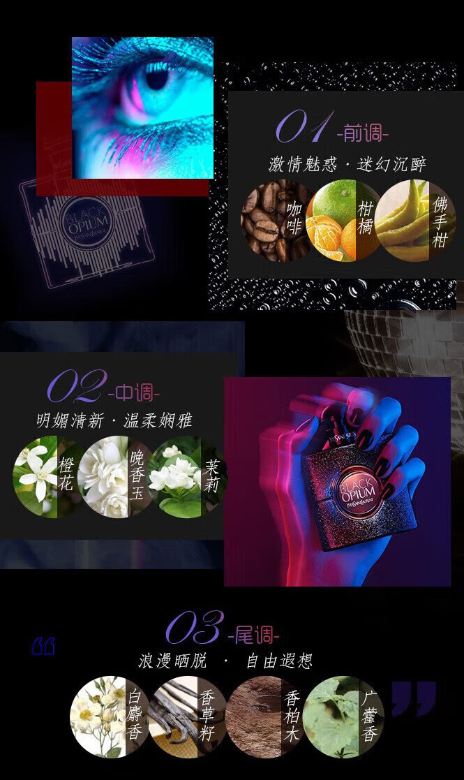 【小样】圣罗兰黑色奥飘茗女士香水经典版7.5ml/102353 东方花果香调浓香水