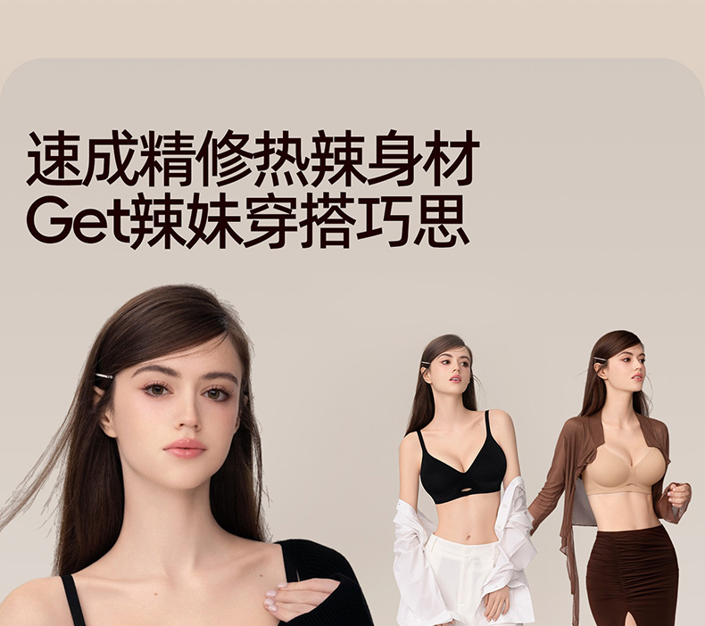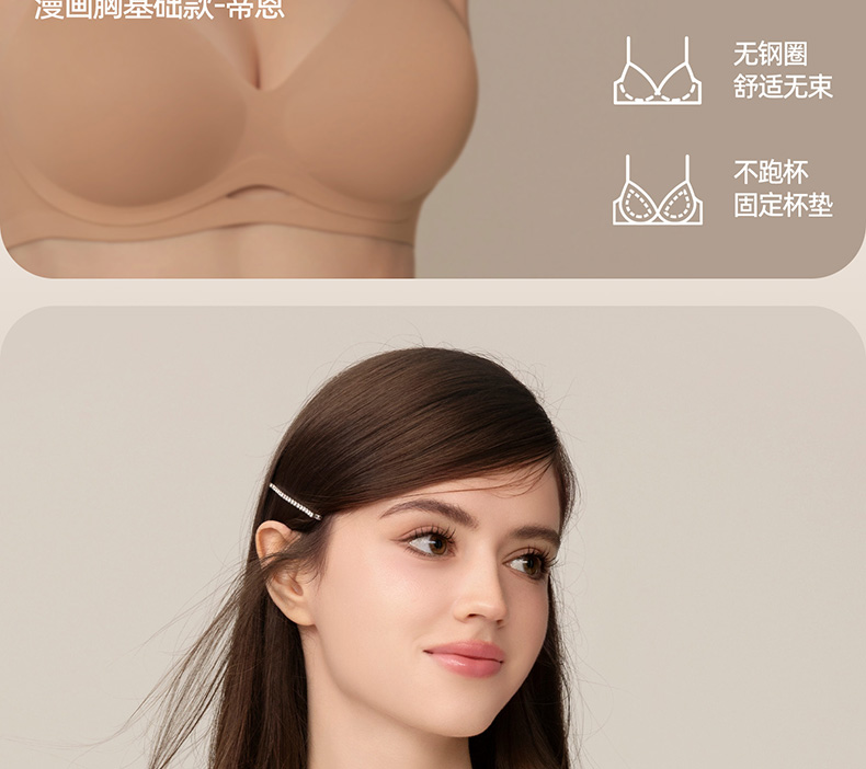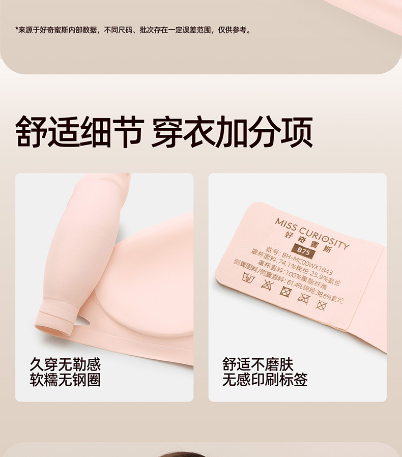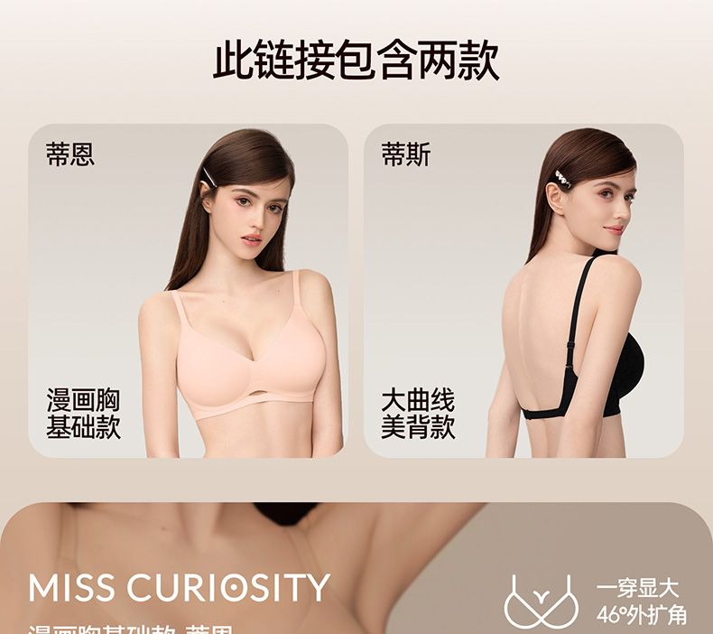 好奇蜜斯光面无痕上托无钢圈外扩内衣女小胸显大文胸罩套装漫画胸 蒂恩文胸