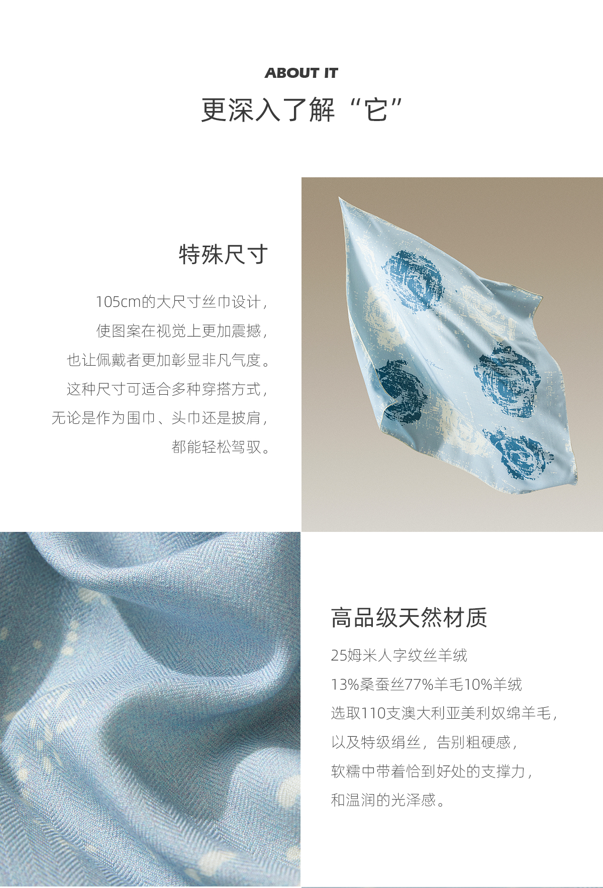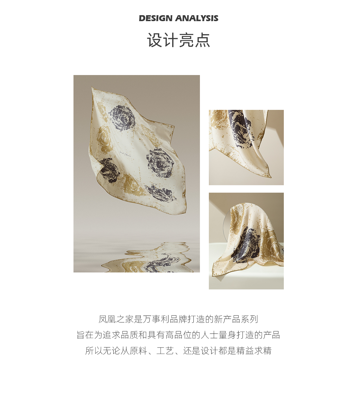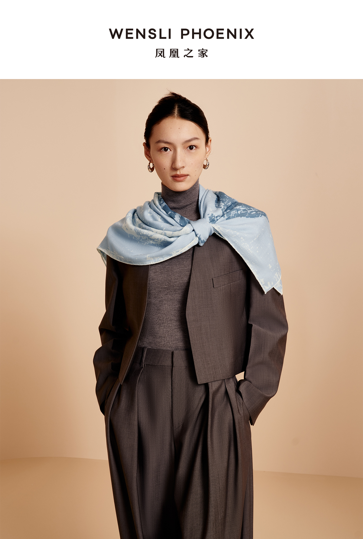 凤凰之家“浪漫解构”105厘米双面印花丝羊毛围巾