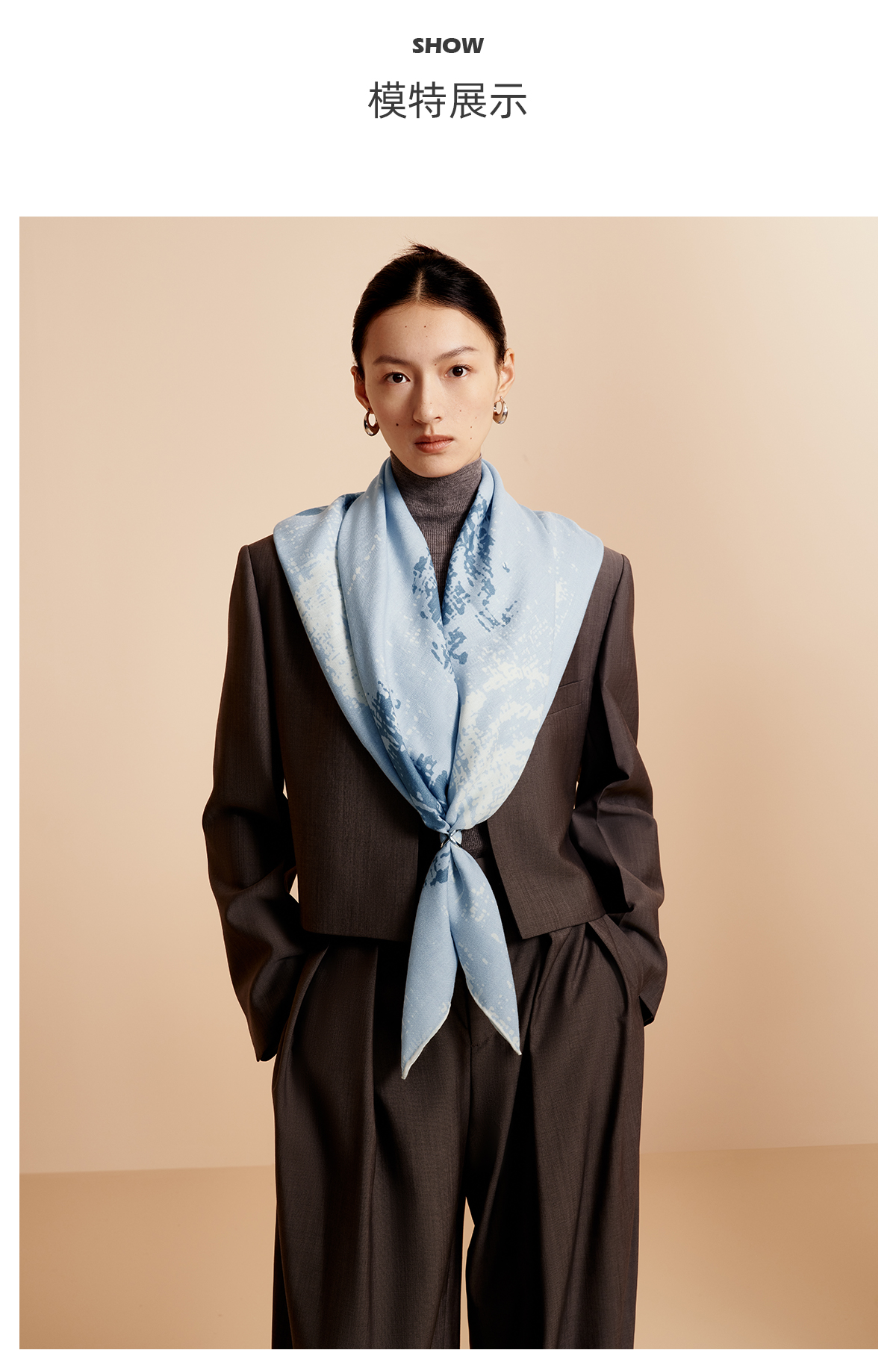 万事利“玉兰赋”63厘米双面印花真丝中方巾
