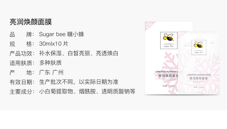 【爆款超低价预售 急单慎拍】SugarBee糖小蜂补水面膜保湿滋润舒缓提亮嫩肤紧致面部精华补水