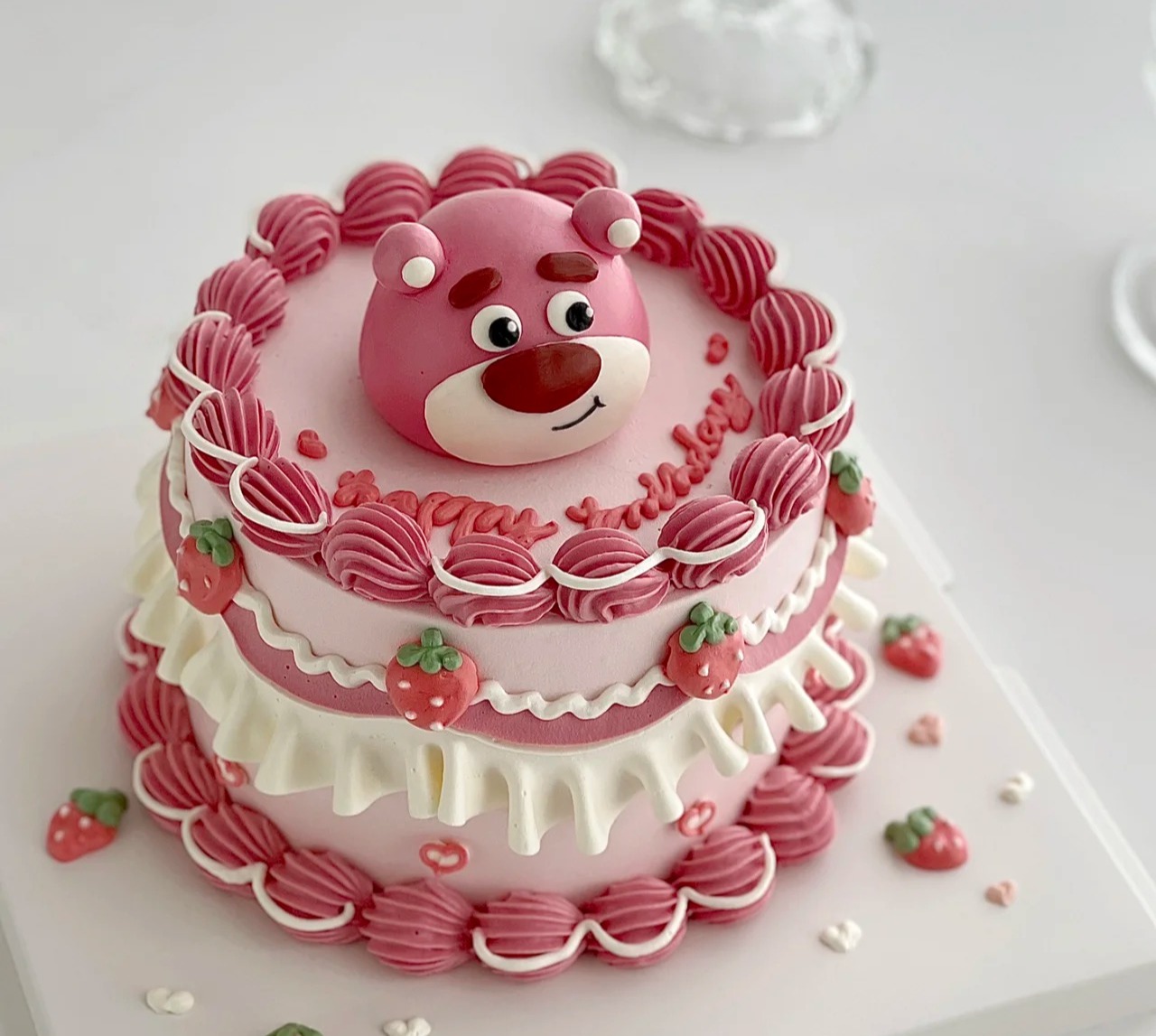 【臻品系列】---半翻糖【小雏菊粉色蝴蝶结】蛋糕