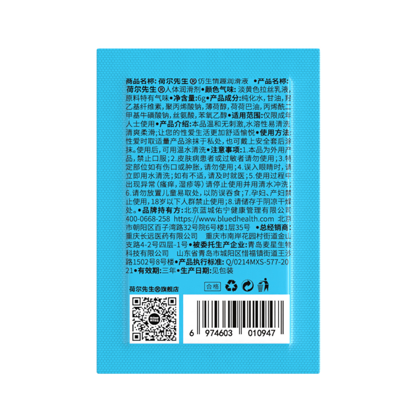 Mr.heer 荷尔先生 冰感石楠花香仿精液润滑液体验装 6g