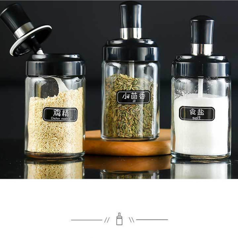 【整齐美观!分类收纳好帮手】调味瓶罐玻璃调料罐厨房佐料盒,调料盒套装家用组合装调料瓶,密封防潮 送精美标签 精准用量 操作更便捷,让调味更得心应手lm