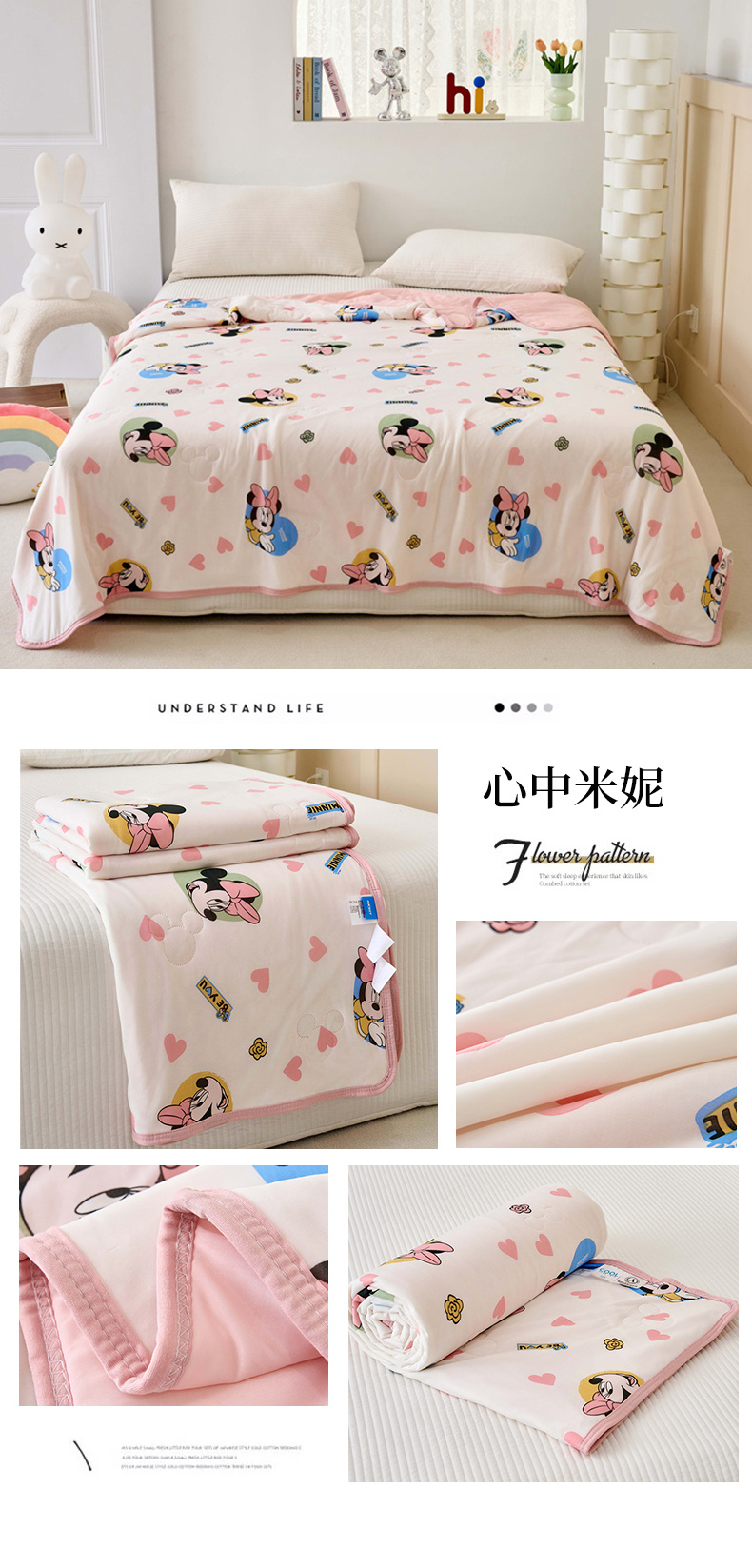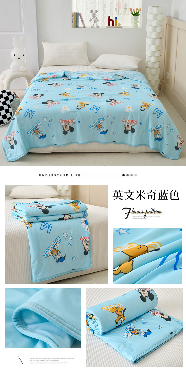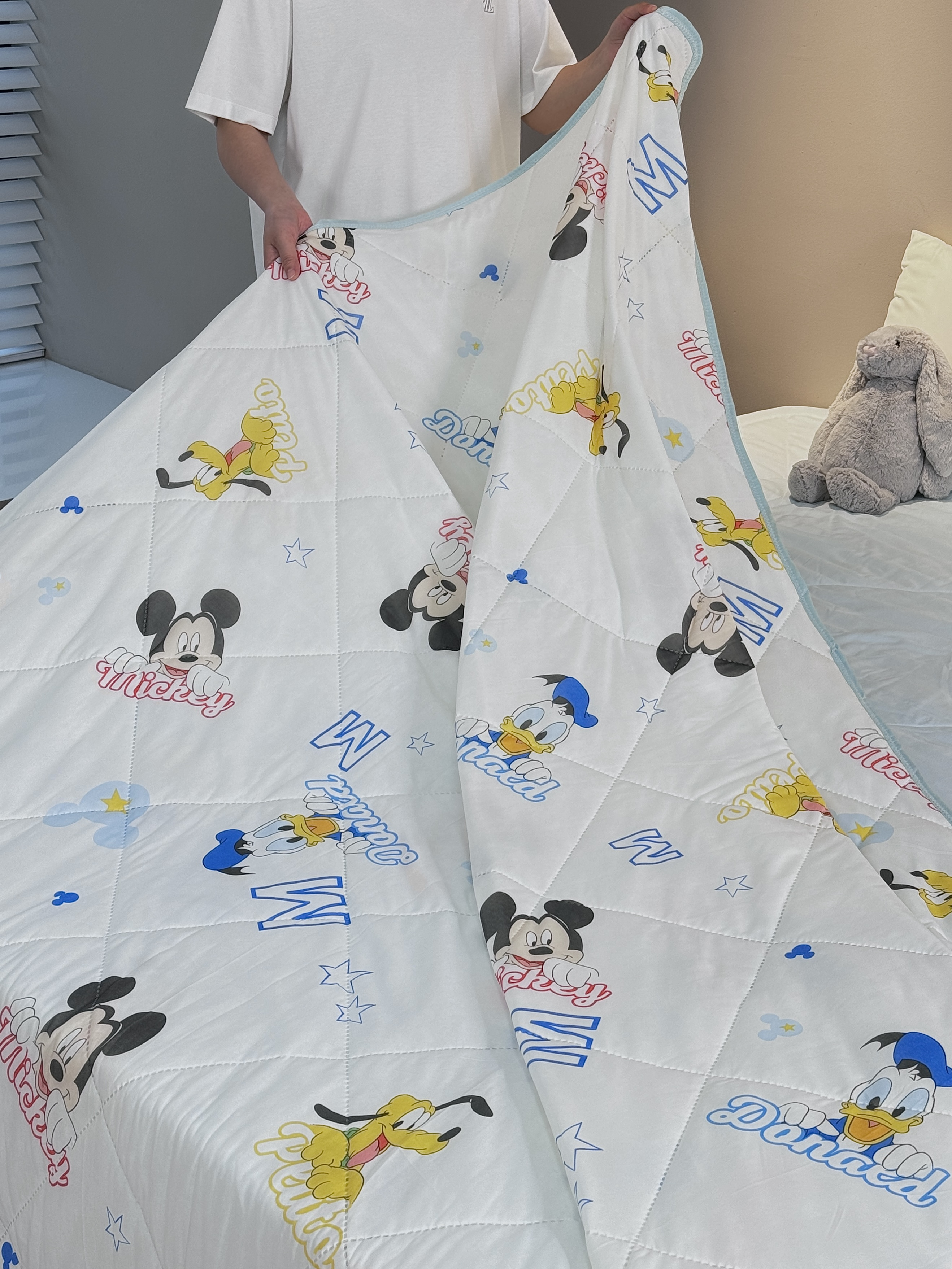 每条被子都有一个迪士尼标识, 高品质,高质量,一触即凉, 比你在市面上买到的迪士尼仿版品质好的多 品质细节很完美 加上被子的边边角角都有手包边设计 细节做工很棒 真的是一条你用上几年都完全不需要换的好被子