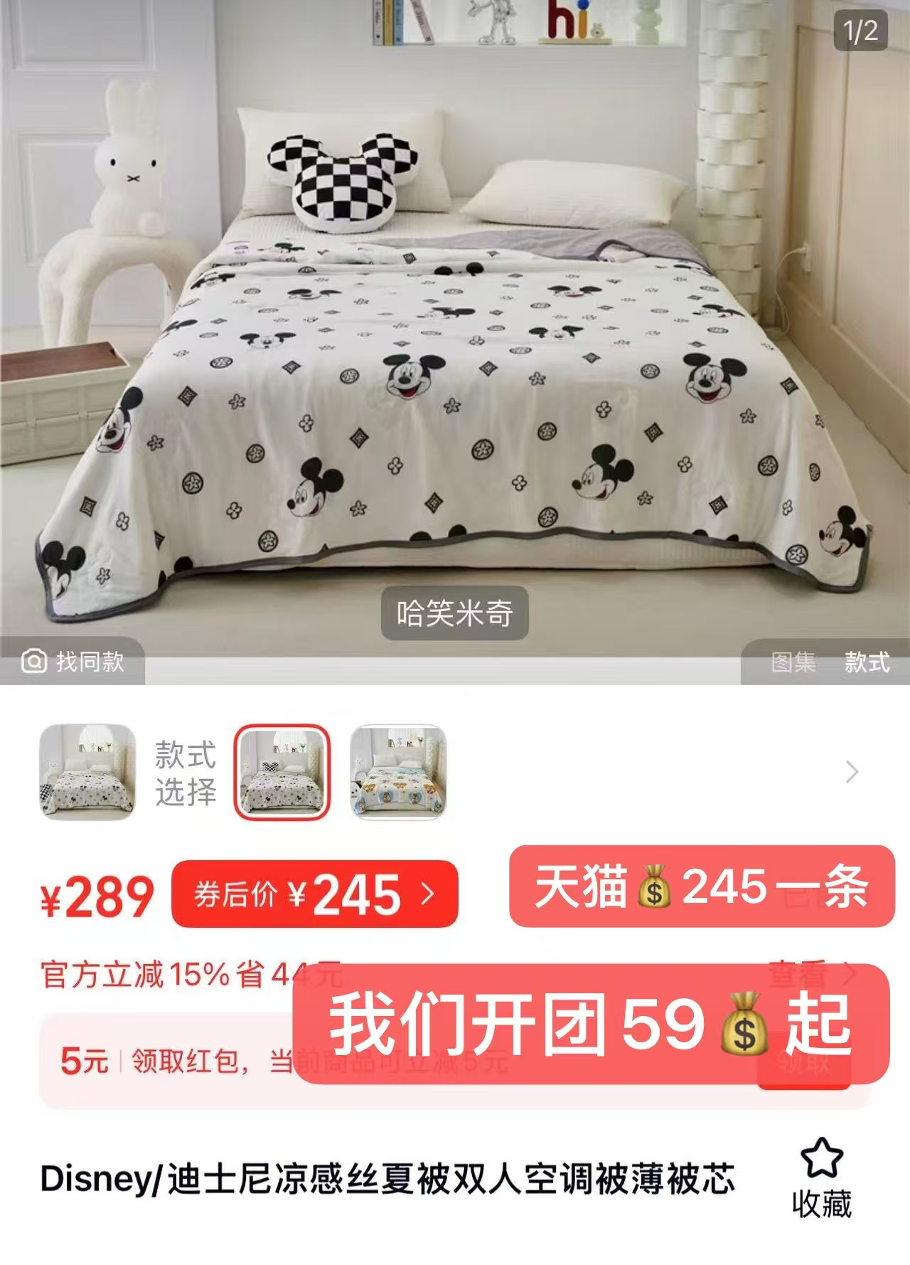 永不过时的迪士尼米奇福利来袭!! 今天清仓大福利价! 某猫店在售同款245+一床! 市面同品质都在 我们59起包邮! 敲重点!!大尺寸150*200cm只要59! 200*230cm只要69!一家老小都能盖! 清仓价只此一批,售完即止!!