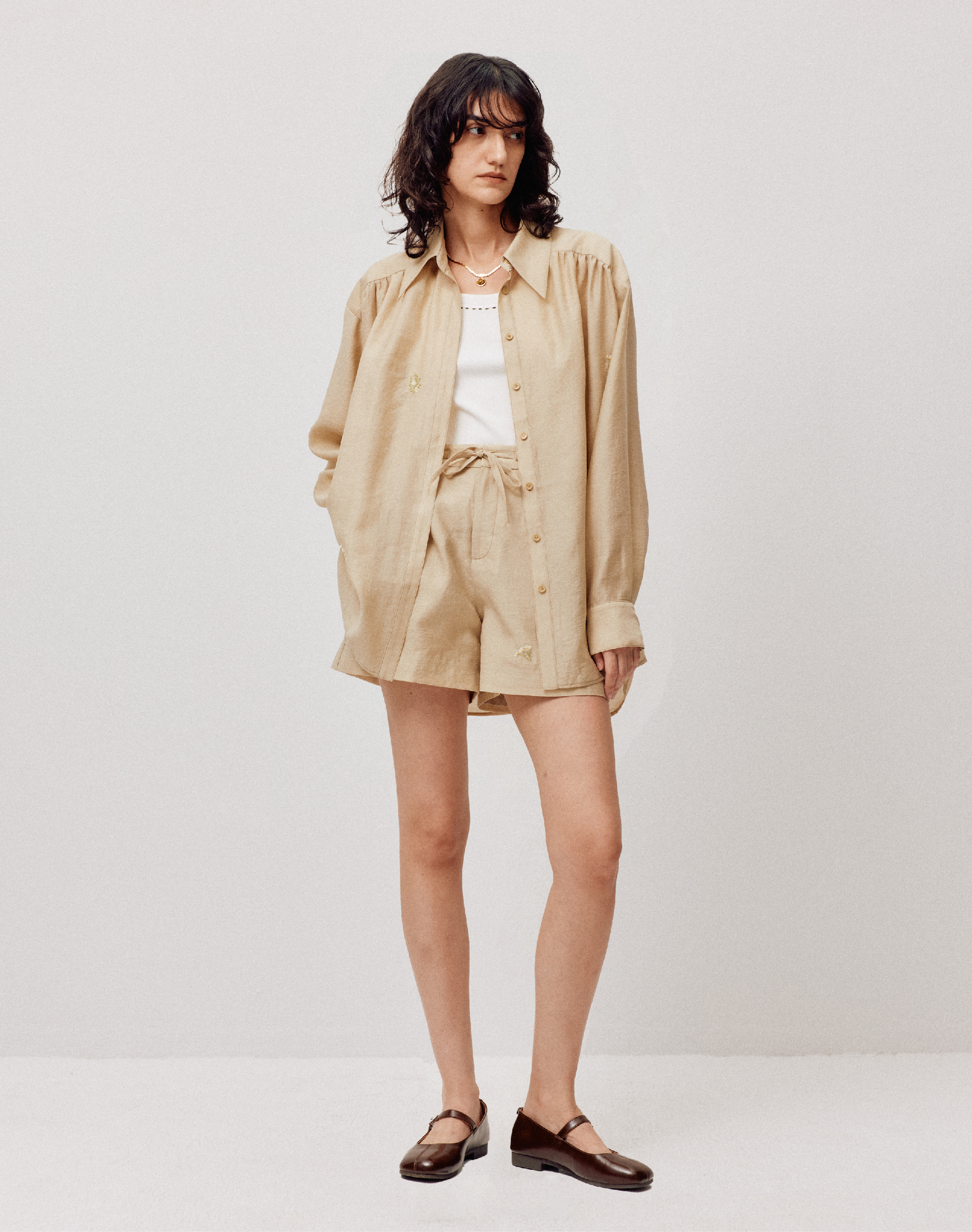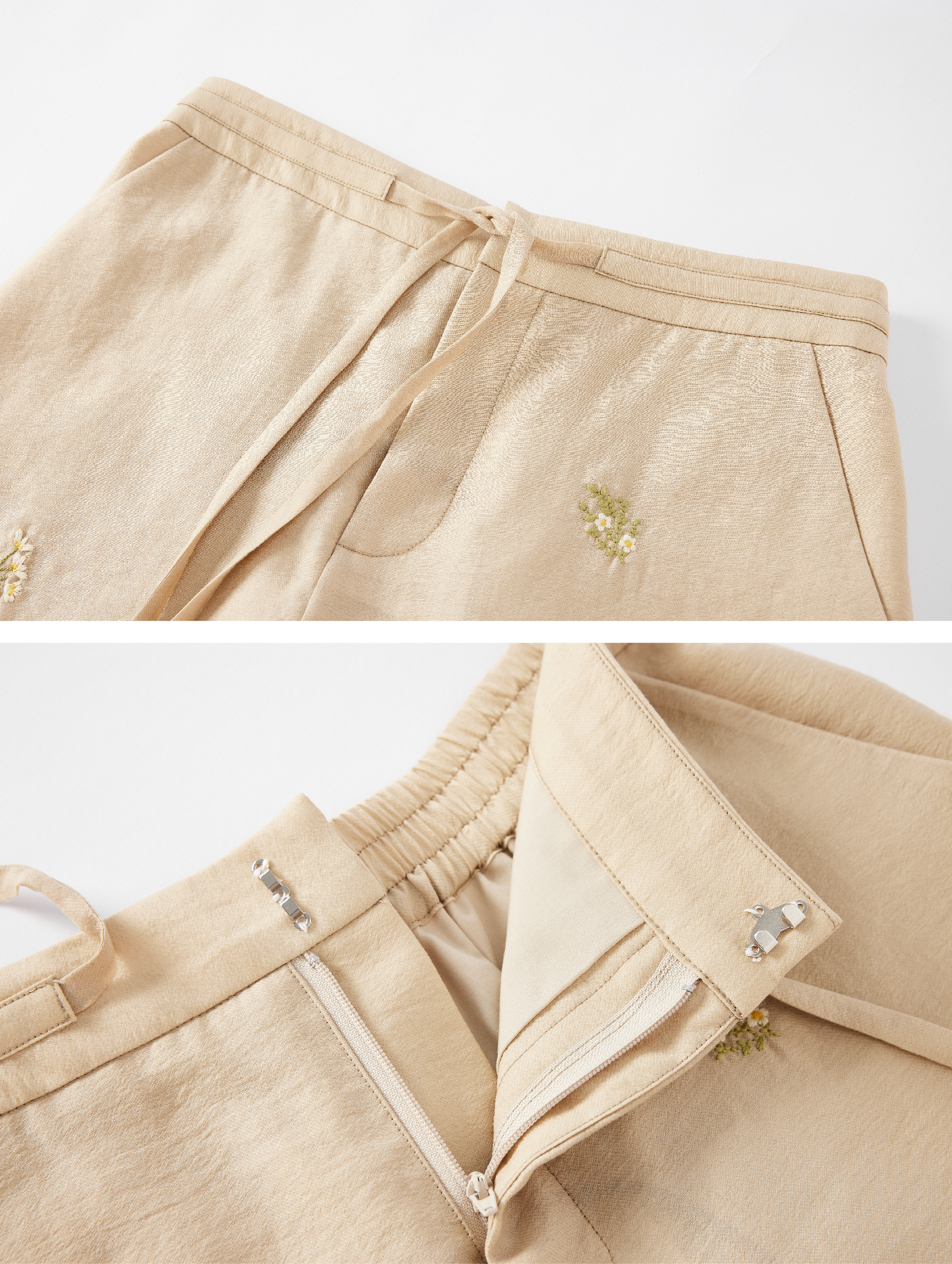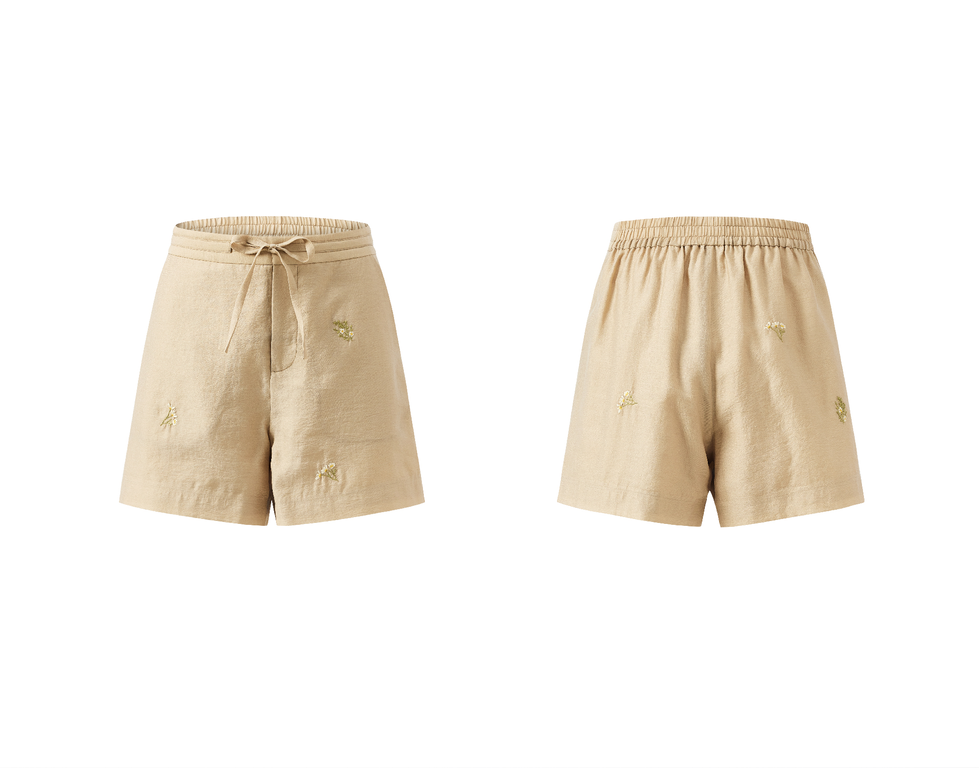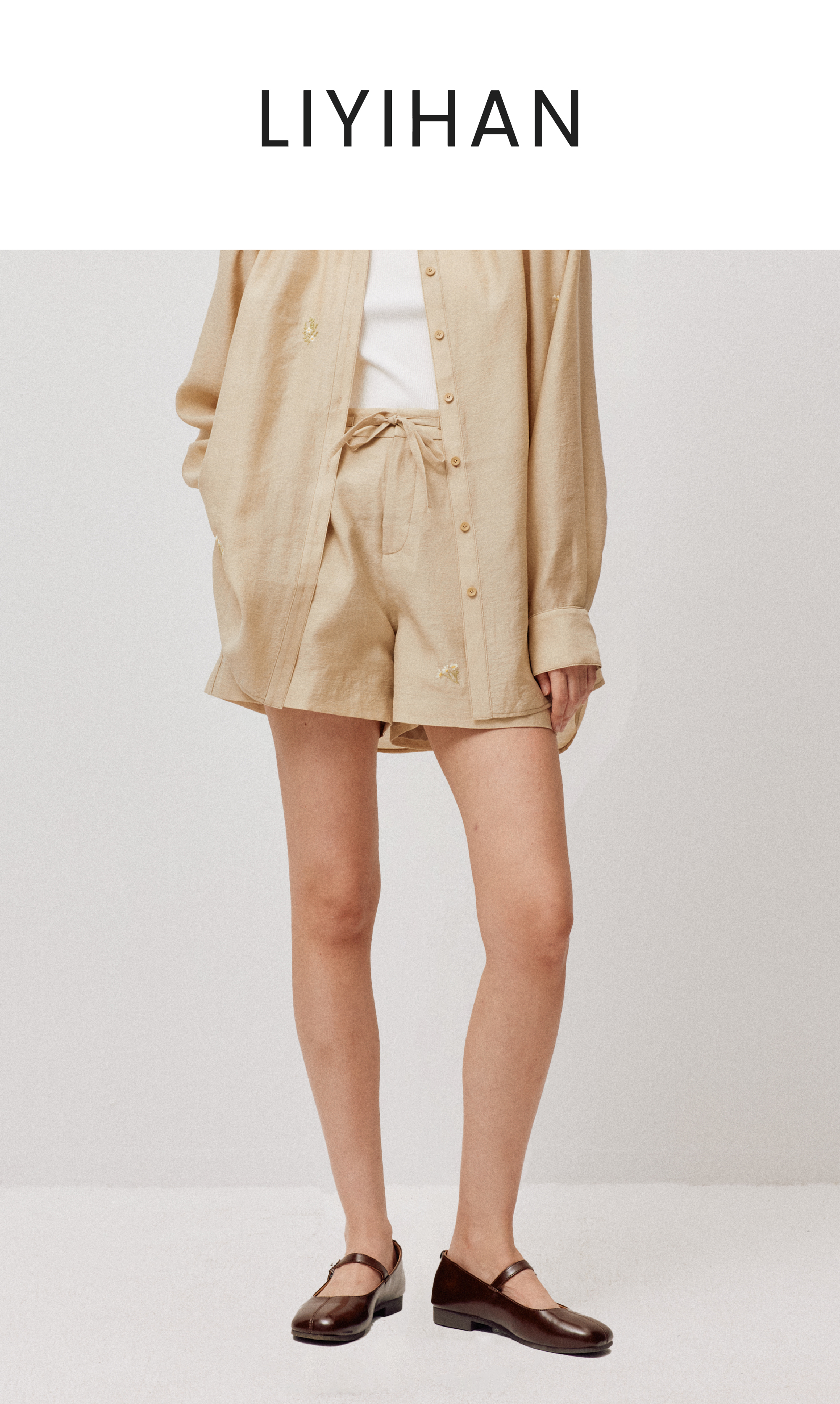 LIYIHAN清月鹊 | 25夏新款天丝小花刺绣短裤抽绳短裤女显瘦休闲