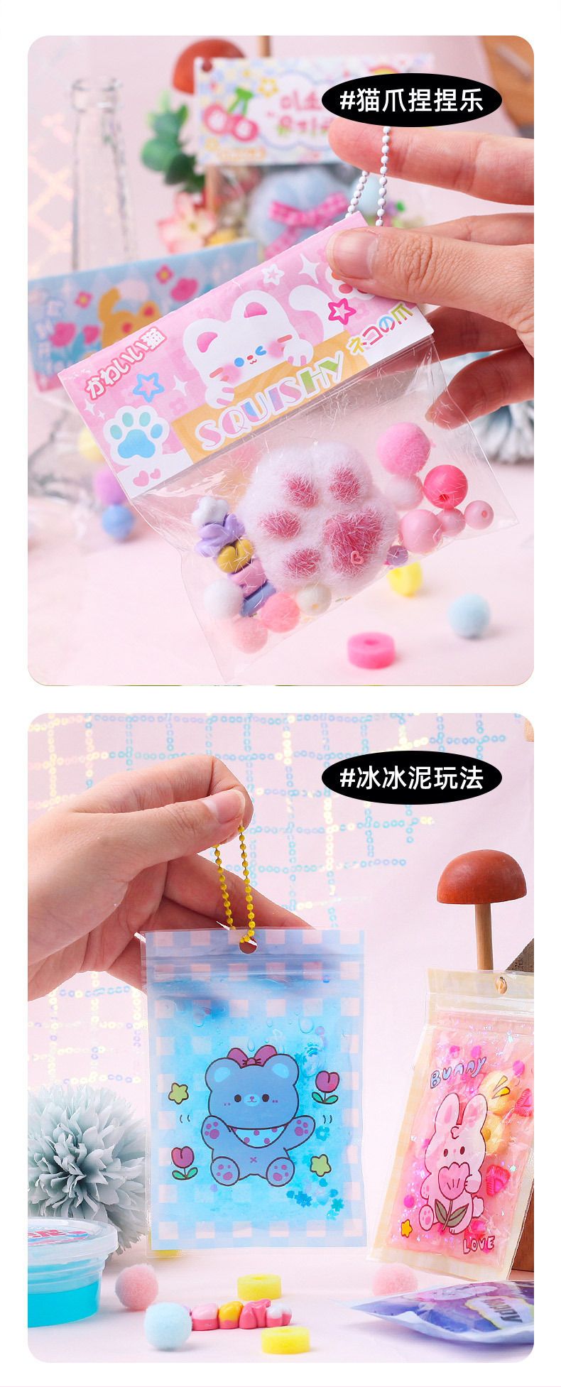 玩具先生解压捏捏乐小物儿童创意软胶猫爪挂饰女孩手工diy材料包