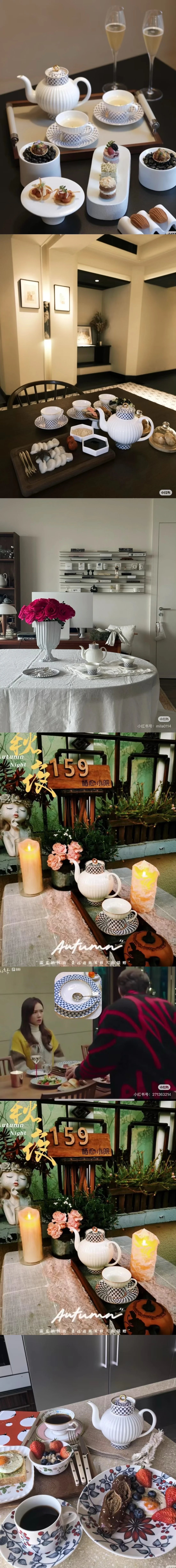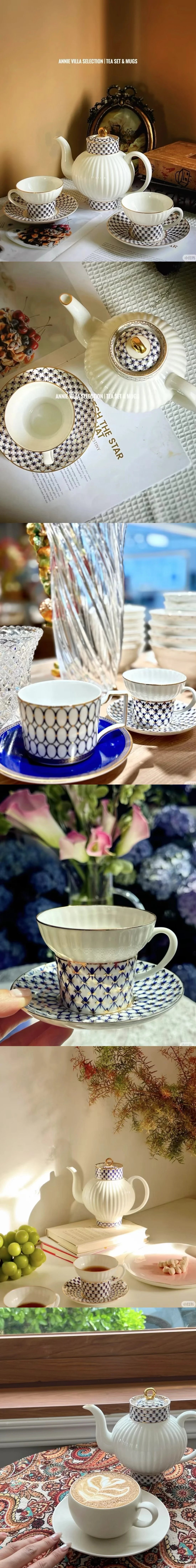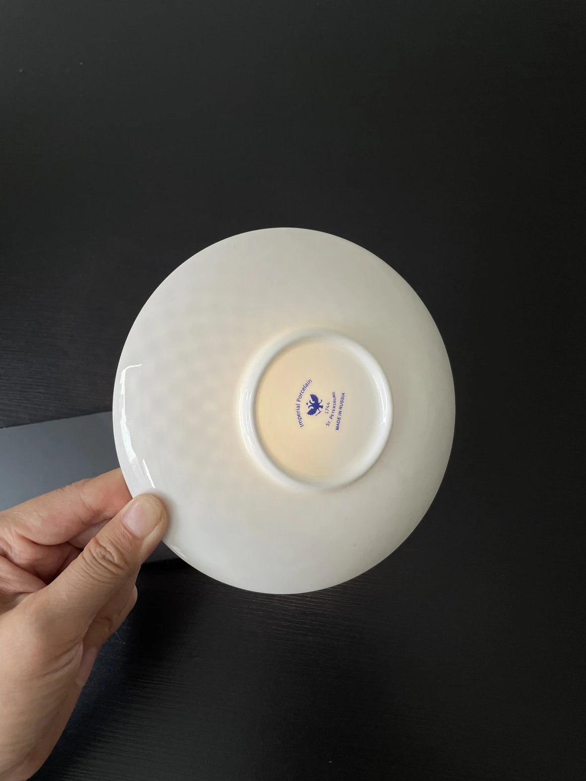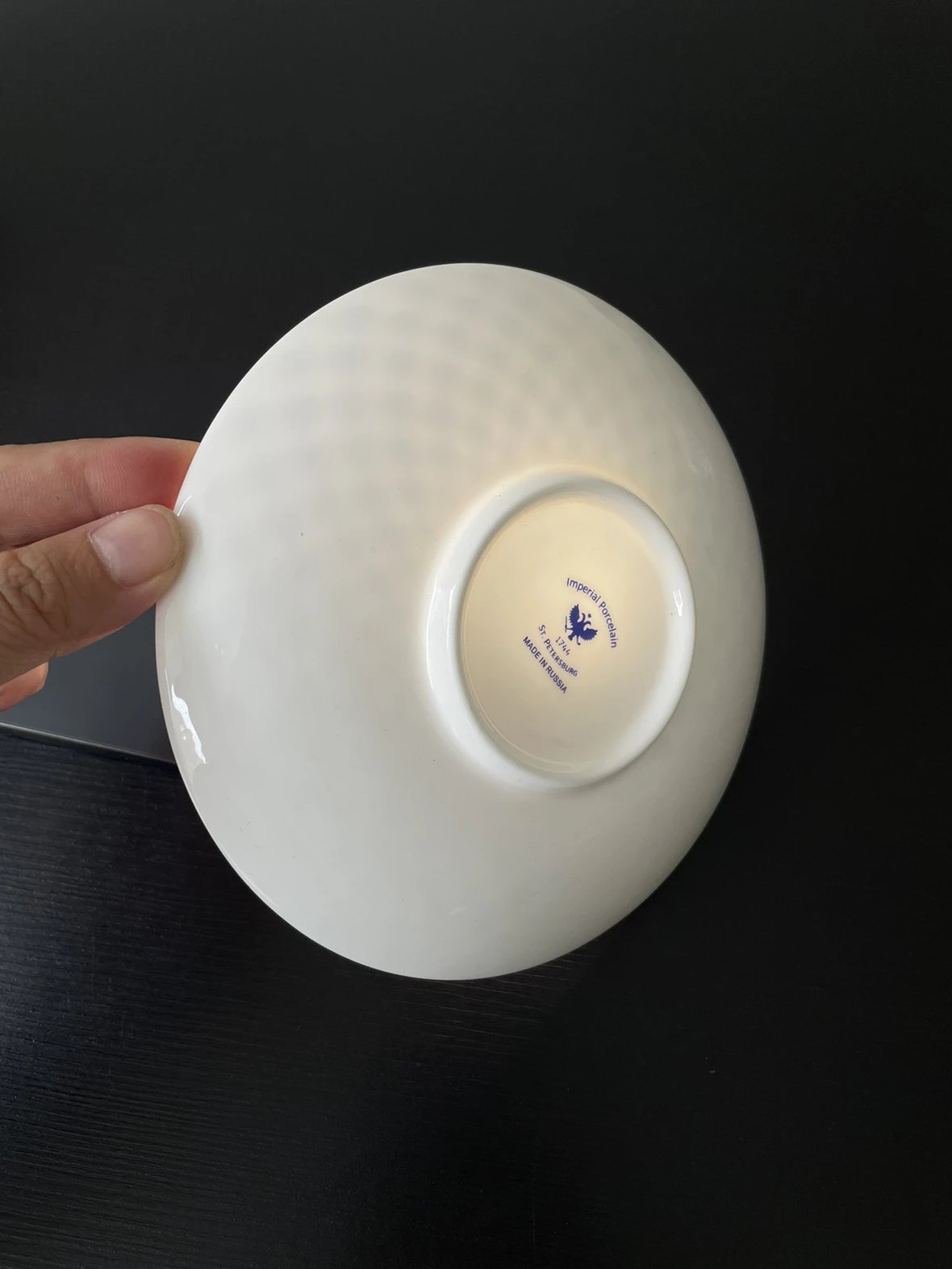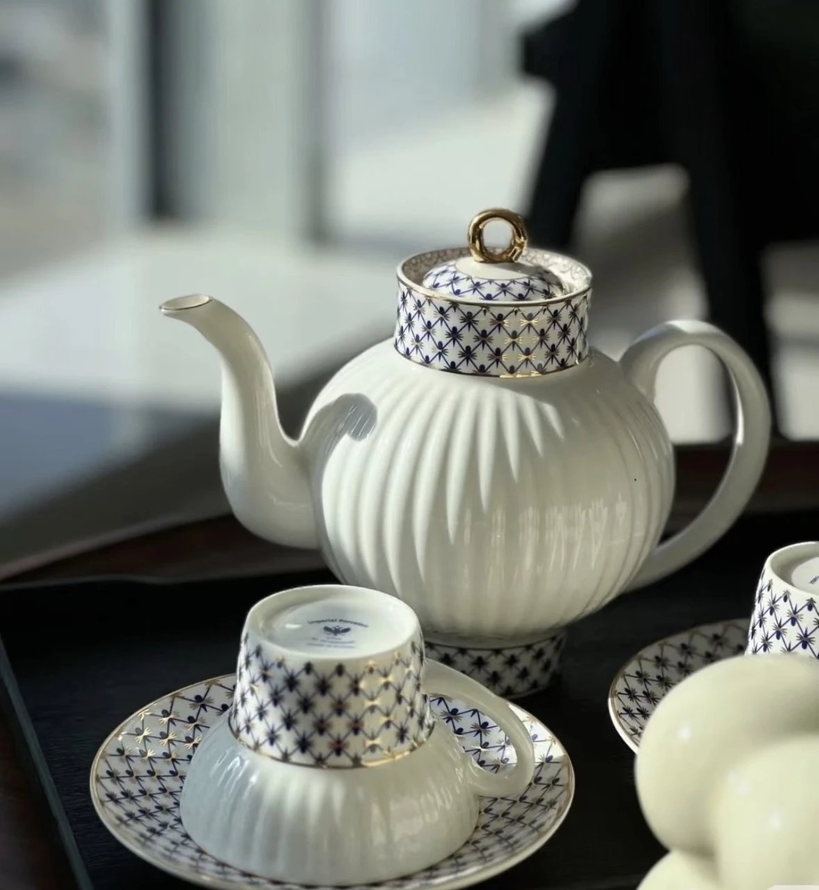 高端瓷器爱好者必入!瓷白钴蓝网纹系列 绝美骨瓷套装三件套