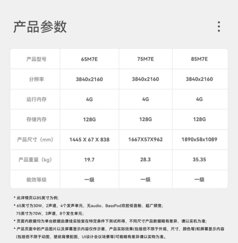 康佳(912900)65M7E 65英寸AI人感交互144Hz超刷4+128G游戏平板电视 65英寸