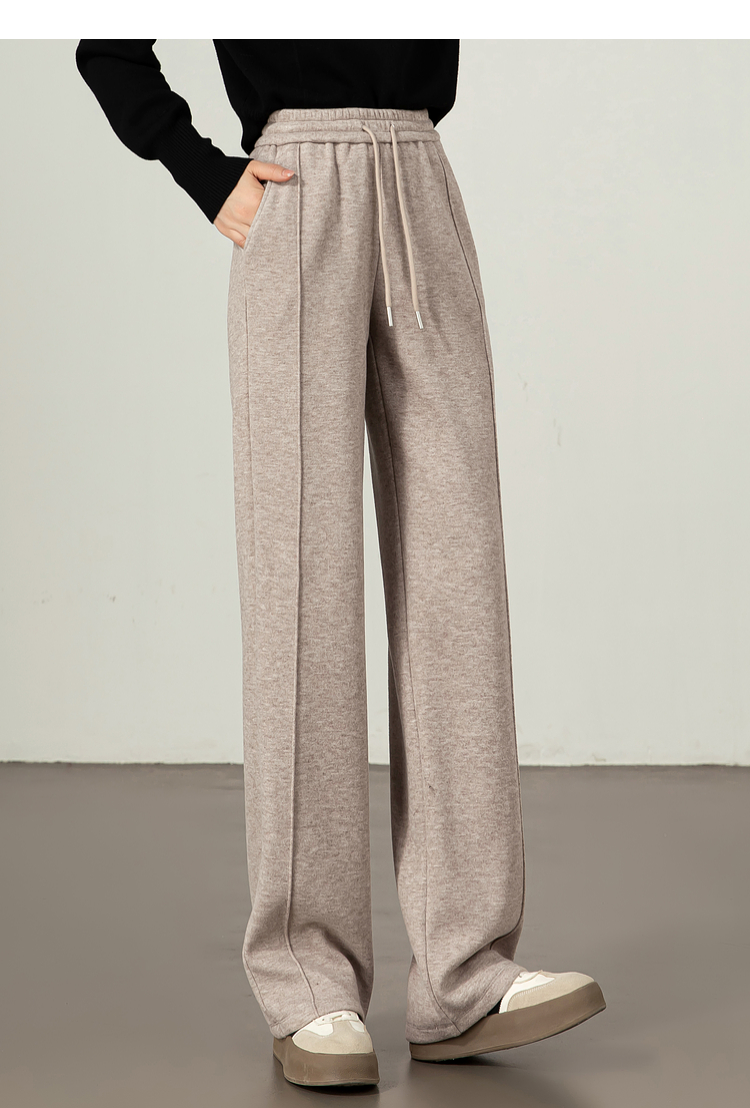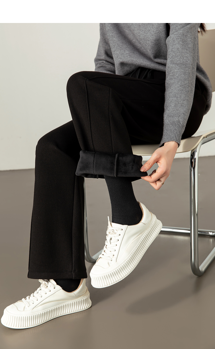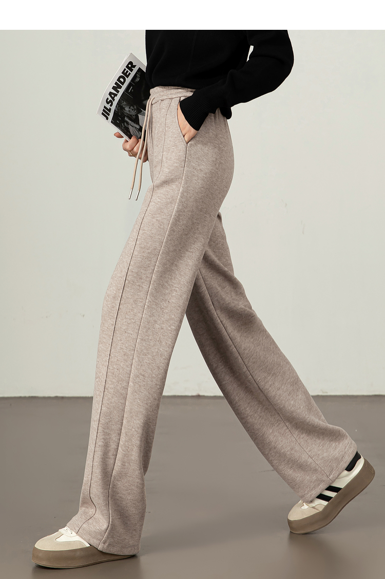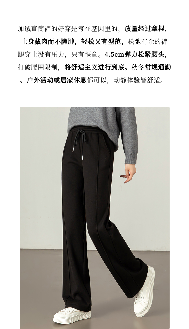【年终特卖】熙世界窄版阔腿裤女加绒加厚磨毛休闲直筒裤糯米长裤2025秋冬新款