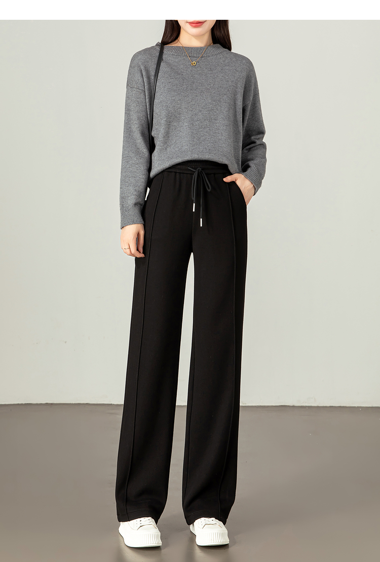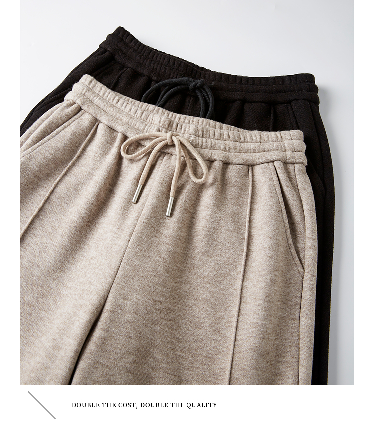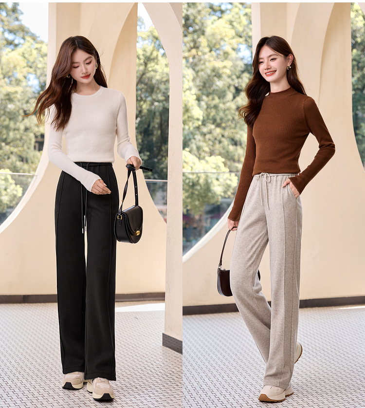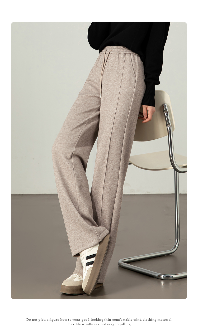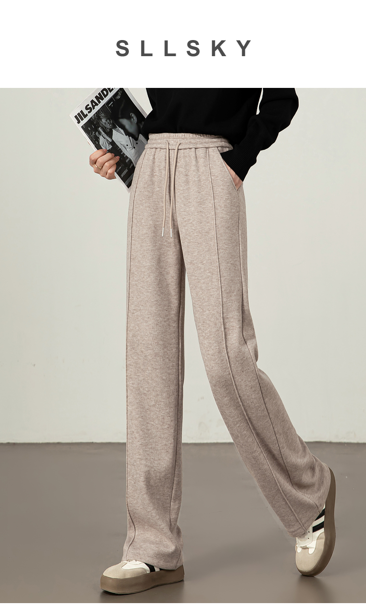 【年终特卖】熙世界窄版阔腿裤女加绒加厚磨毛休闲直筒裤糯米长裤2025秋冬新款