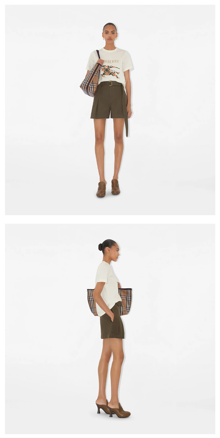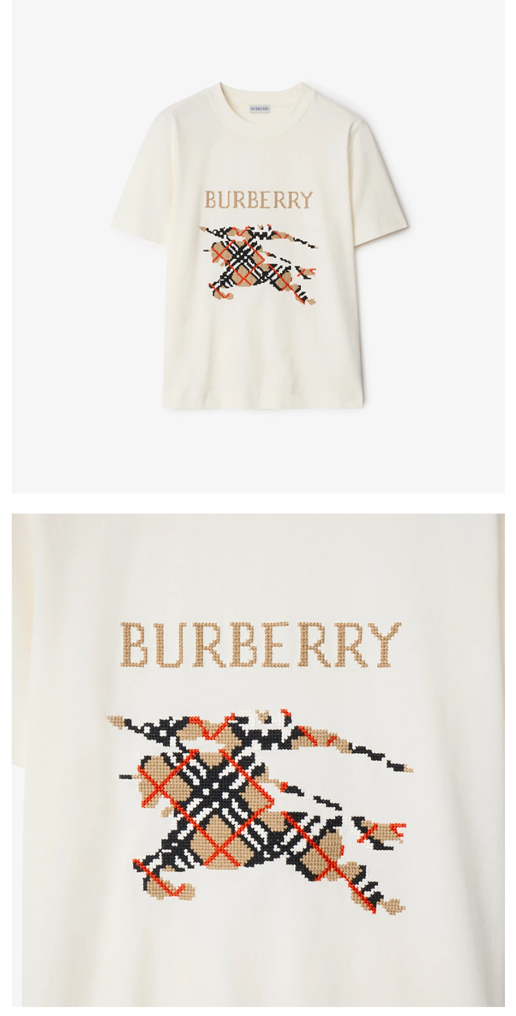 BURBERRY 巴宝莉 女士十字绣马术骑士徽标棉质圆领短袖T恤 白色 8110955 B7078