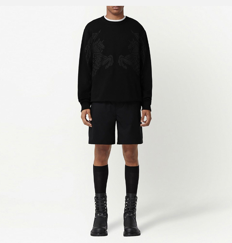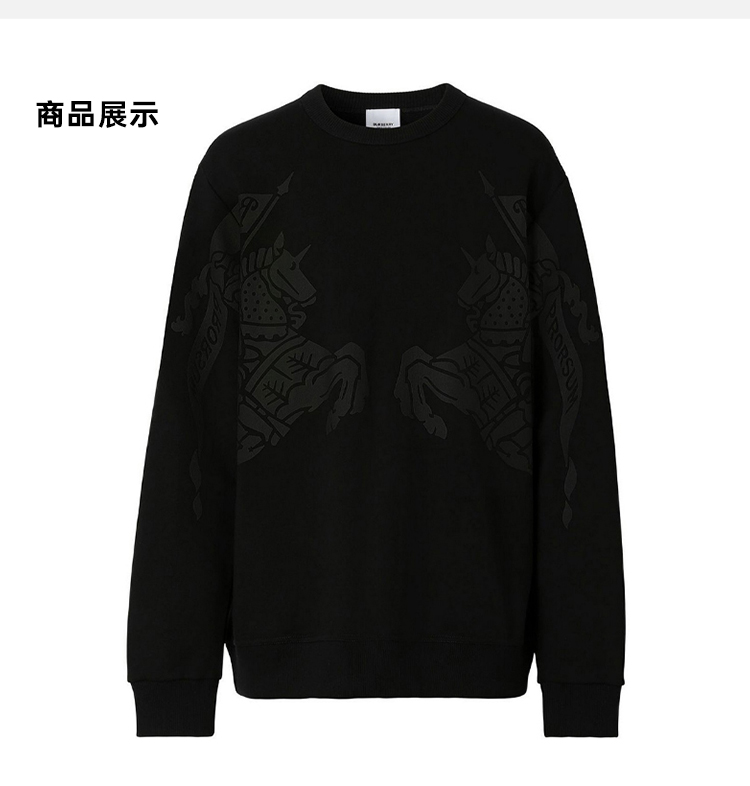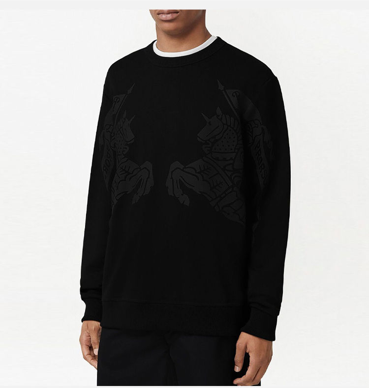 BURBERRY 巴宝莉 男士棉质战马徽标印花圆领长袖卫衣 黑色 8065175 A1189