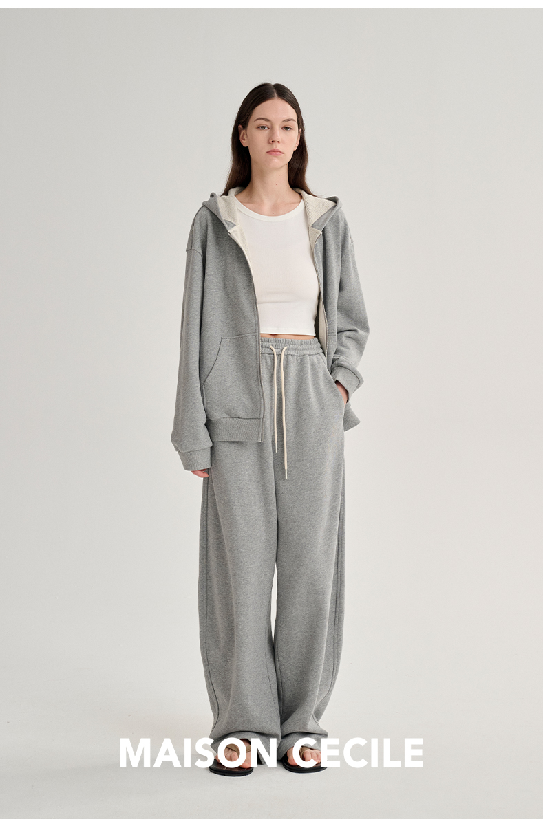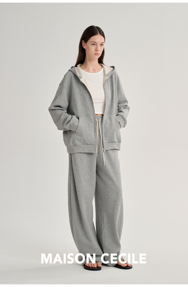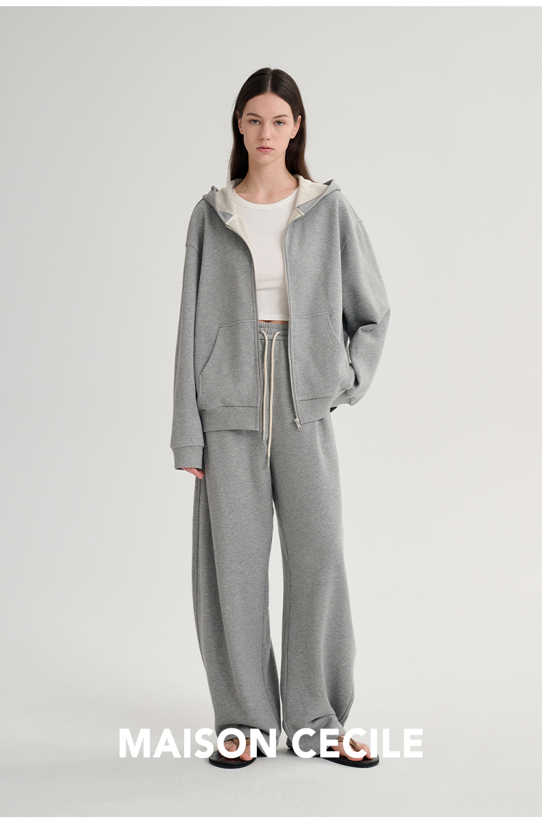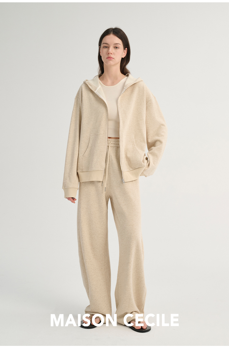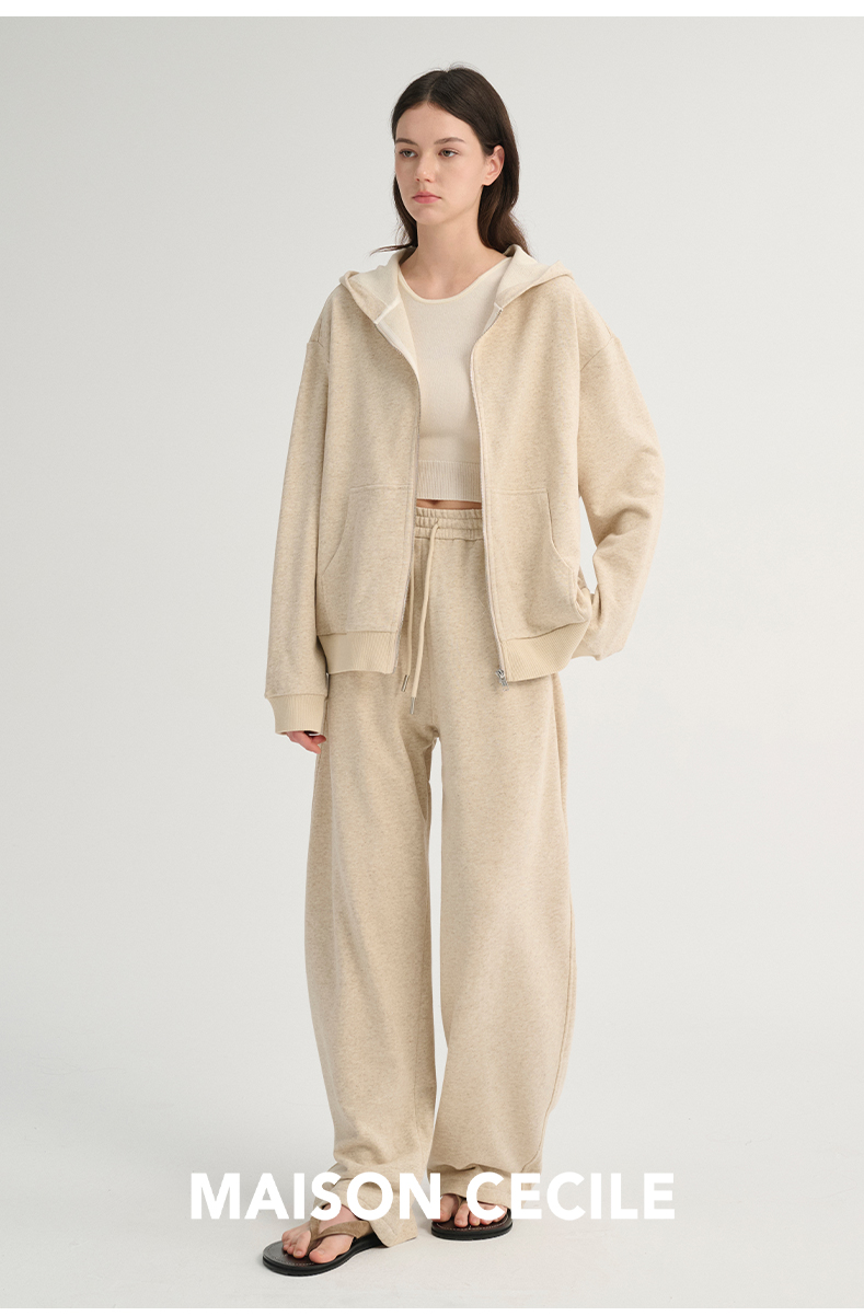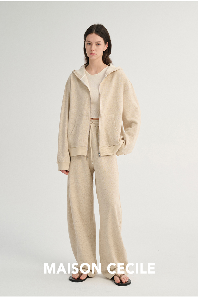 MAISON CECILE 四色/春秋亚麻宽松连帽卫衣外套/松紧腰抽绳长裤