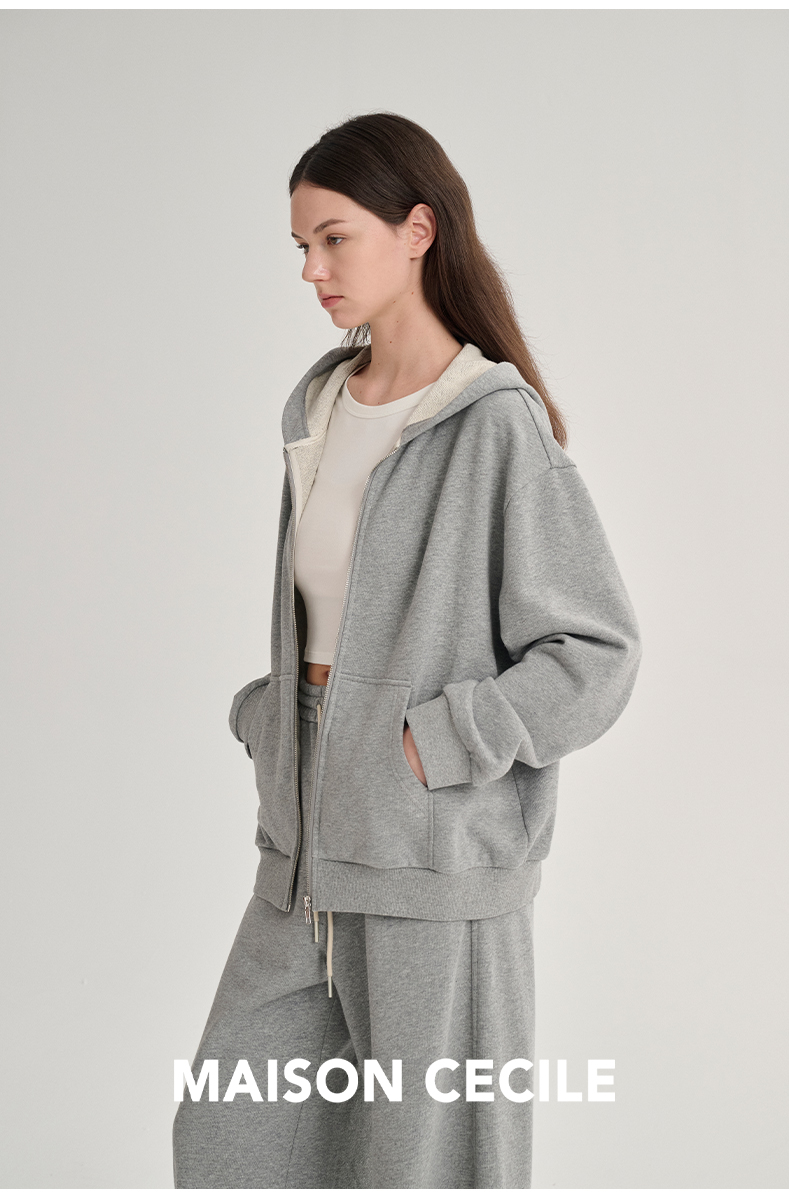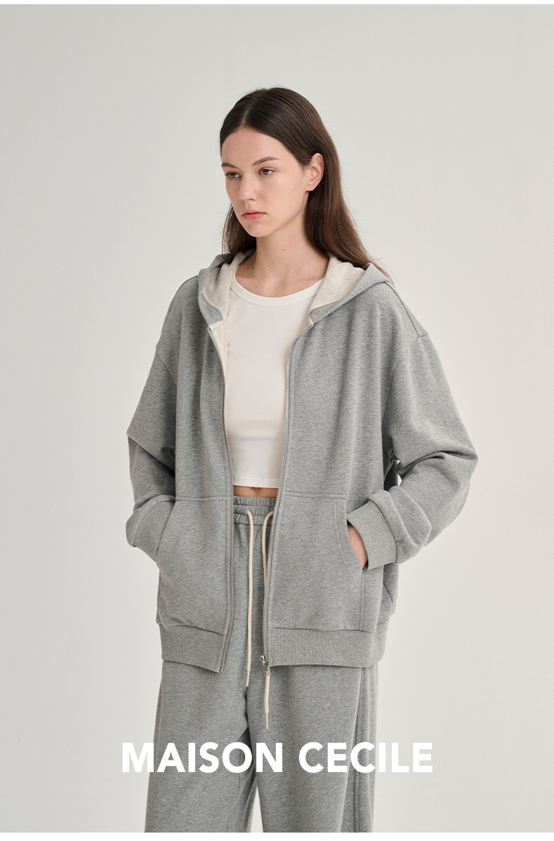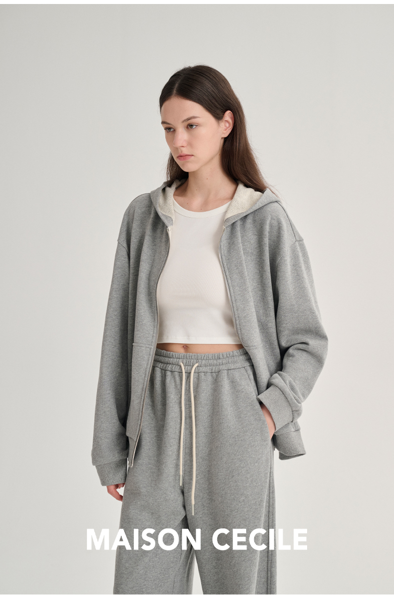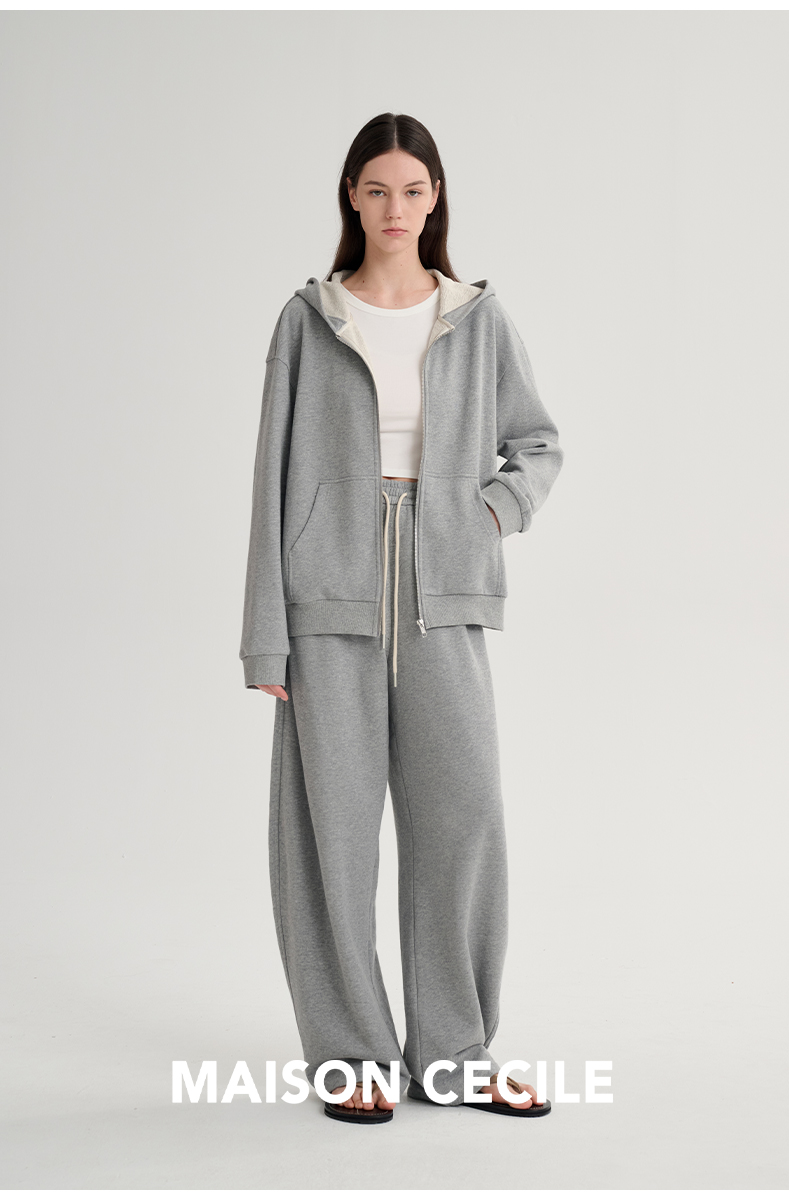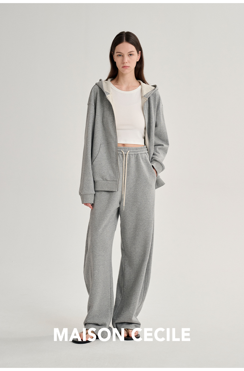 MAISON CECILE 四色/春秋亚麻宽松连帽卫衣外套/松紧腰抽绳长裤