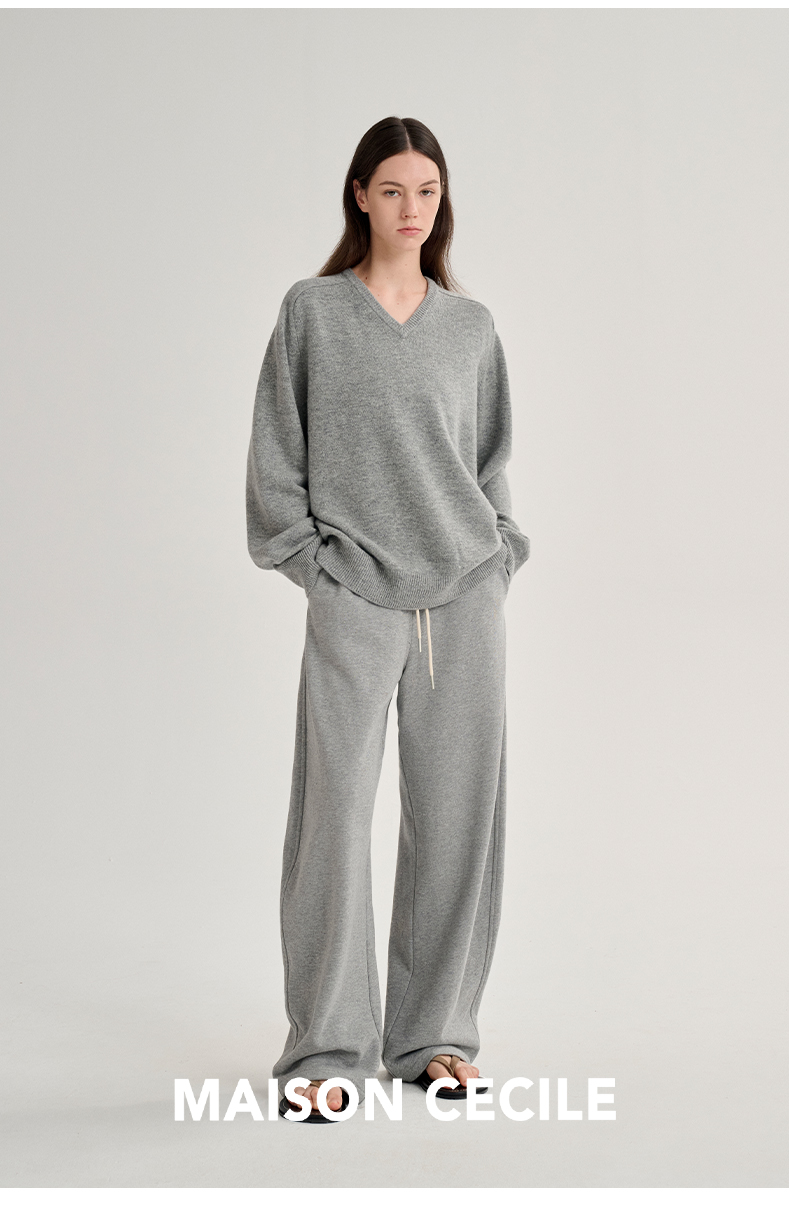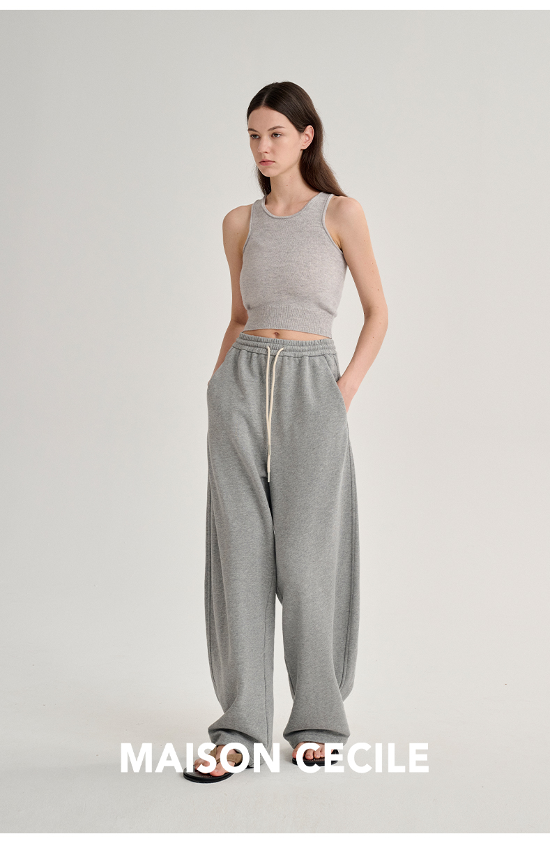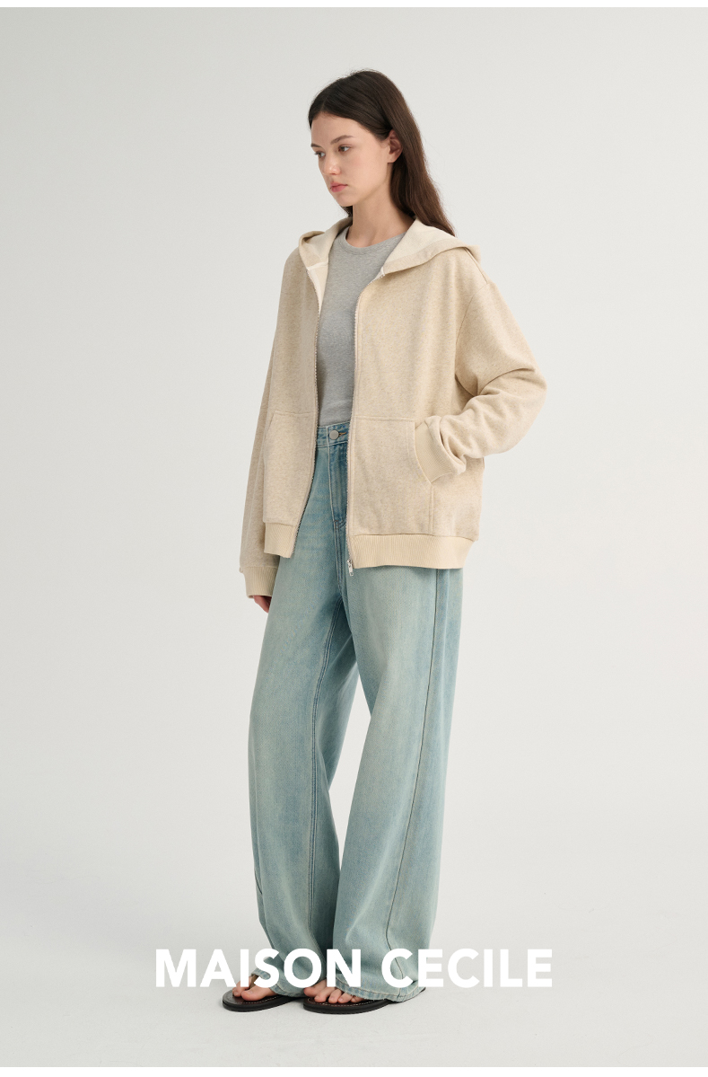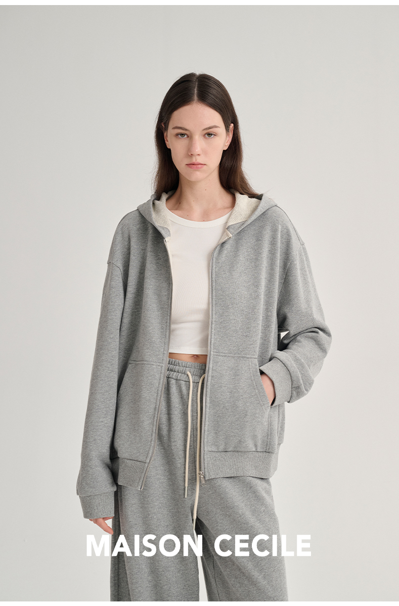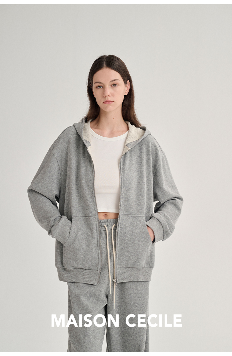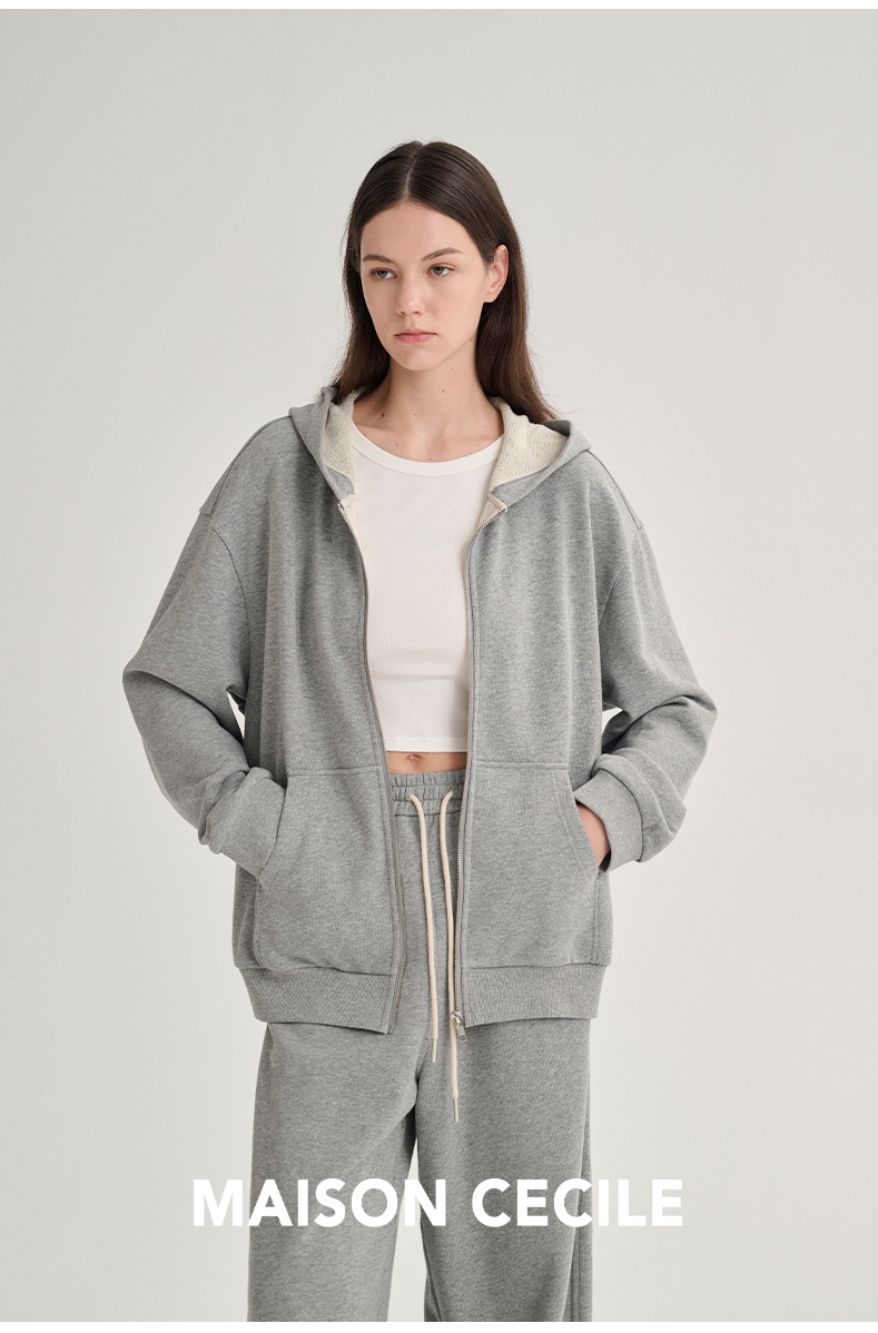 MAISON CECILE 四色/春秋亚麻宽松连帽卫衣外套/松紧腰抽绳长裤
