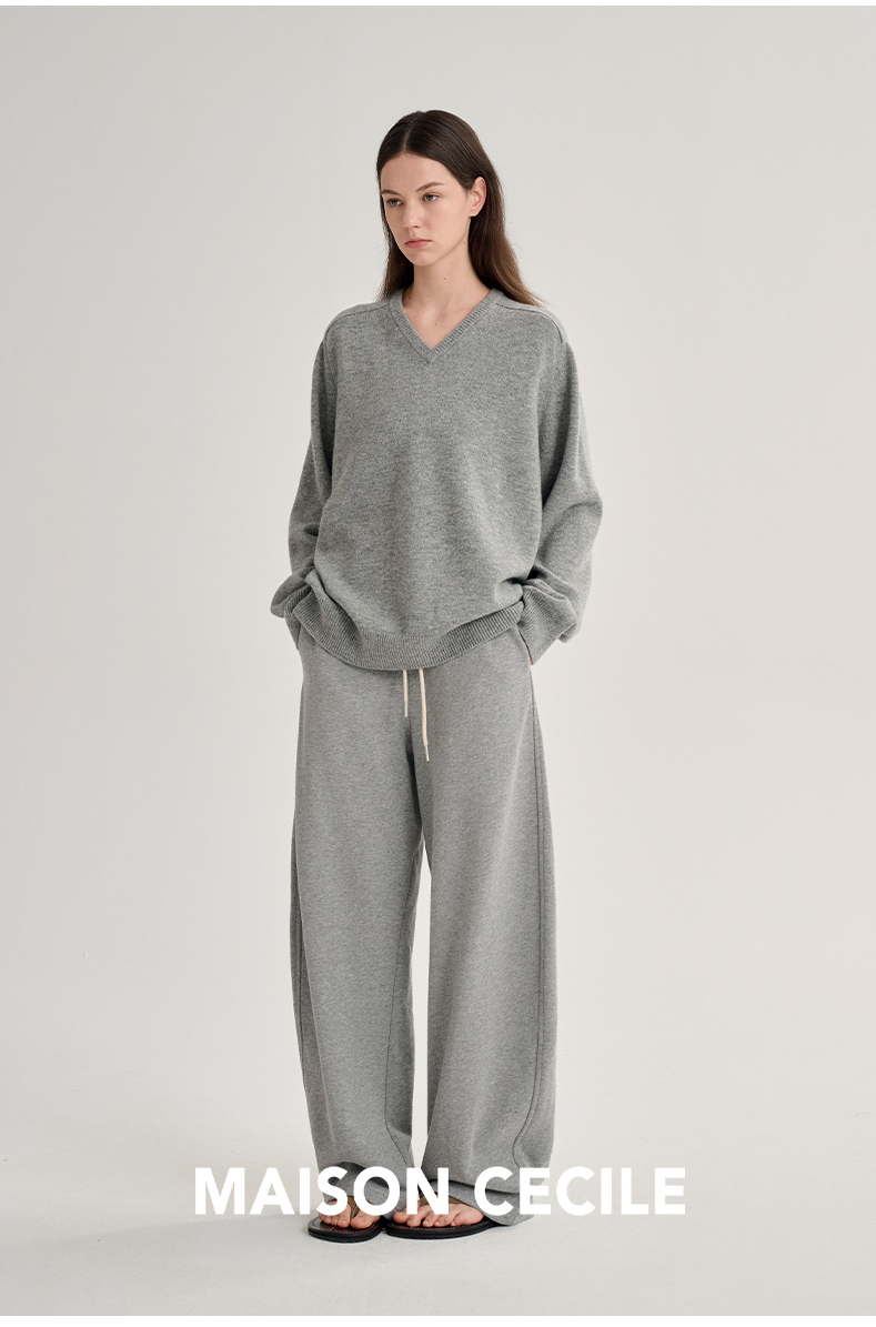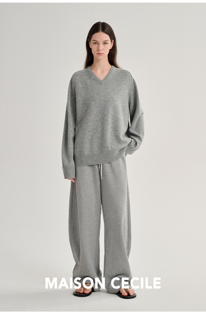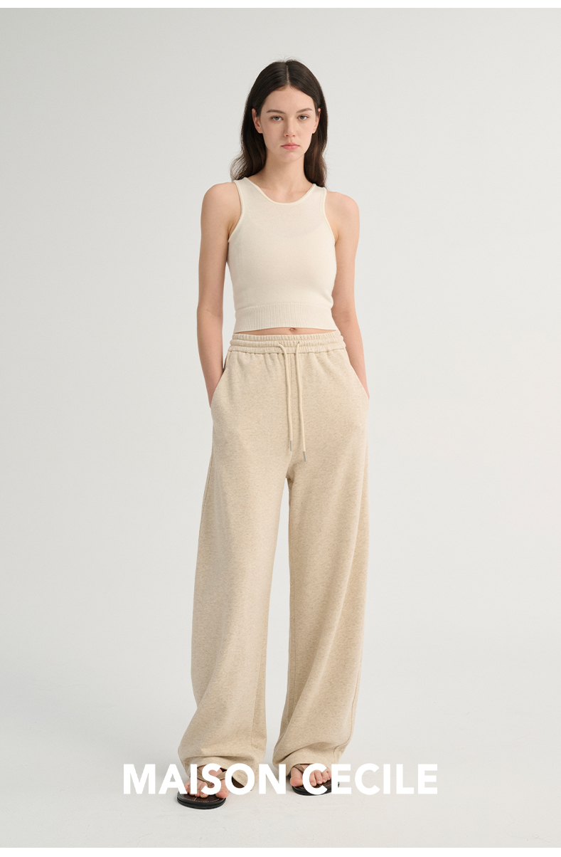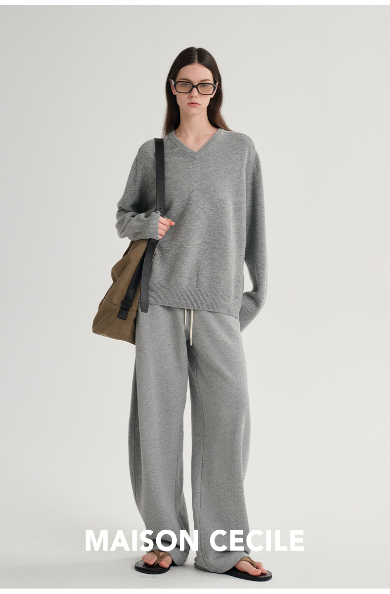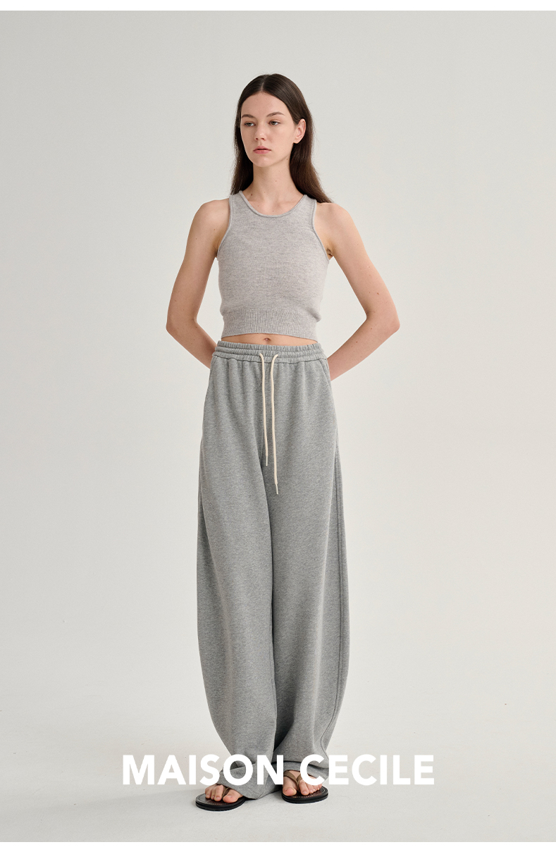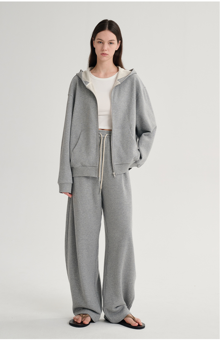 MAISON CECILE 四色/春秋亚麻宽松连帽卫衣外套/松紧腰抽绳长裤
