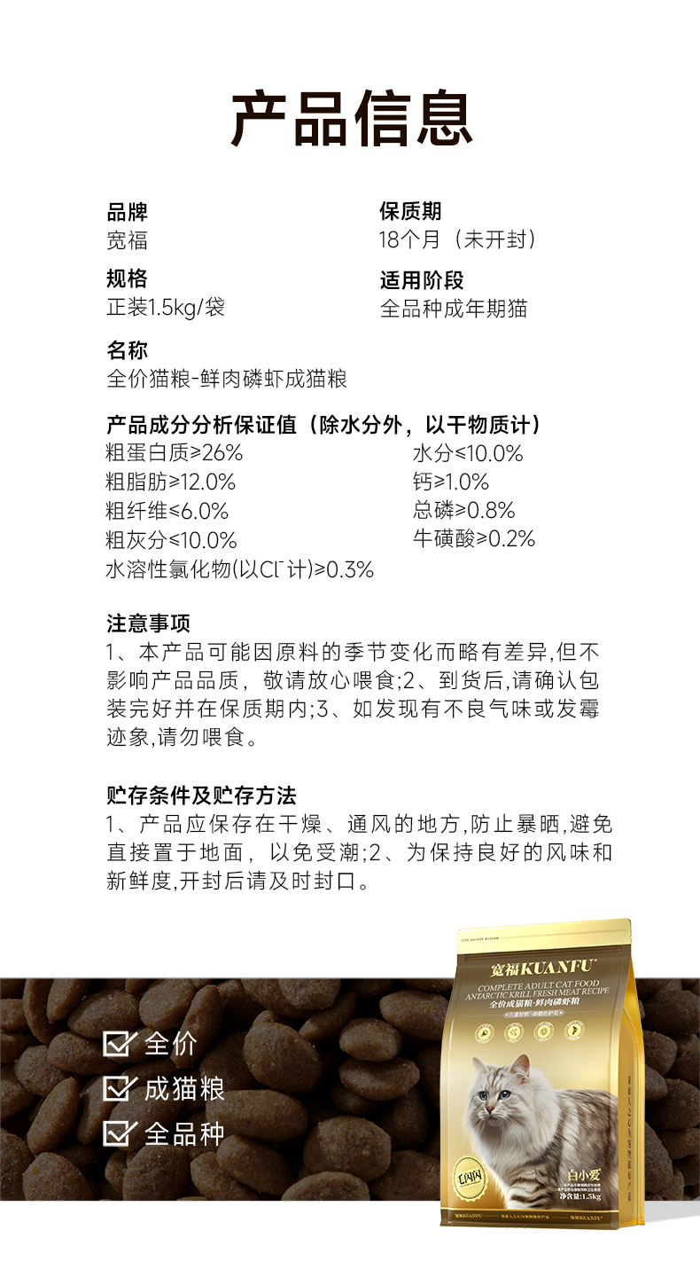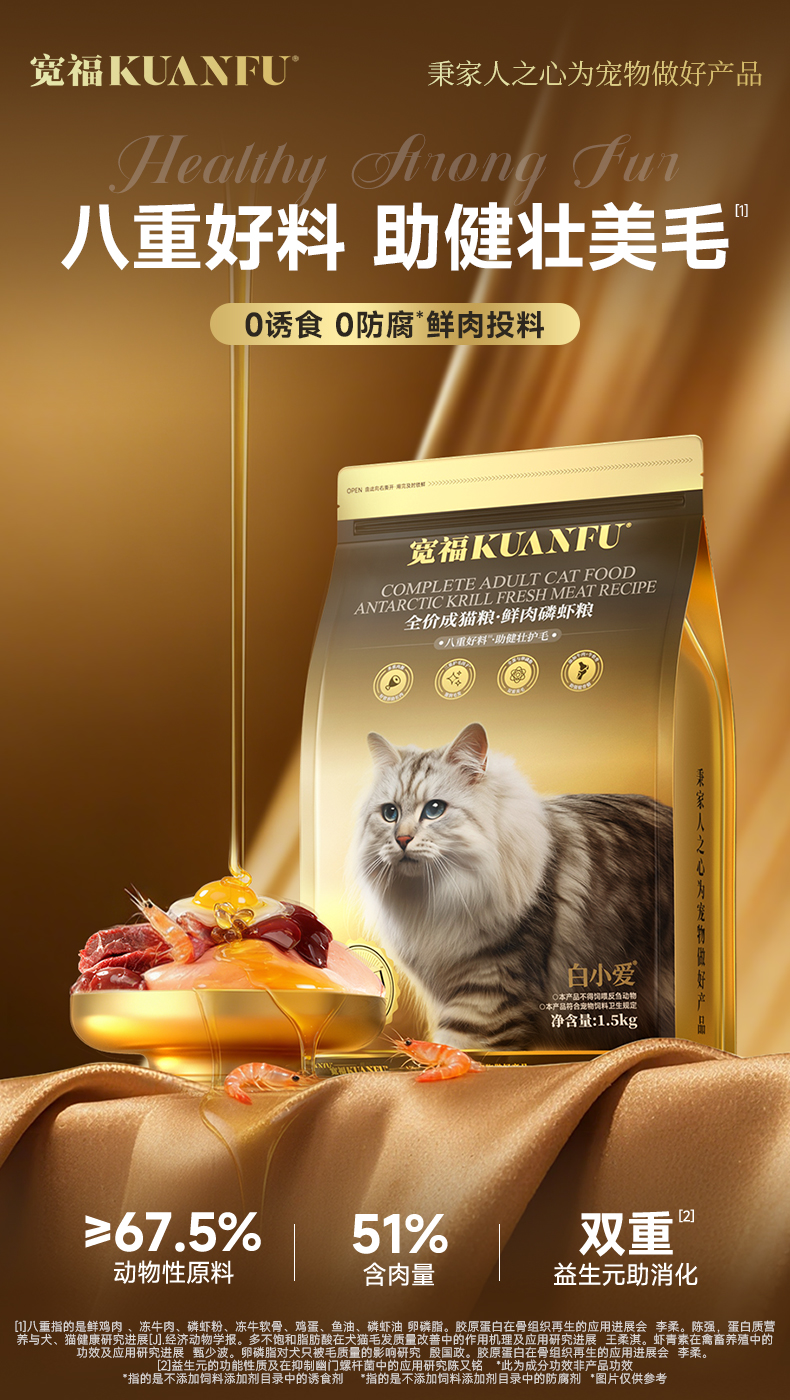 【春日焕新补贴】【鲜肉磷虾猫粮】宽福 全价成猫粮 八重好料 助力健壮呵护毛发 51%含肉量 双重益生元 助力消化 五重助美毛成分 助力毛发焕发光泽