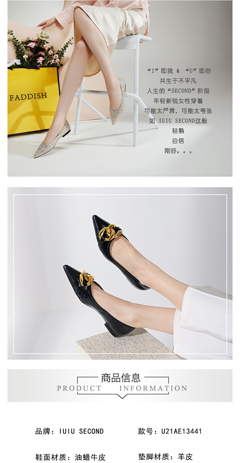 IUIU SECOND真皮单鞋女浅口小皮鞋商场同款一脚蹬尖头舒适平底鞋