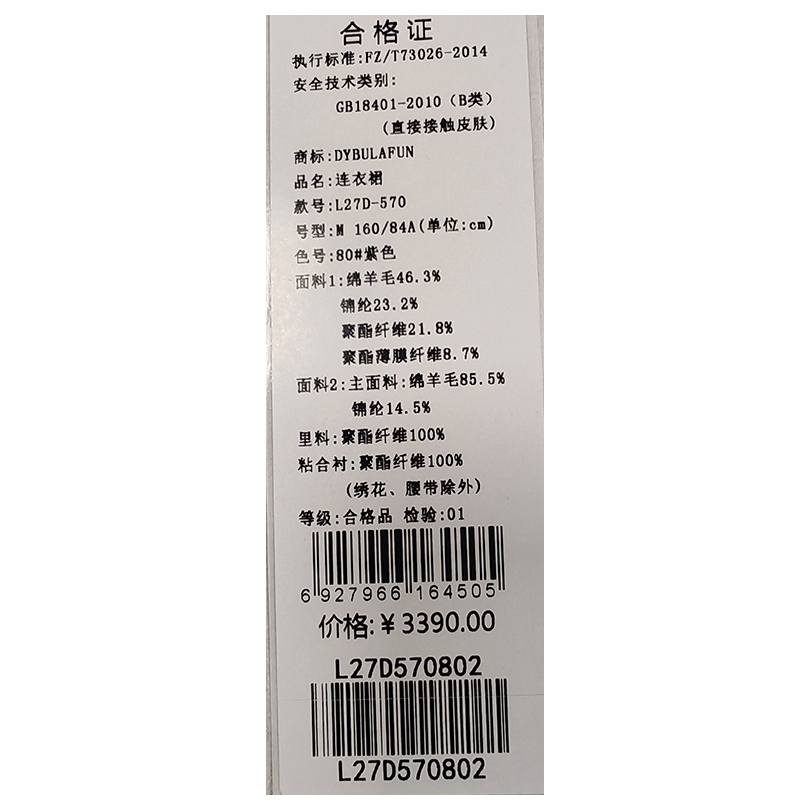 戴布拉芬连衣裙L27D570