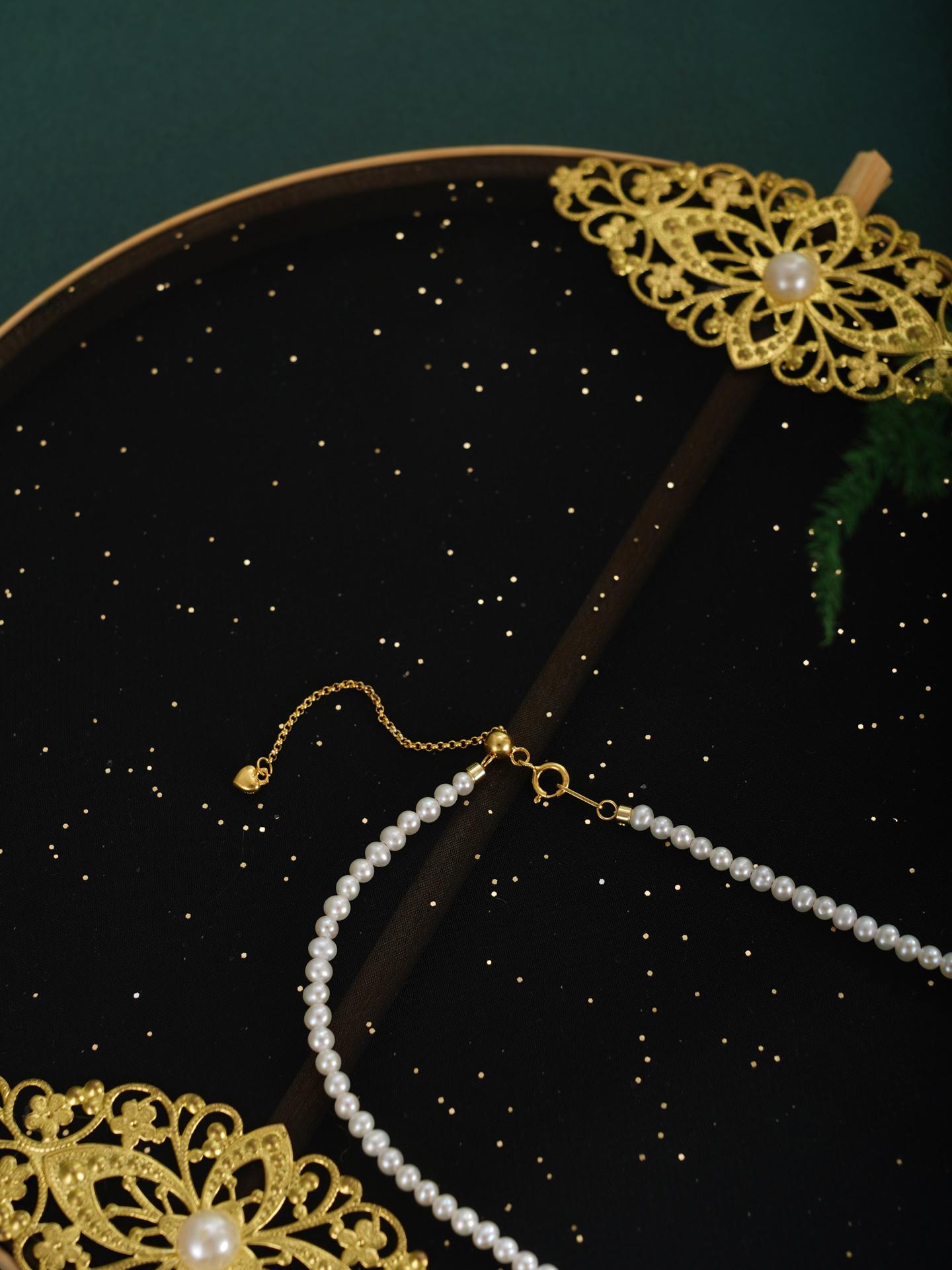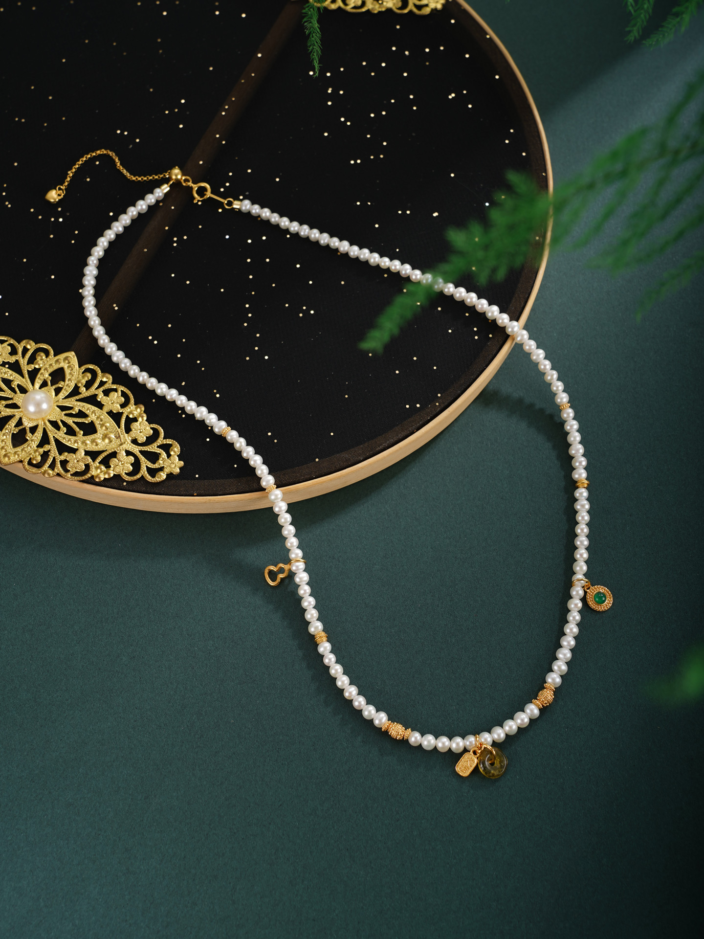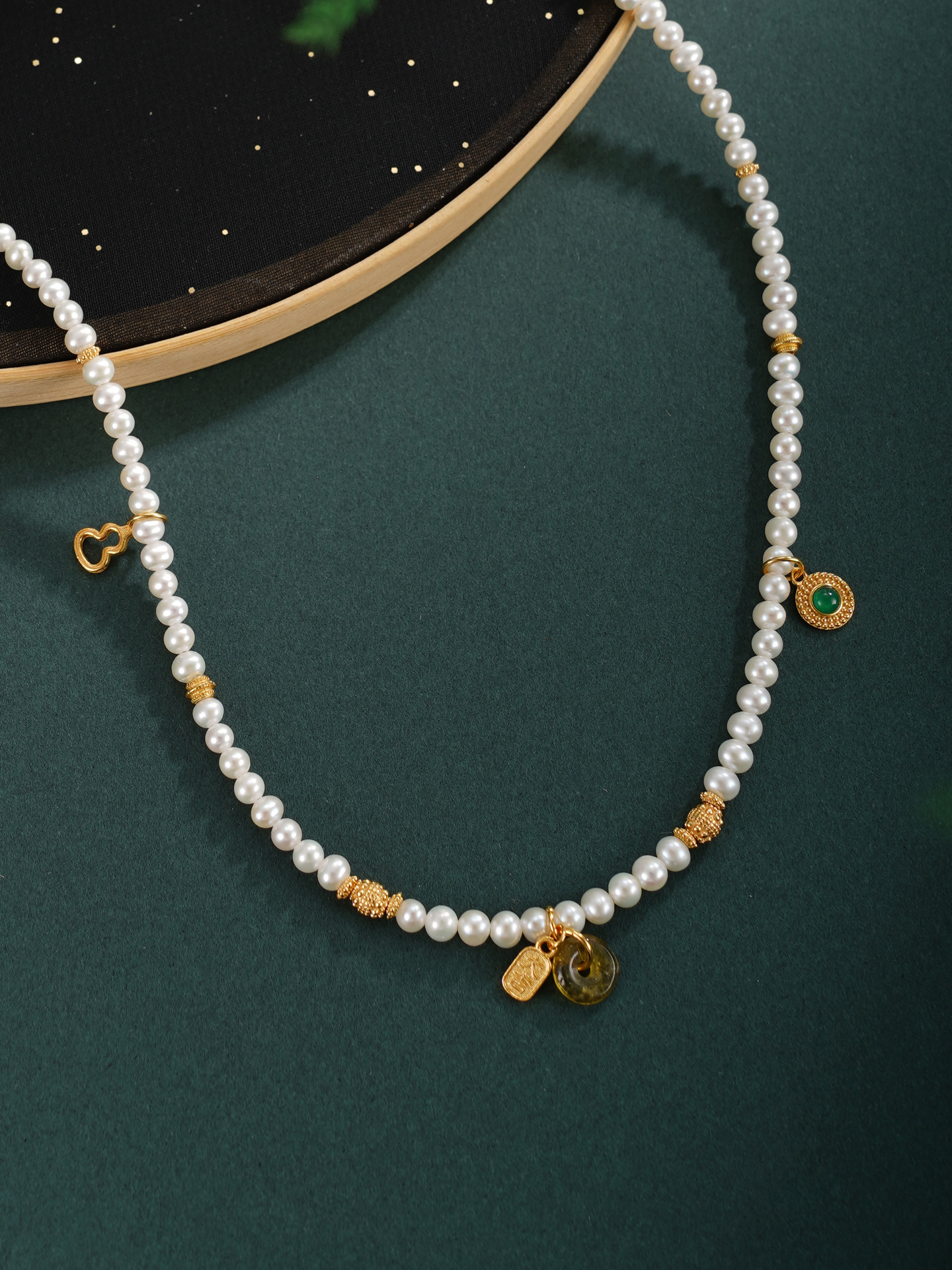 子佩集【福禄平安】银S925珍珠项链【QNX0019】3mm珠葫芦镀金平安扣大吉2512