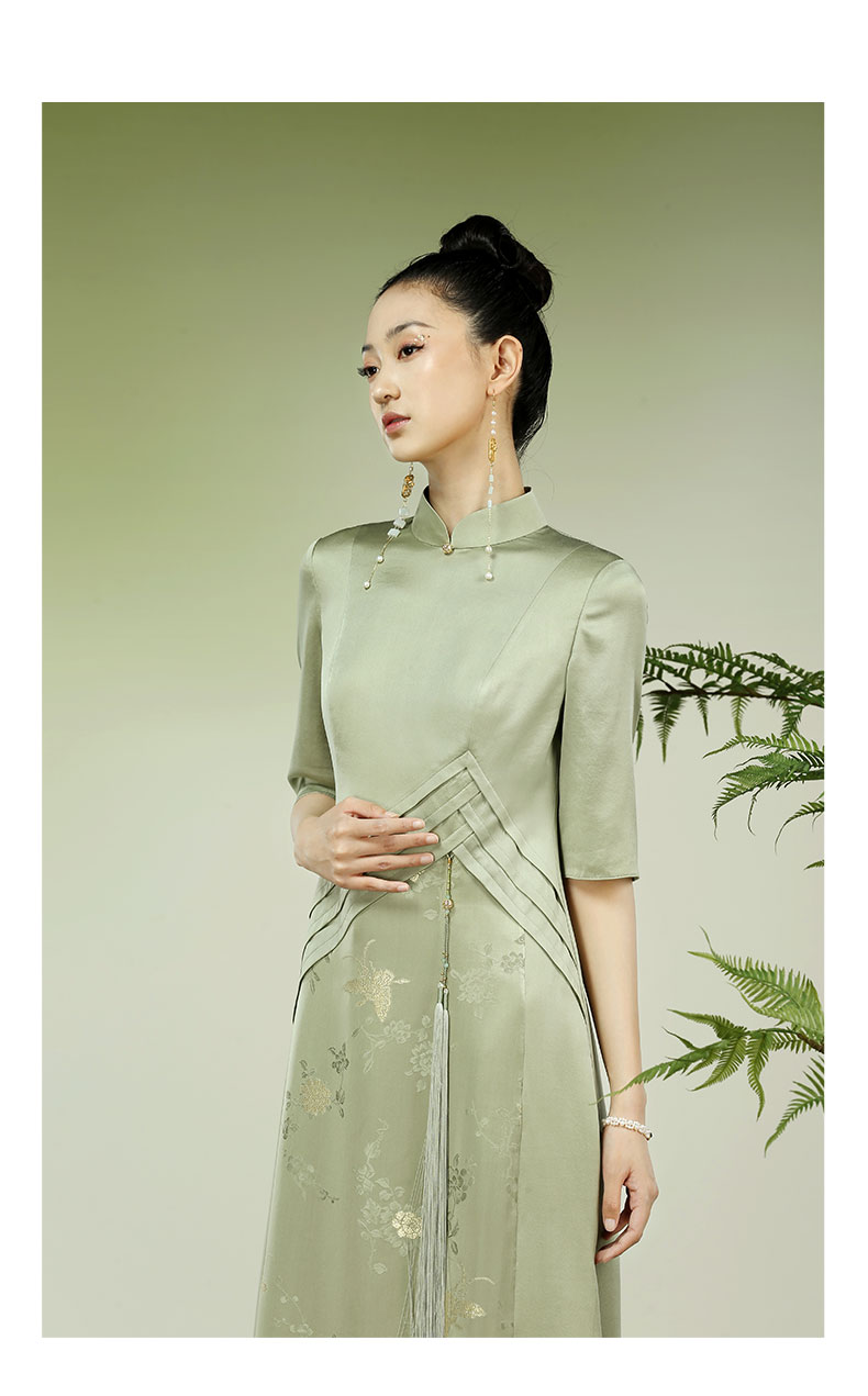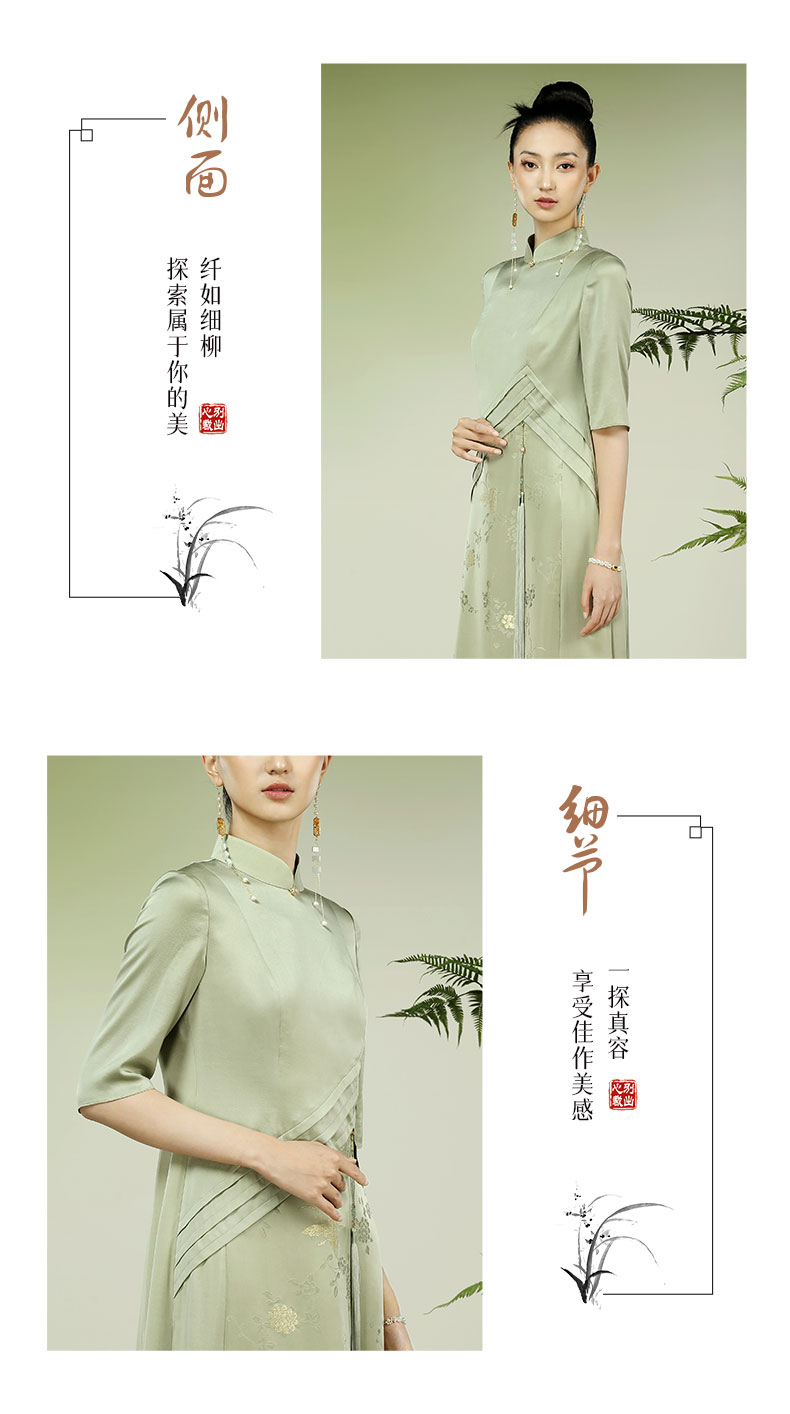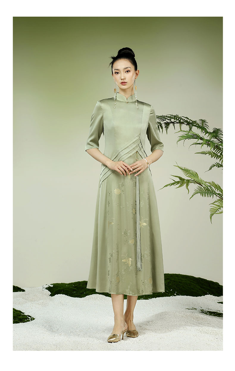 吉祥衣家新中式国风夏新款高端气质修身女装穿花峡蝶连衣裙