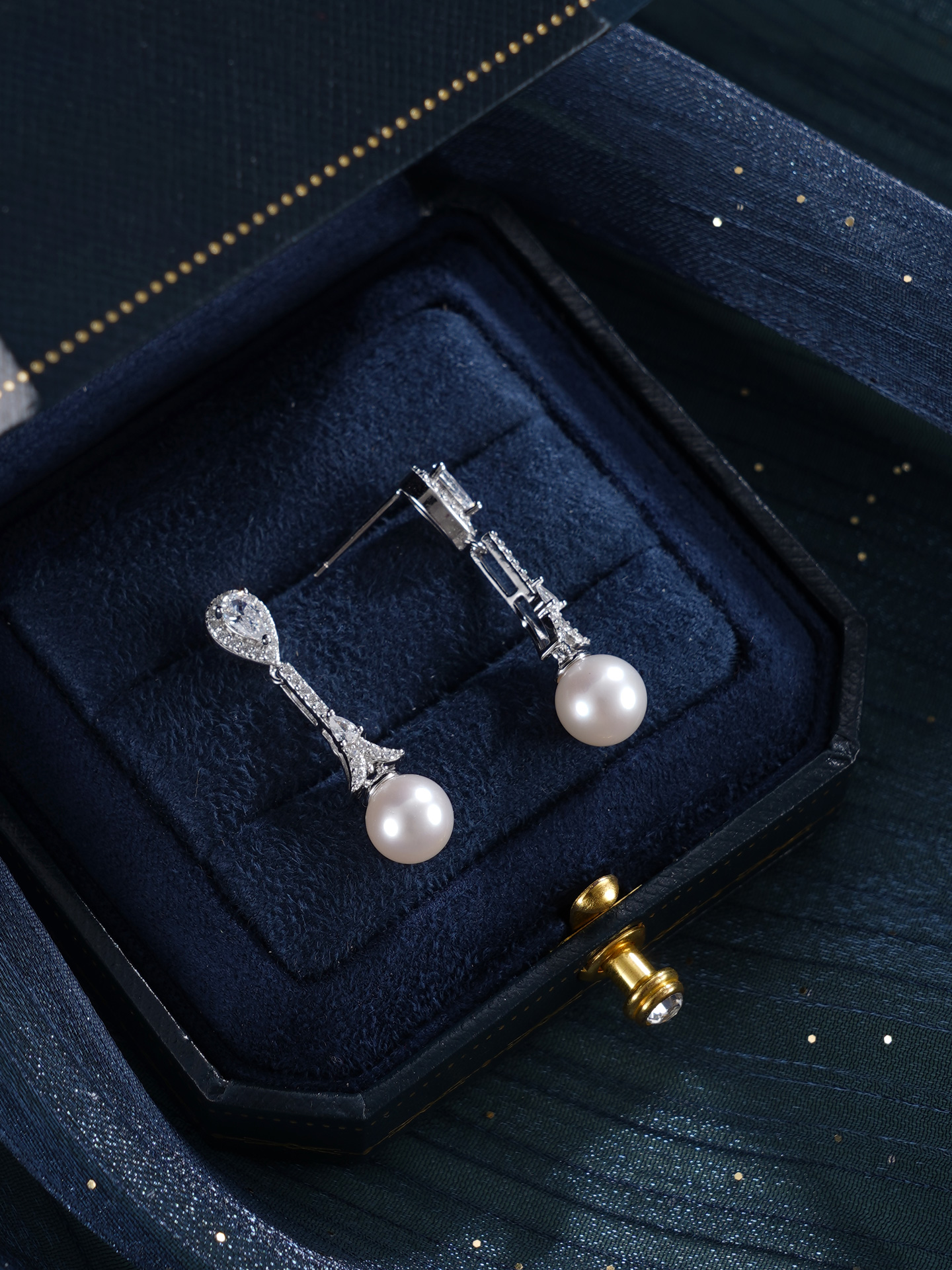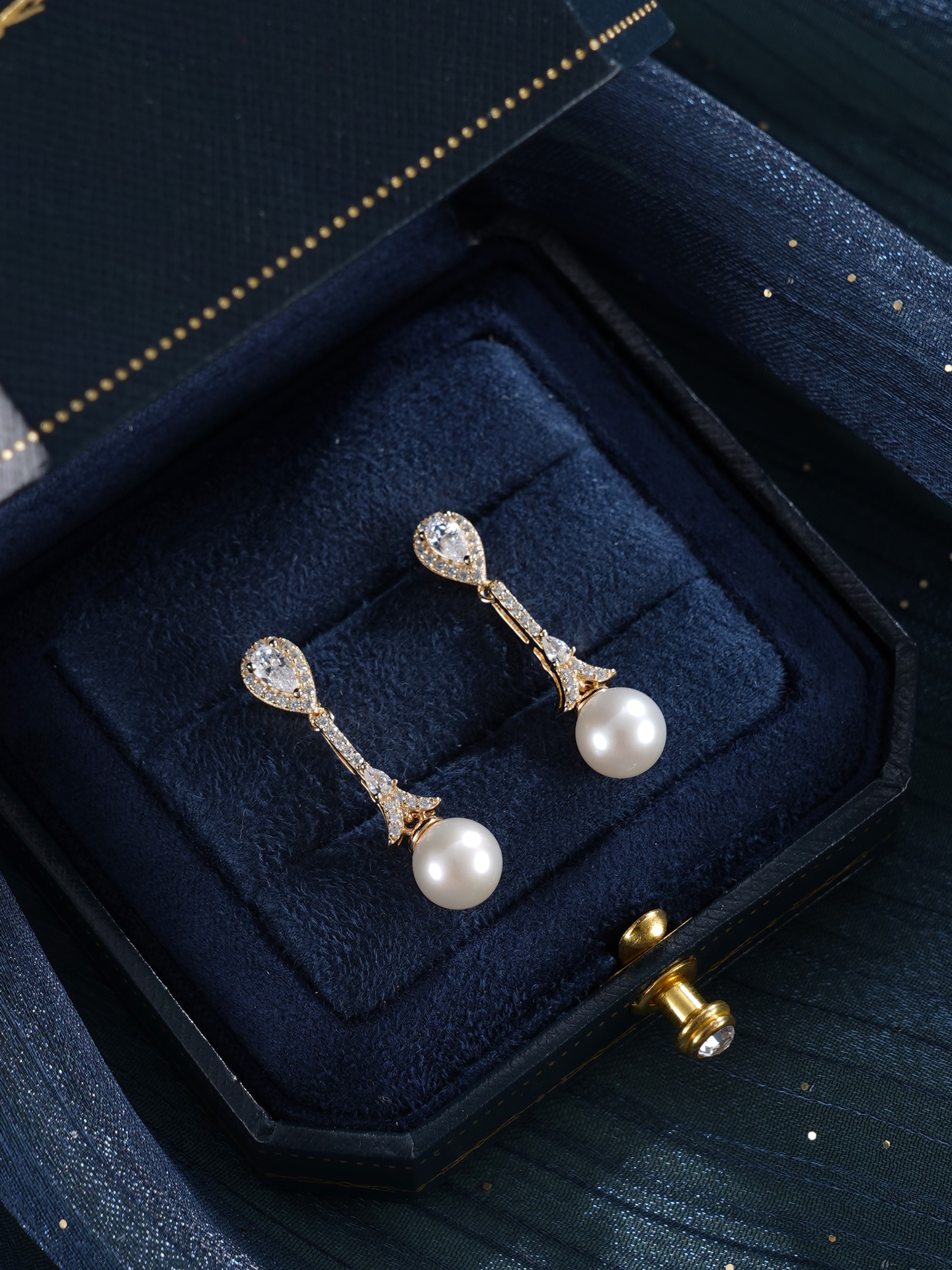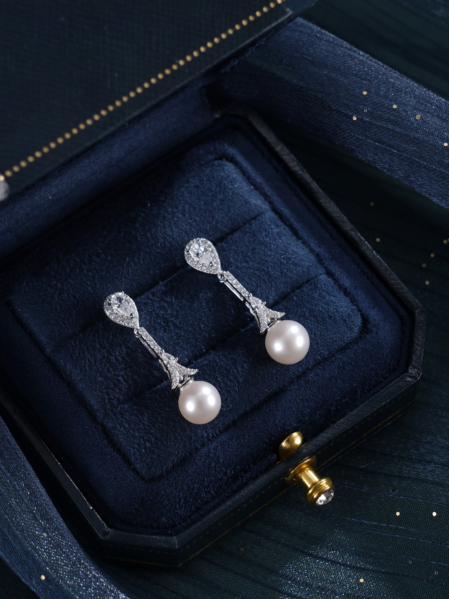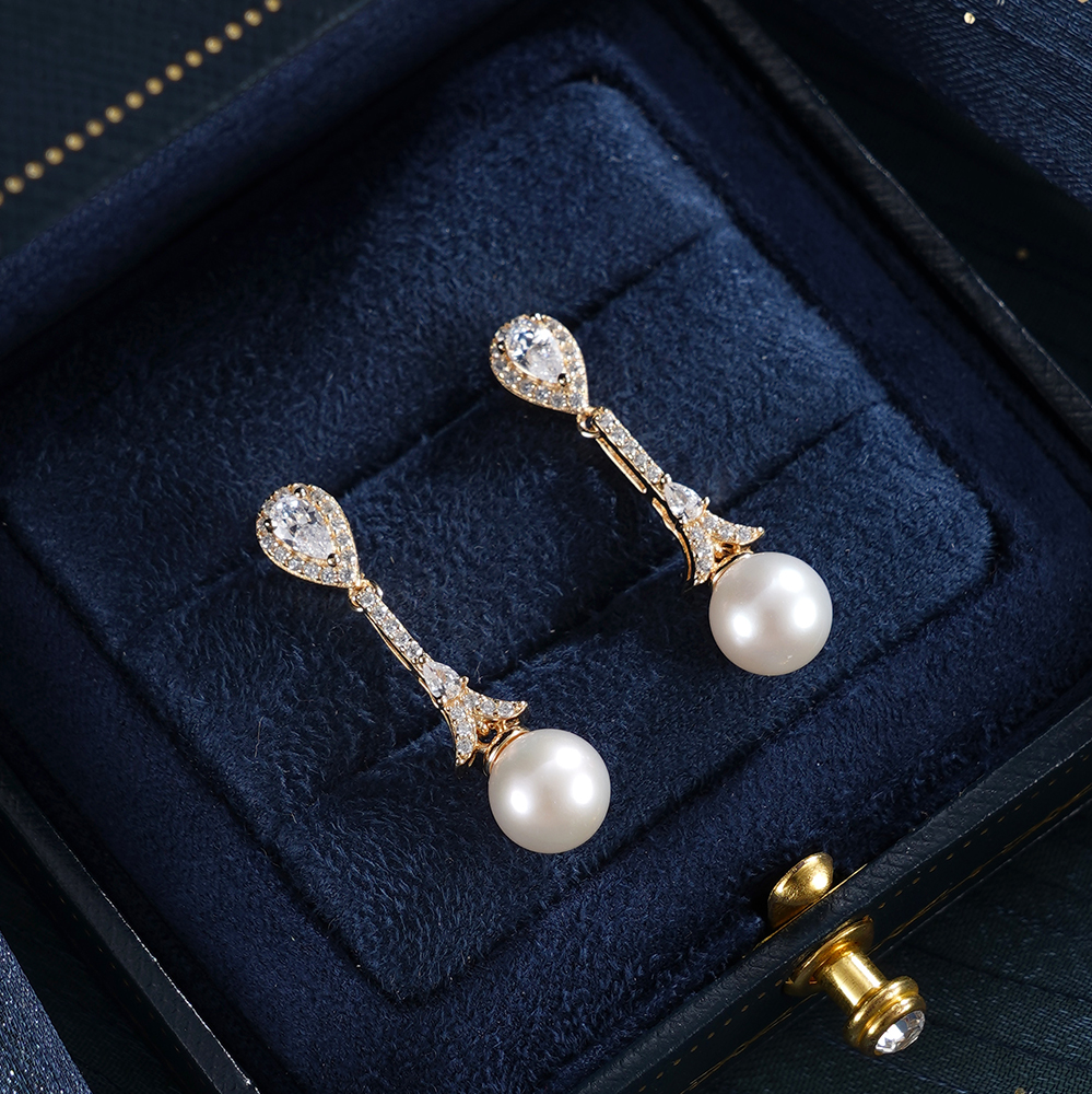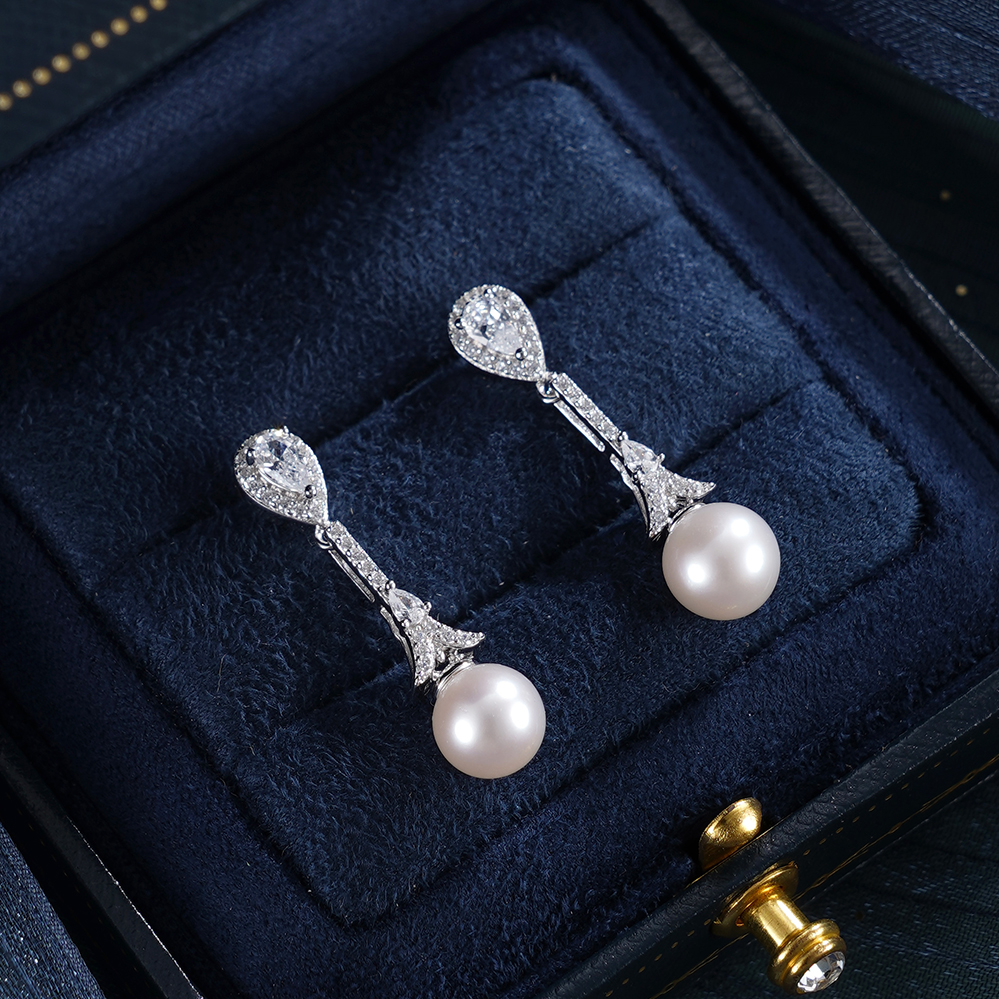 子佩集【闪亮轨迹】银S925珍珠惜王妃耳钉【E4053】7.5mm珠双色水滴吊球2601