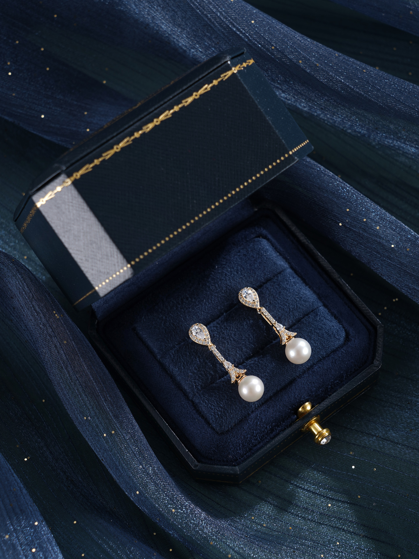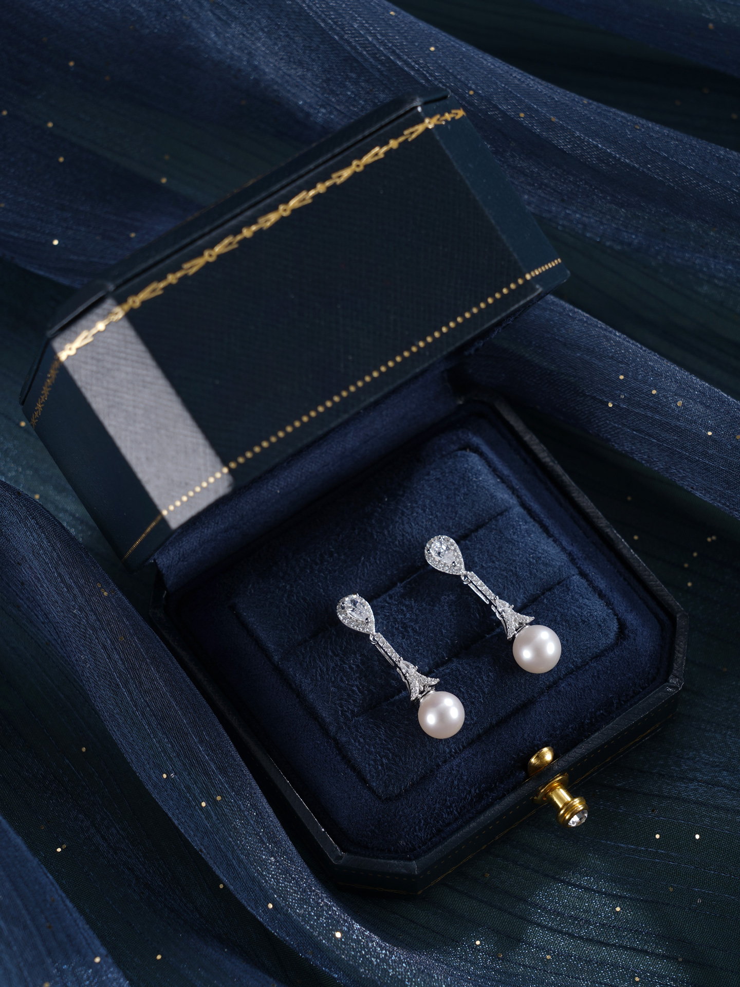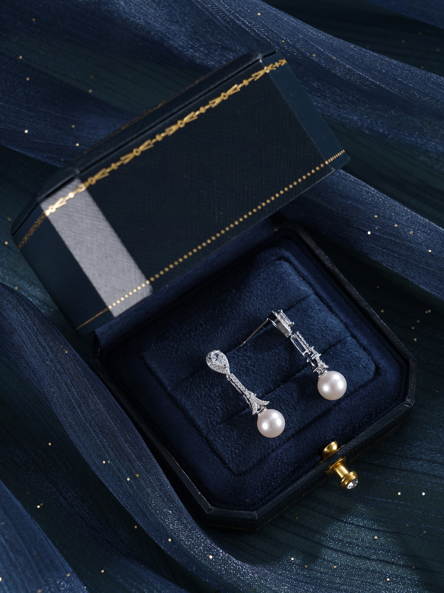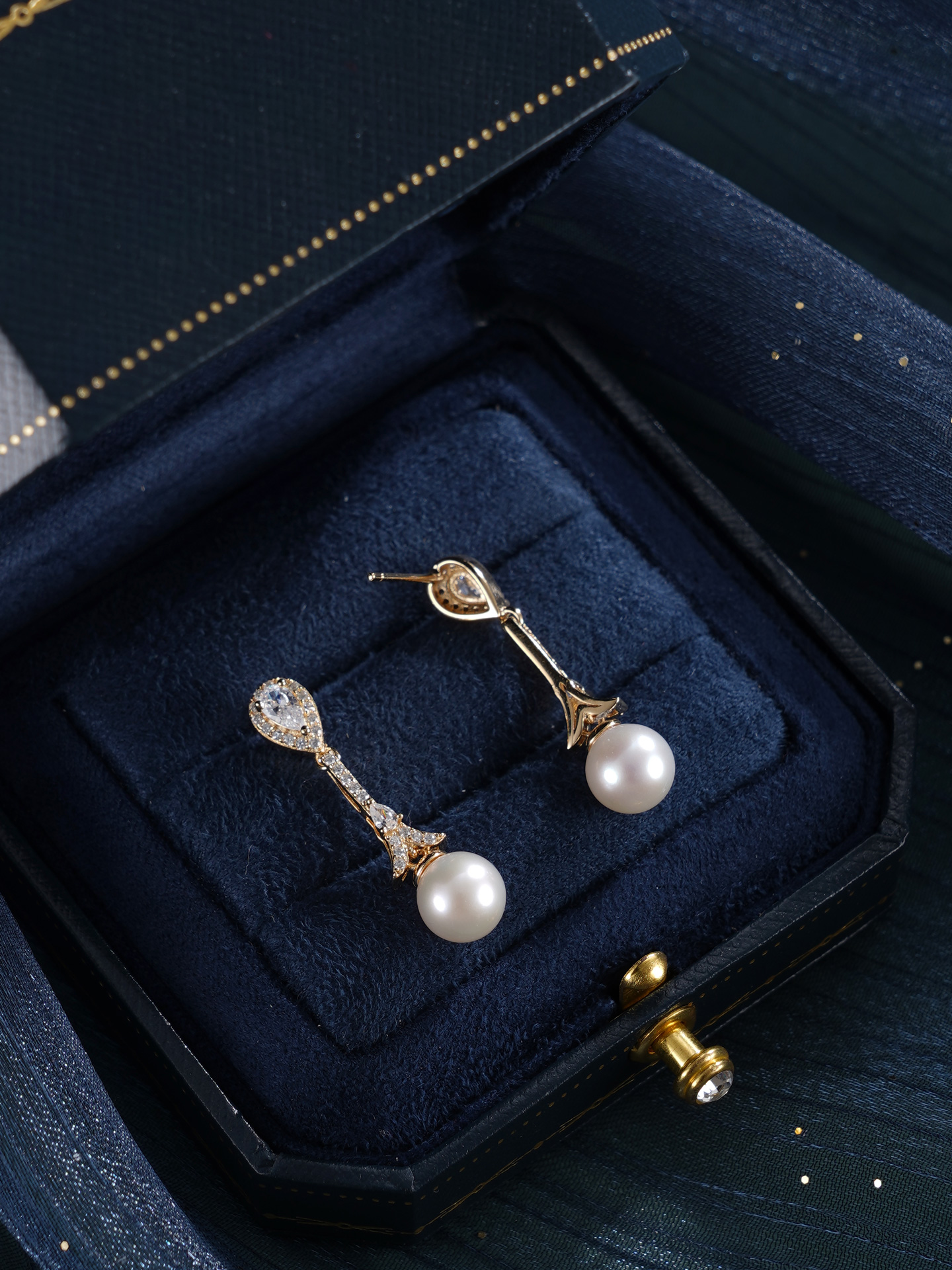 子佩集【闪亮轨迹】银S925珍珠惜王妃耳钉【E4053】7.5mm珠双色水滴吊球2601