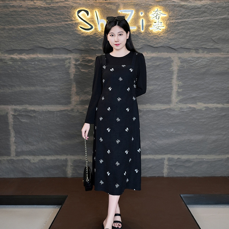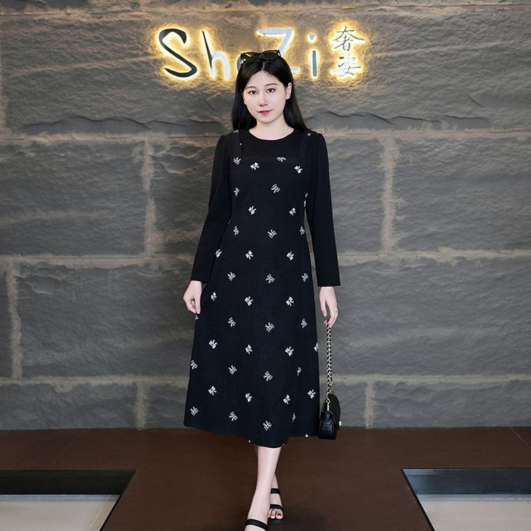 8/15奢姿2024年秋季新款大码女装圆领休闲裙子胖妹妹减龄假两件连衣裙9943890250
