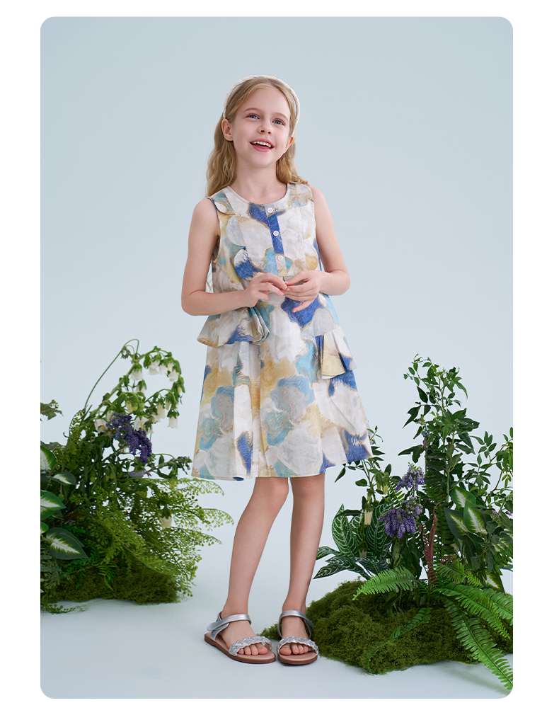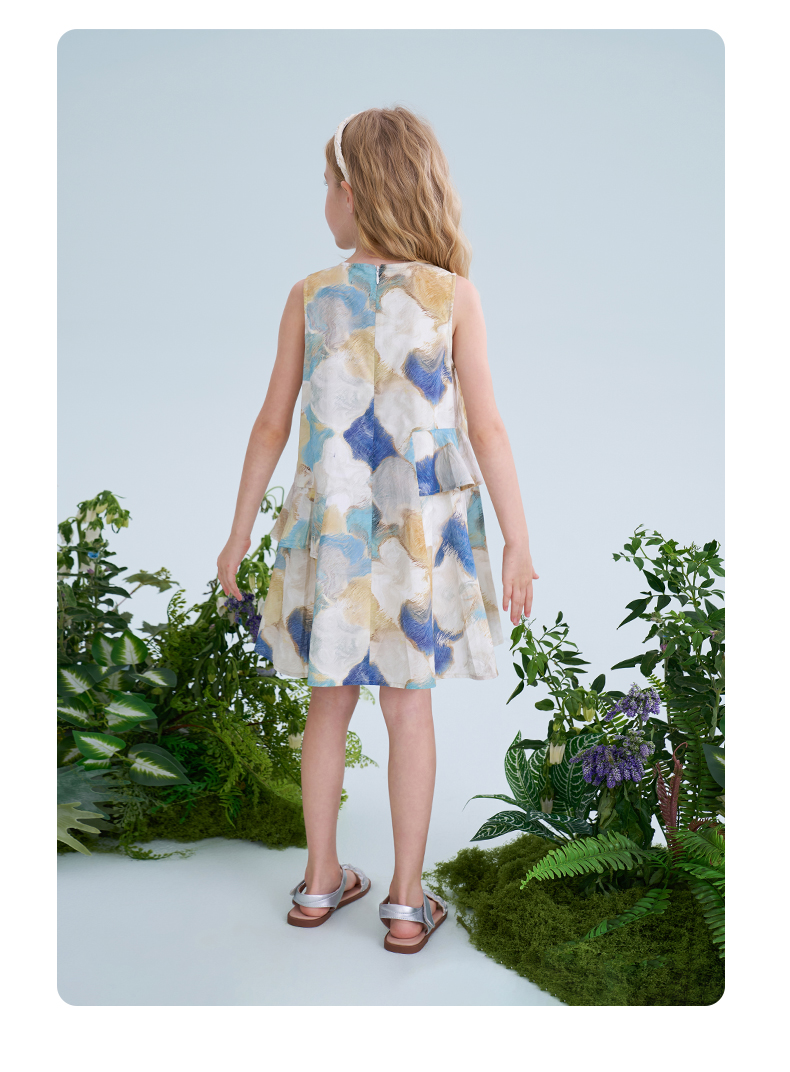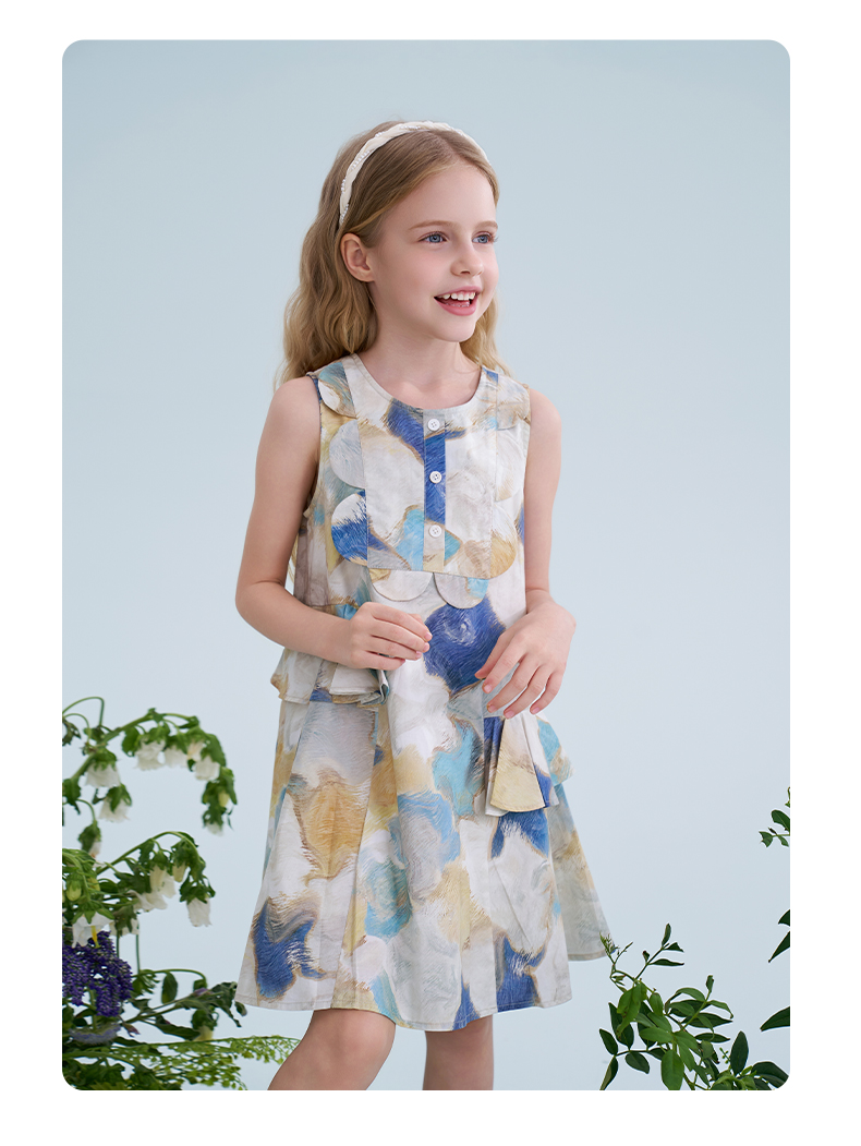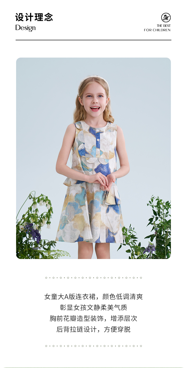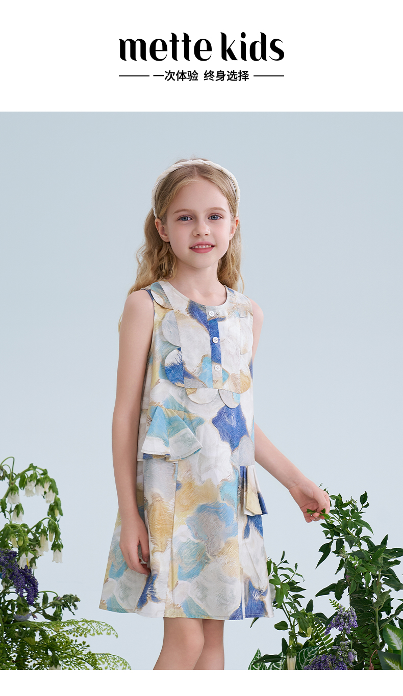 mettekids儿童连衣裙2025夏季新款女童无袖水彩印花洋气A版裙子