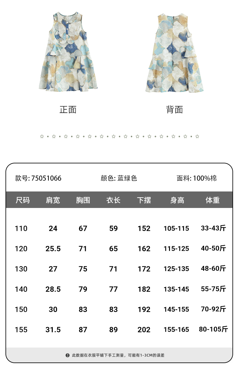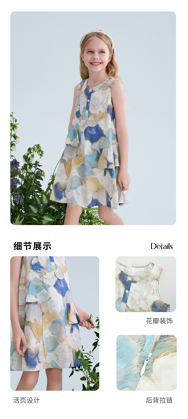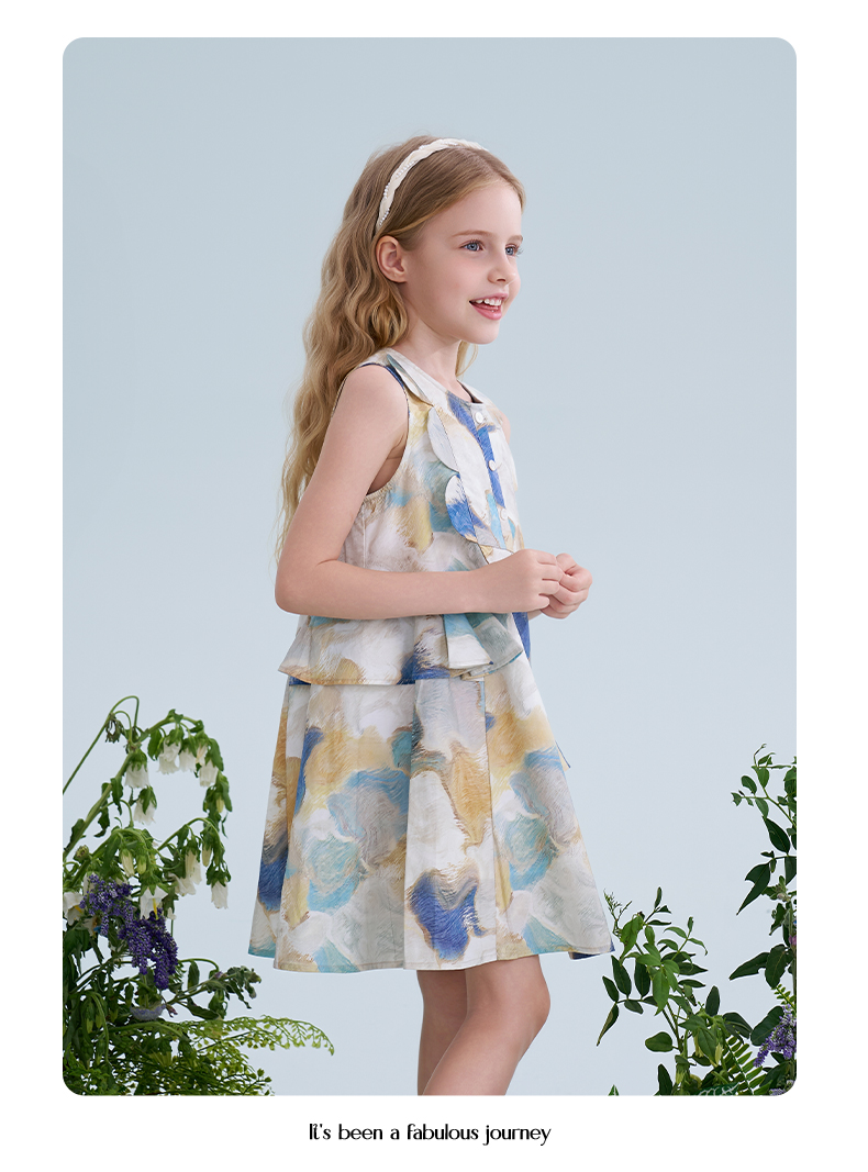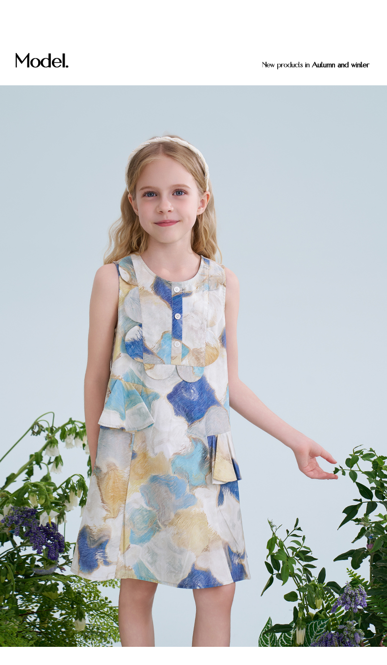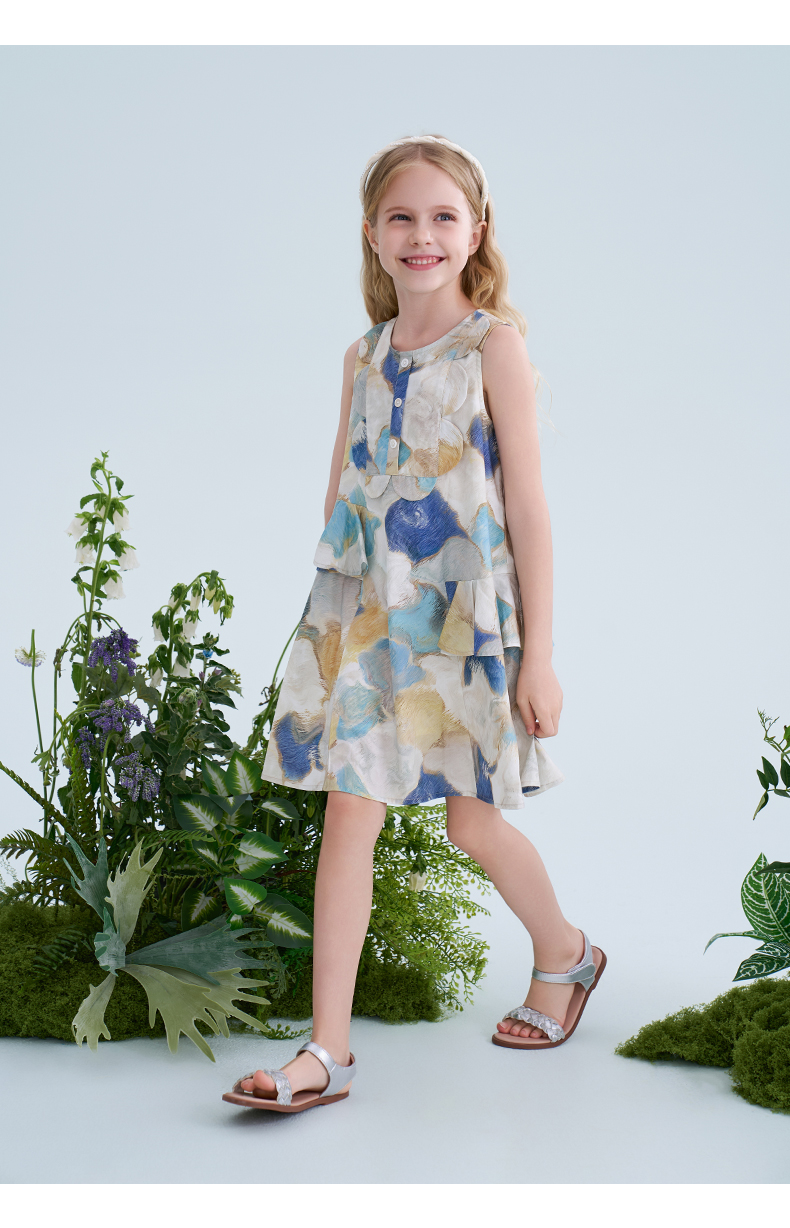 mettekids儿童连衣裙2025夏季新款女童无袖水彩印花洋气A版裙子