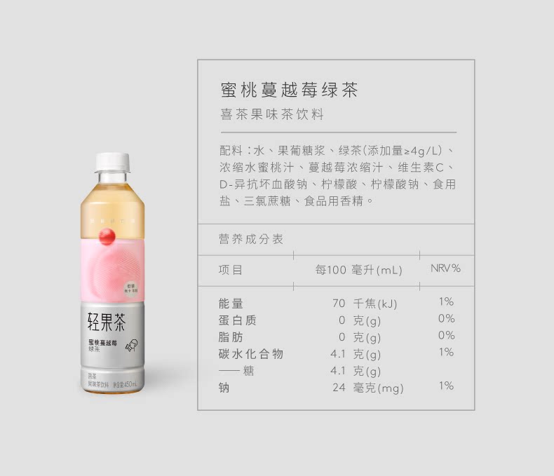 喜茶轻果茶果味茶饮450ml(青提卡曼橘绿妍/蜜桃蔓越莓)