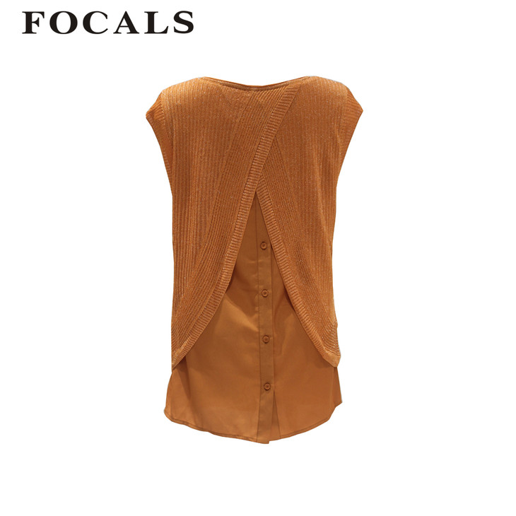 FOCALS福柯斯女装夏季新款半袖拼接针织衫YNBM13929