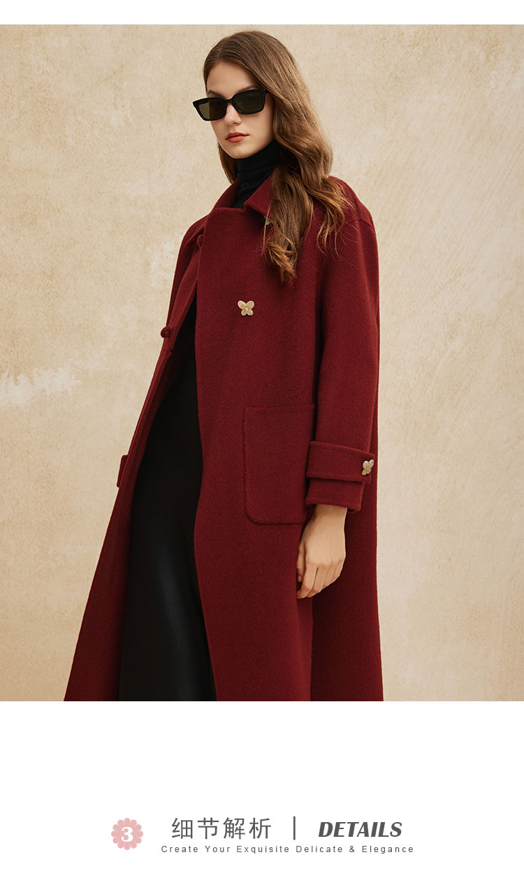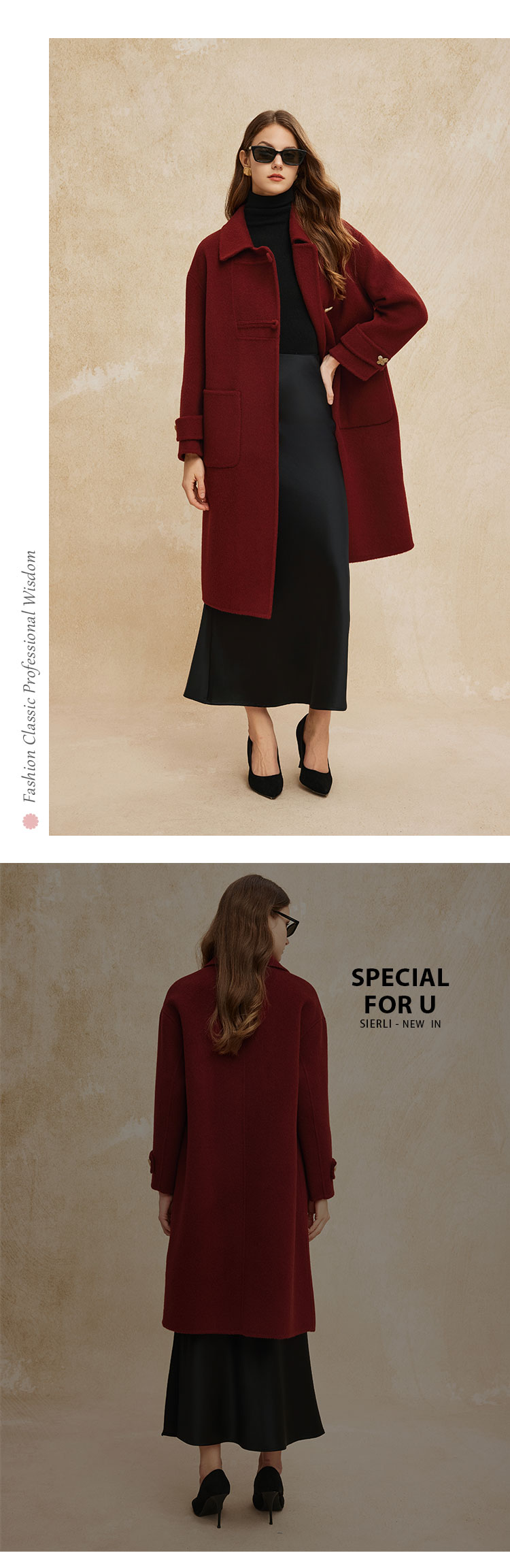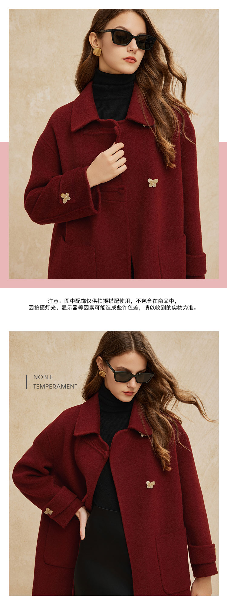 PH923斯尔丽24冬季新款双面羊毛大衣中长款设计感装饰扣廓形大衣