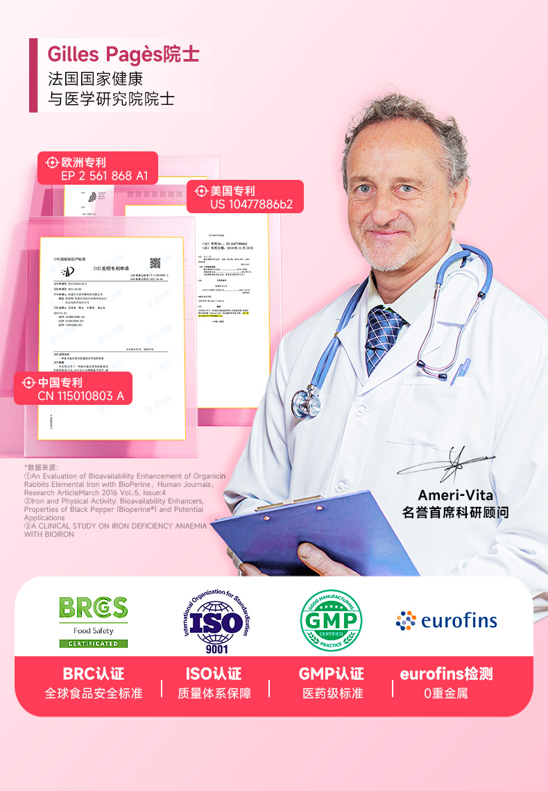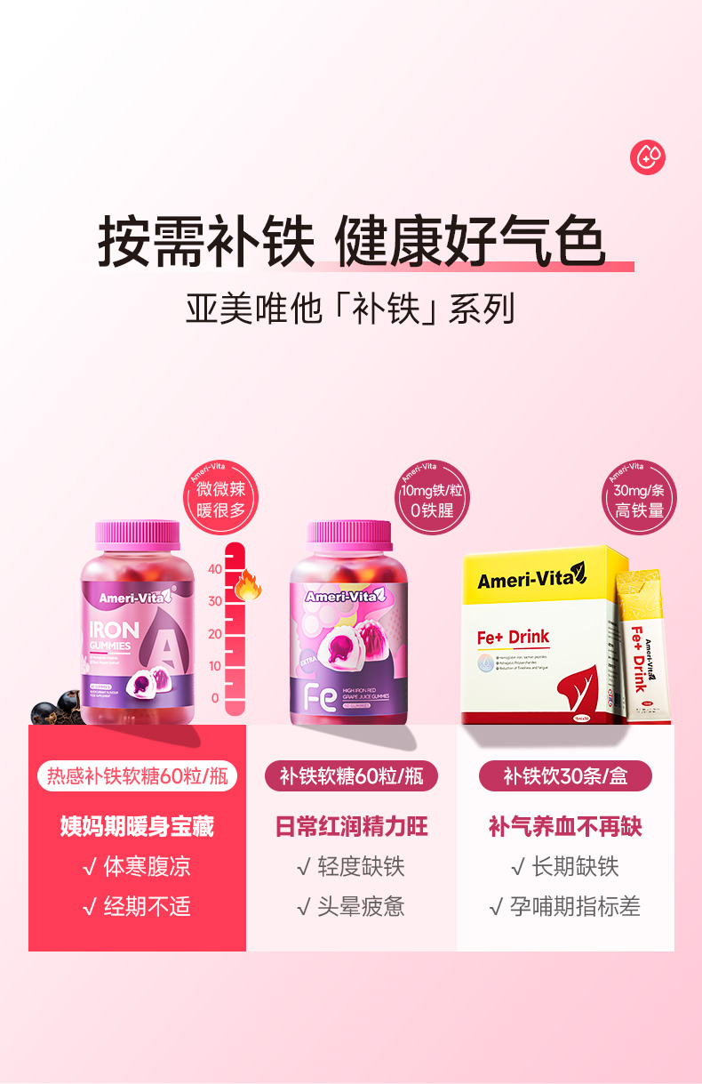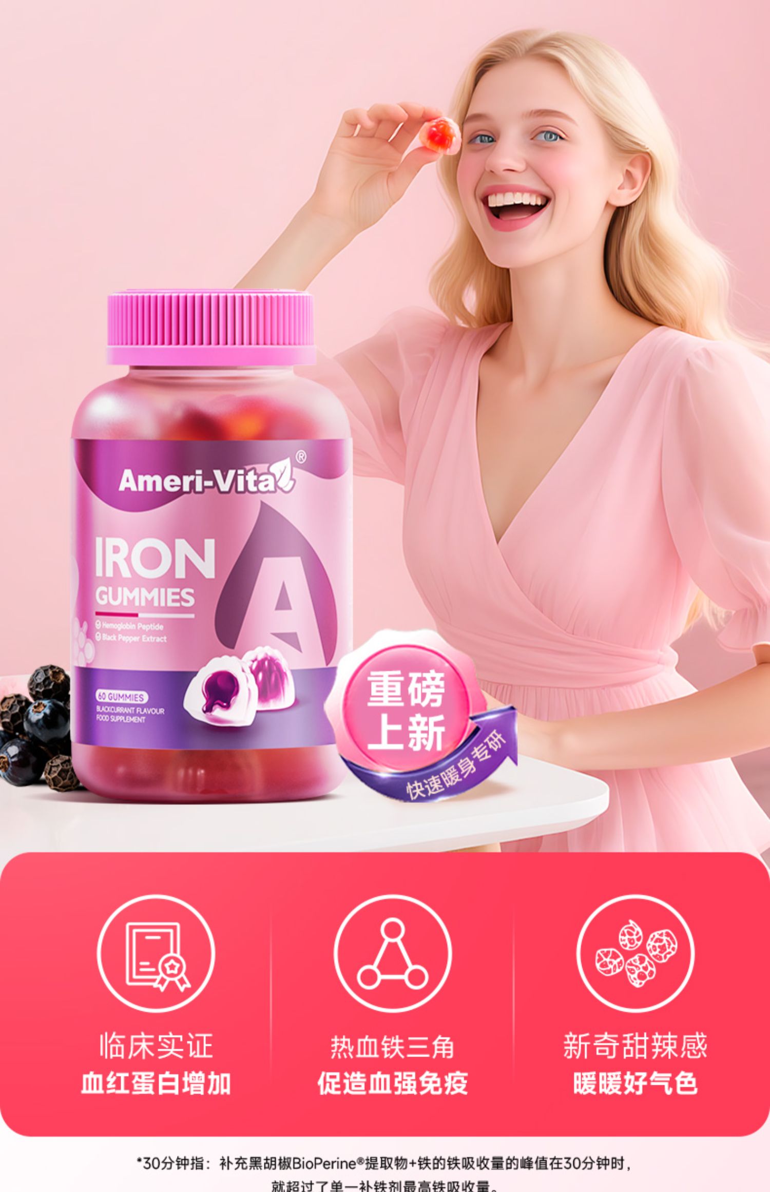 Ameri-Vita 热感补铁软糖 60粒/瓶 儿童孕妇可用补铁(天然辣感 黑加仑口味)
