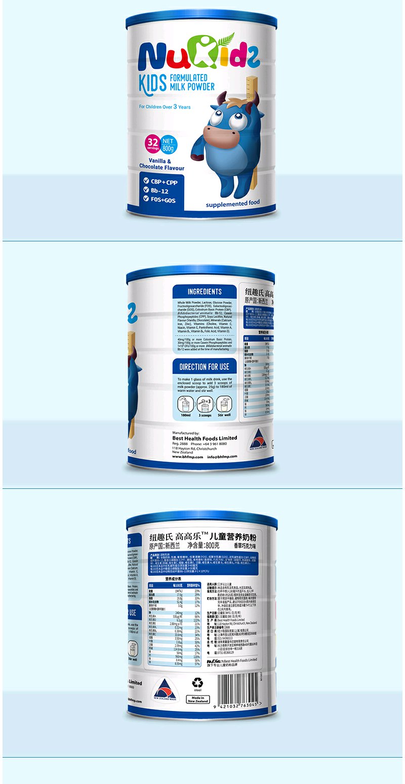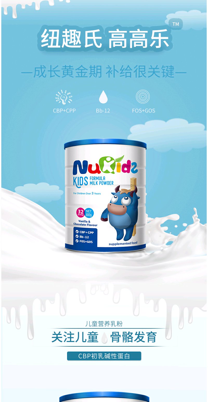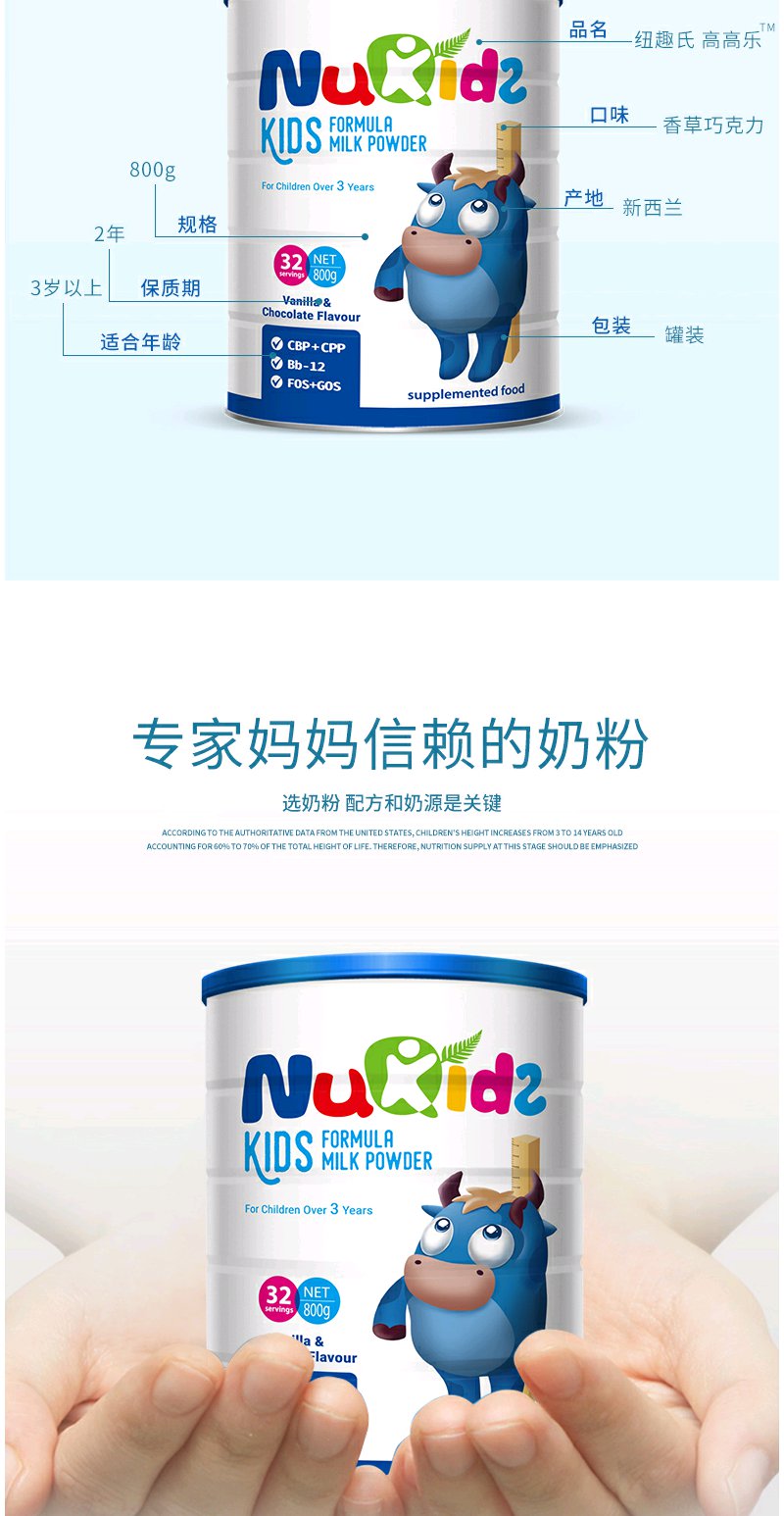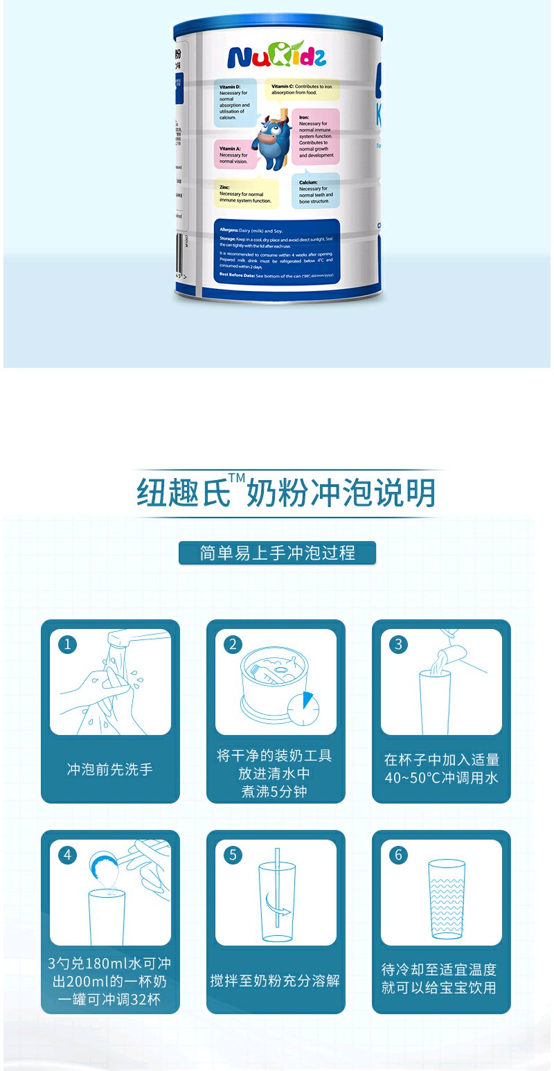 【成长奶粉】纽趣氏新西兰原装进口儿童成长奶粉促长高 奶粉4段 高高乐800g