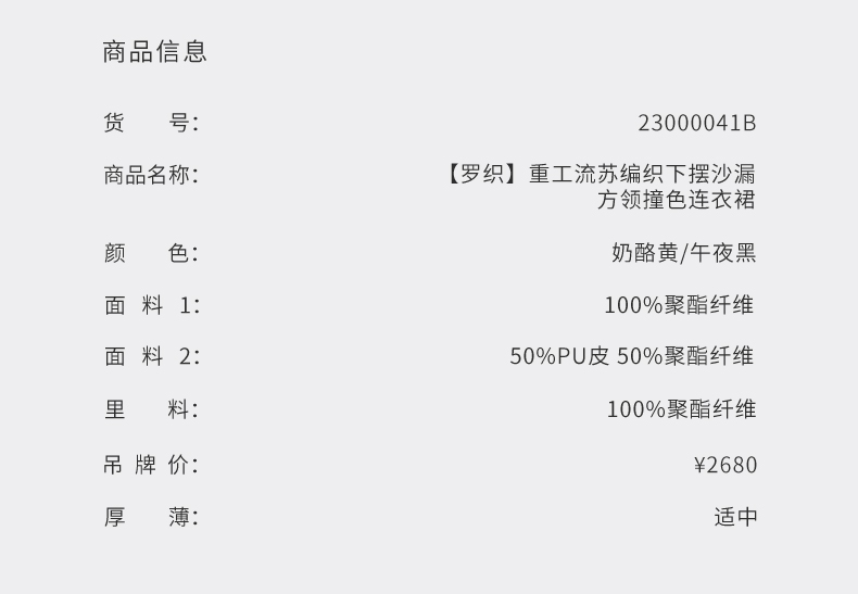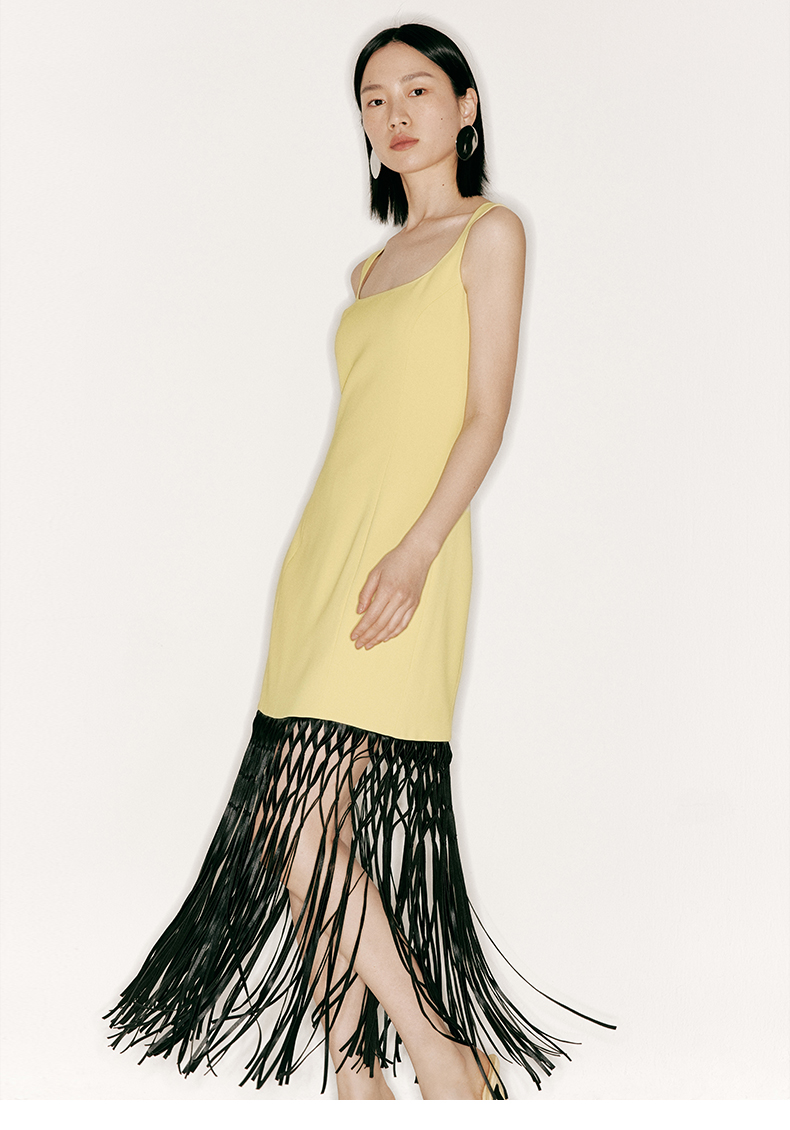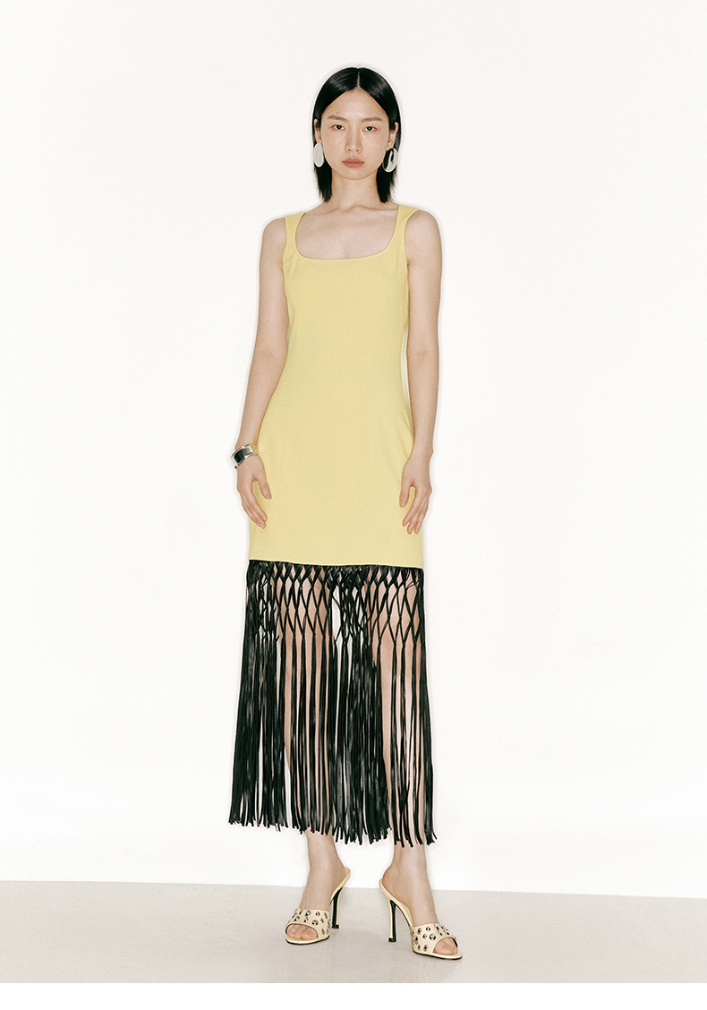【罗织】重工流苏编织下摆沙漏方领撞色连衣裙/23000041B