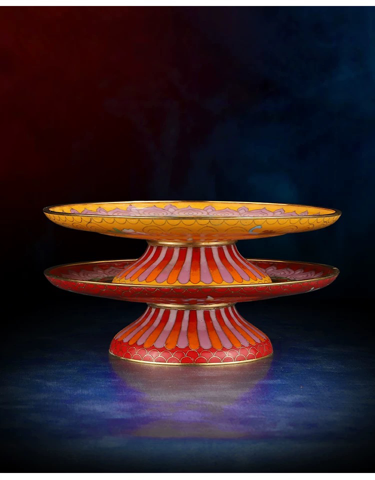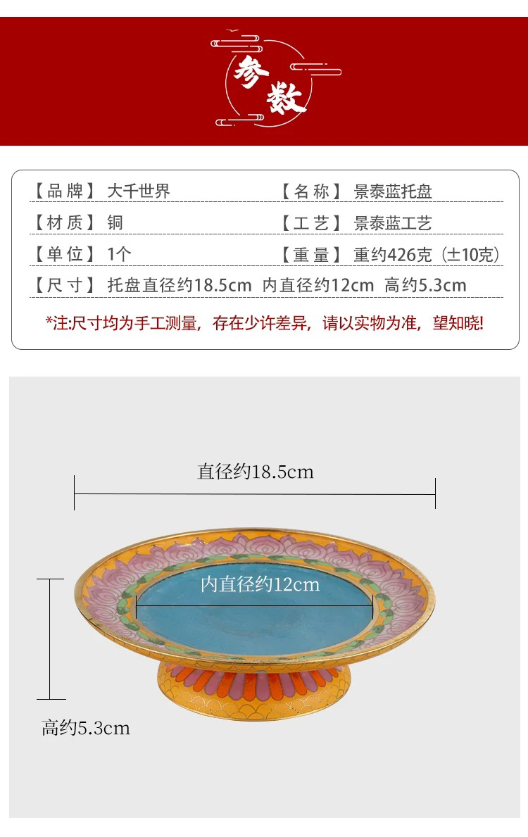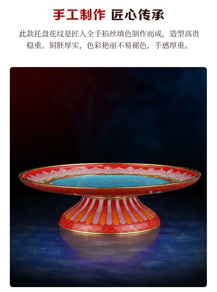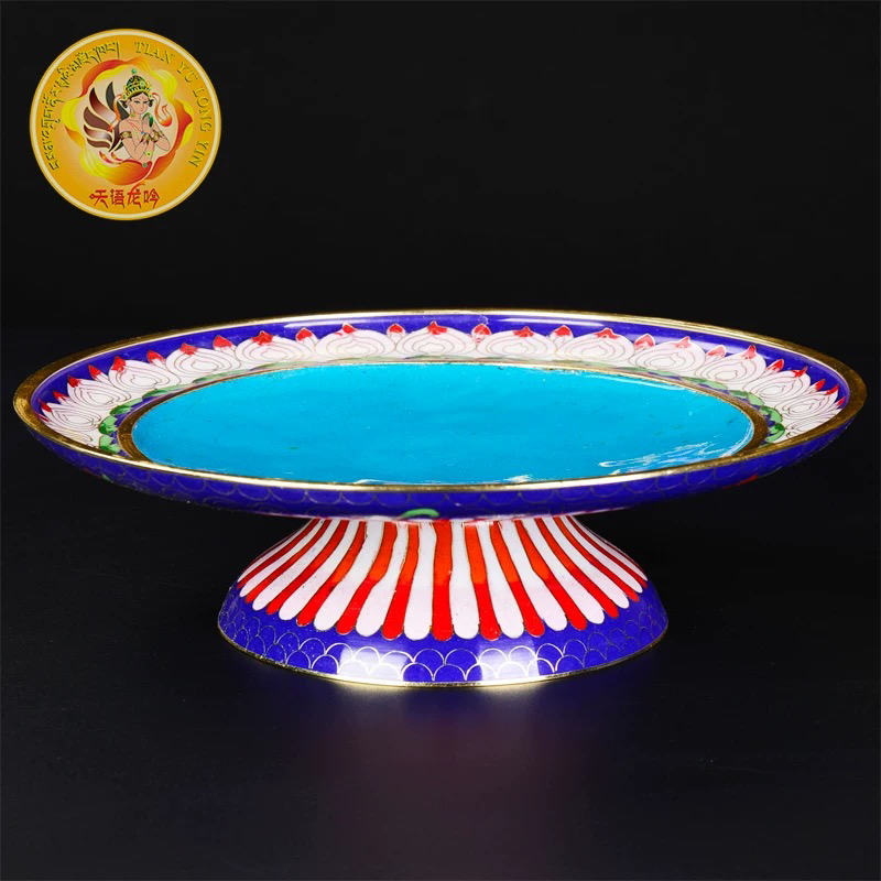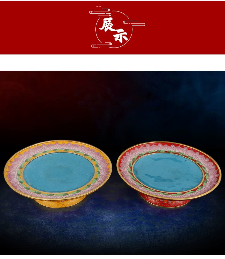 纯铜景泰蓝曼扎托盘佛前贡盘家用水果盘上供观音盘子莲花供品果盘