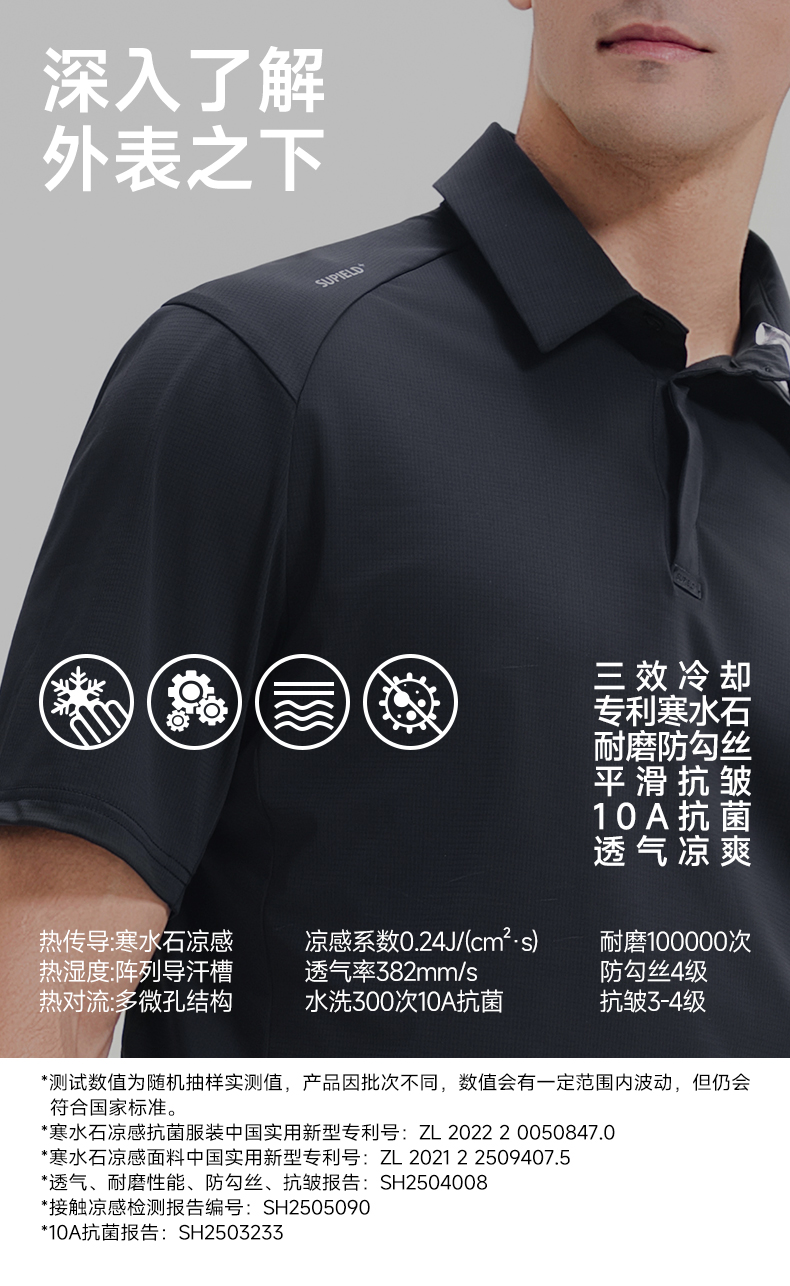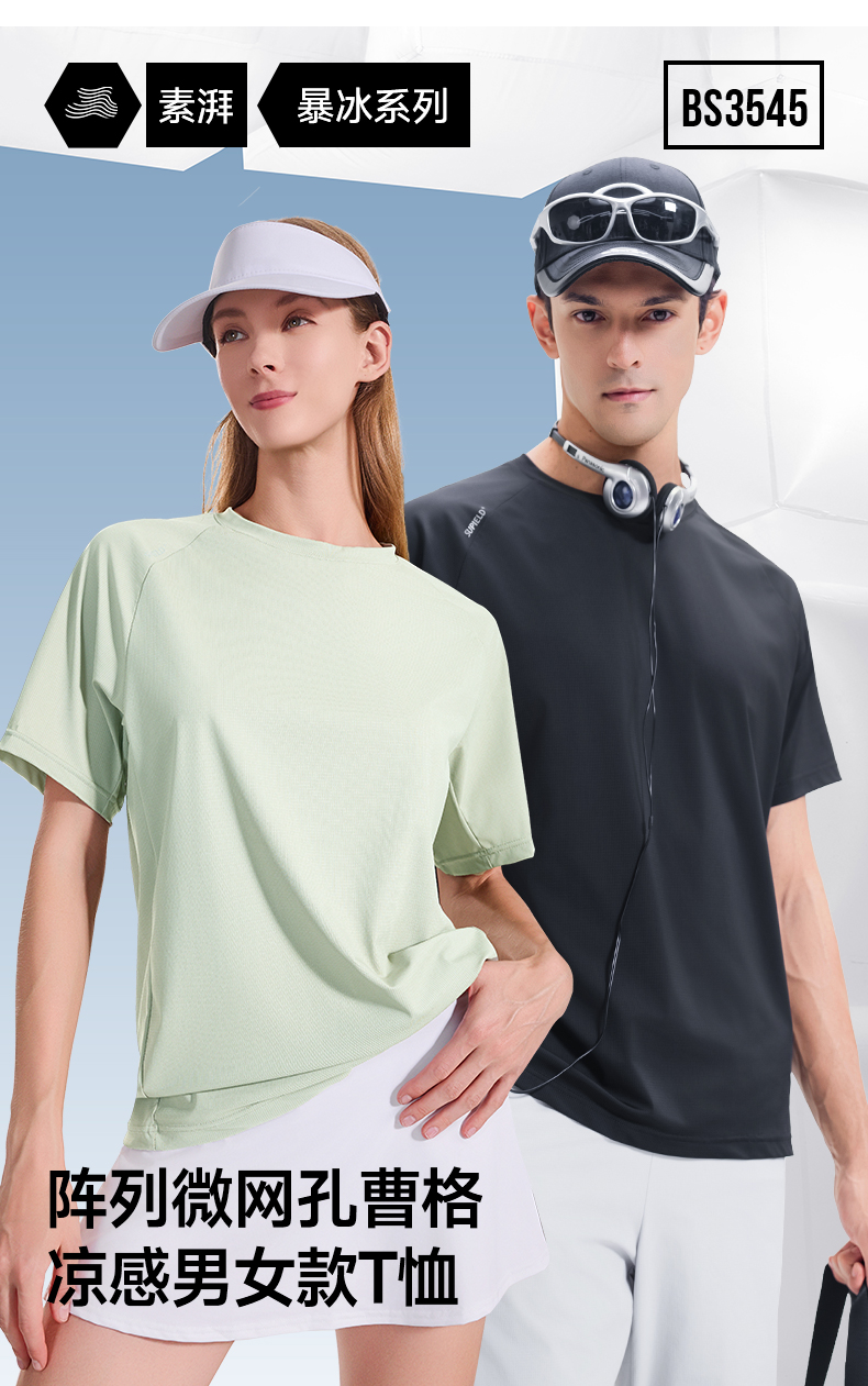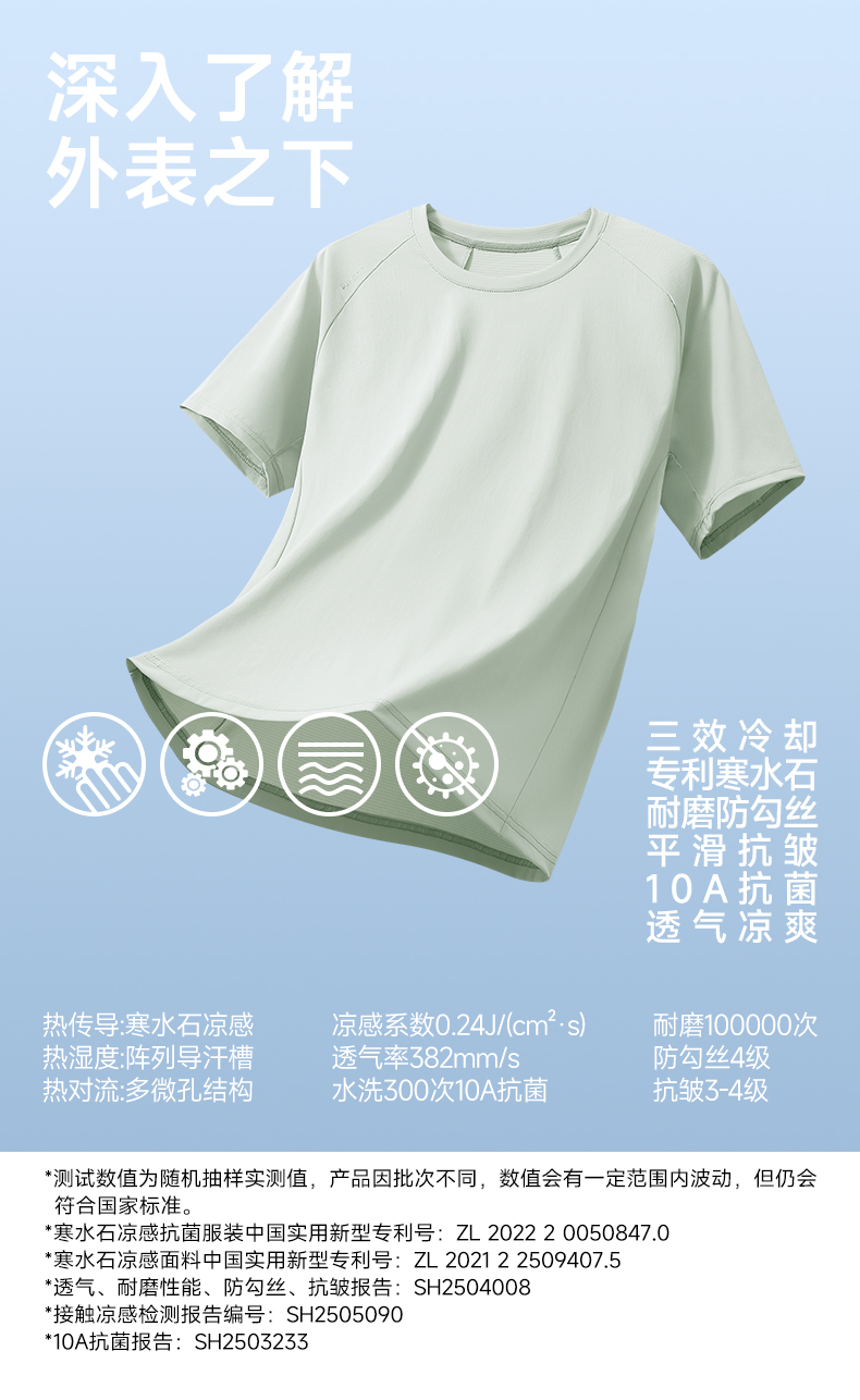 【寒水石原纱凉感 传导清凉触肤冰爽】素湃寒水石六效暴冰凉感短袖3545/3551 滑爽高弹触感 挺括不软塌