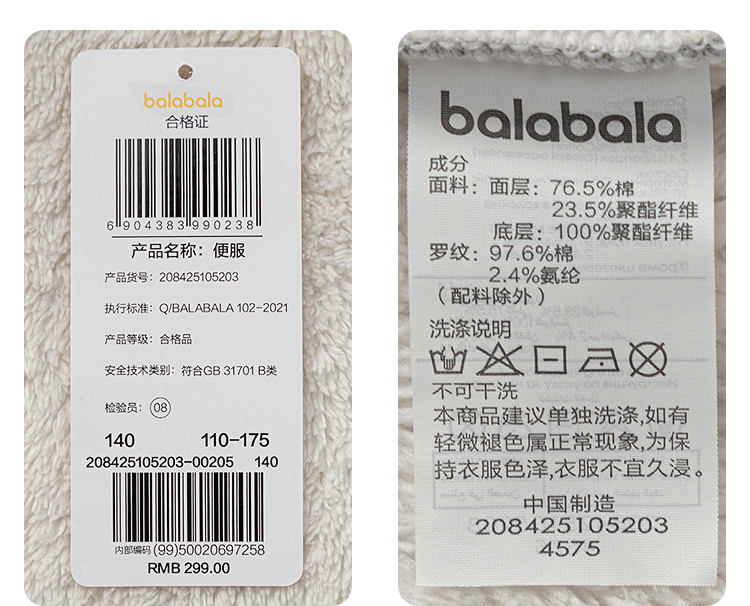 巴拉巴拉balaOne儿童外套女童男童大童上衣新款2025冬珊瑚绒保暖
