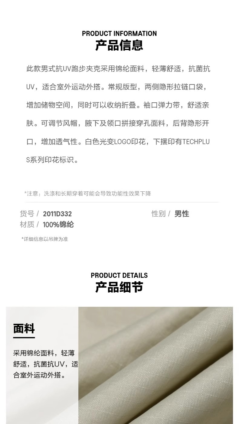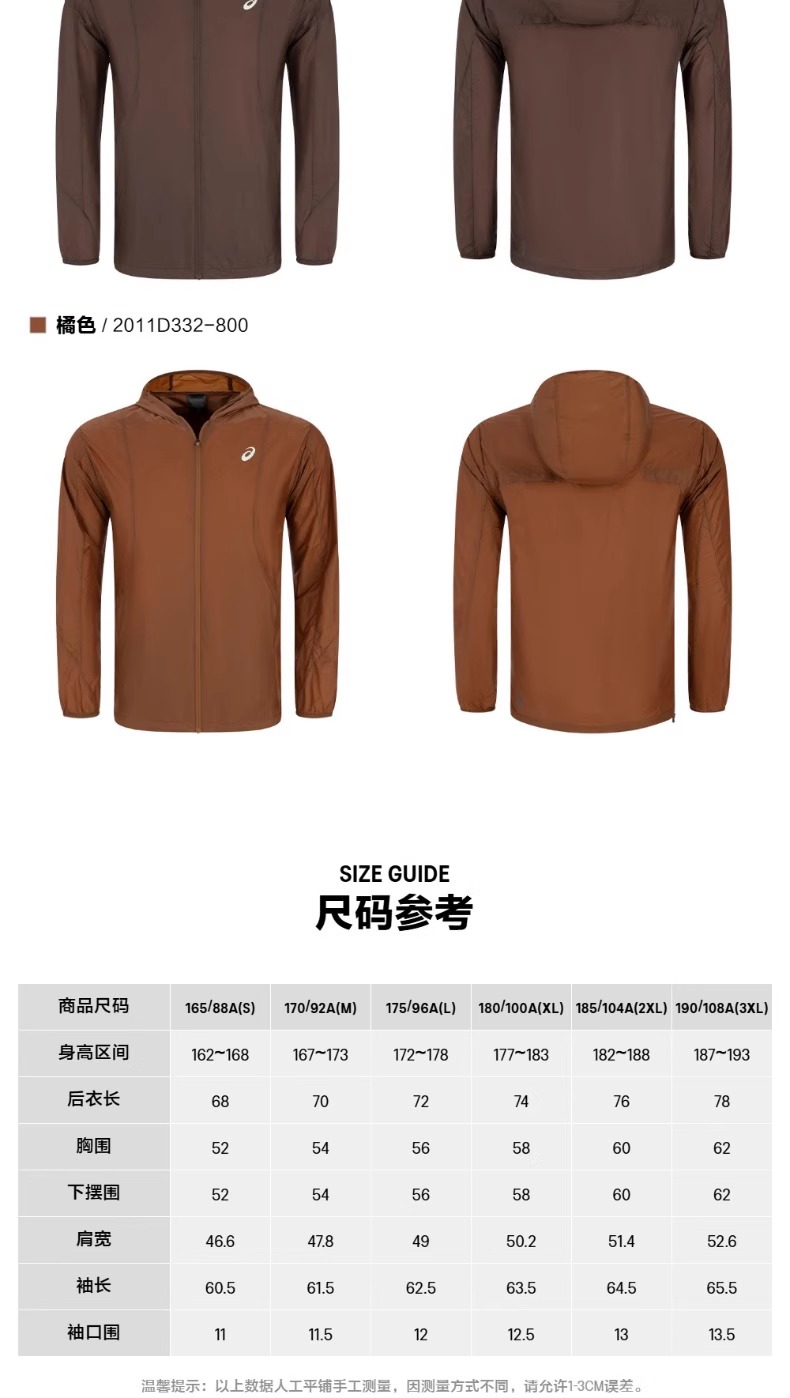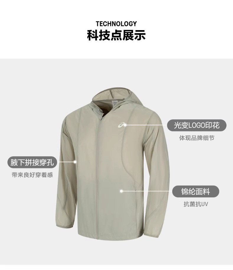 ASICS亚瑟士 男款抗UV跑步运动防风夹克外套