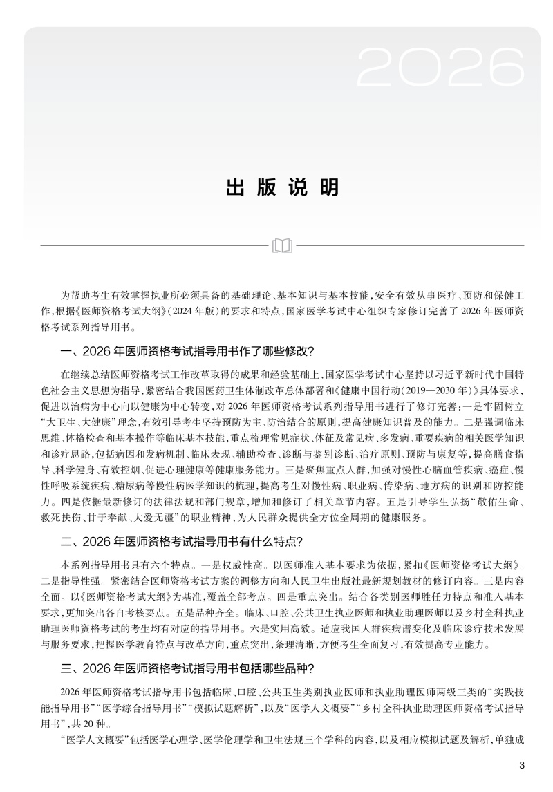 书名:2026临床执业助理医师资格考试医学综合指导用书