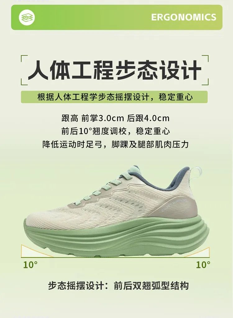 ✅前后10°翘度,保护足弓、脚踝及腿部肌肉运动不受伤❗
